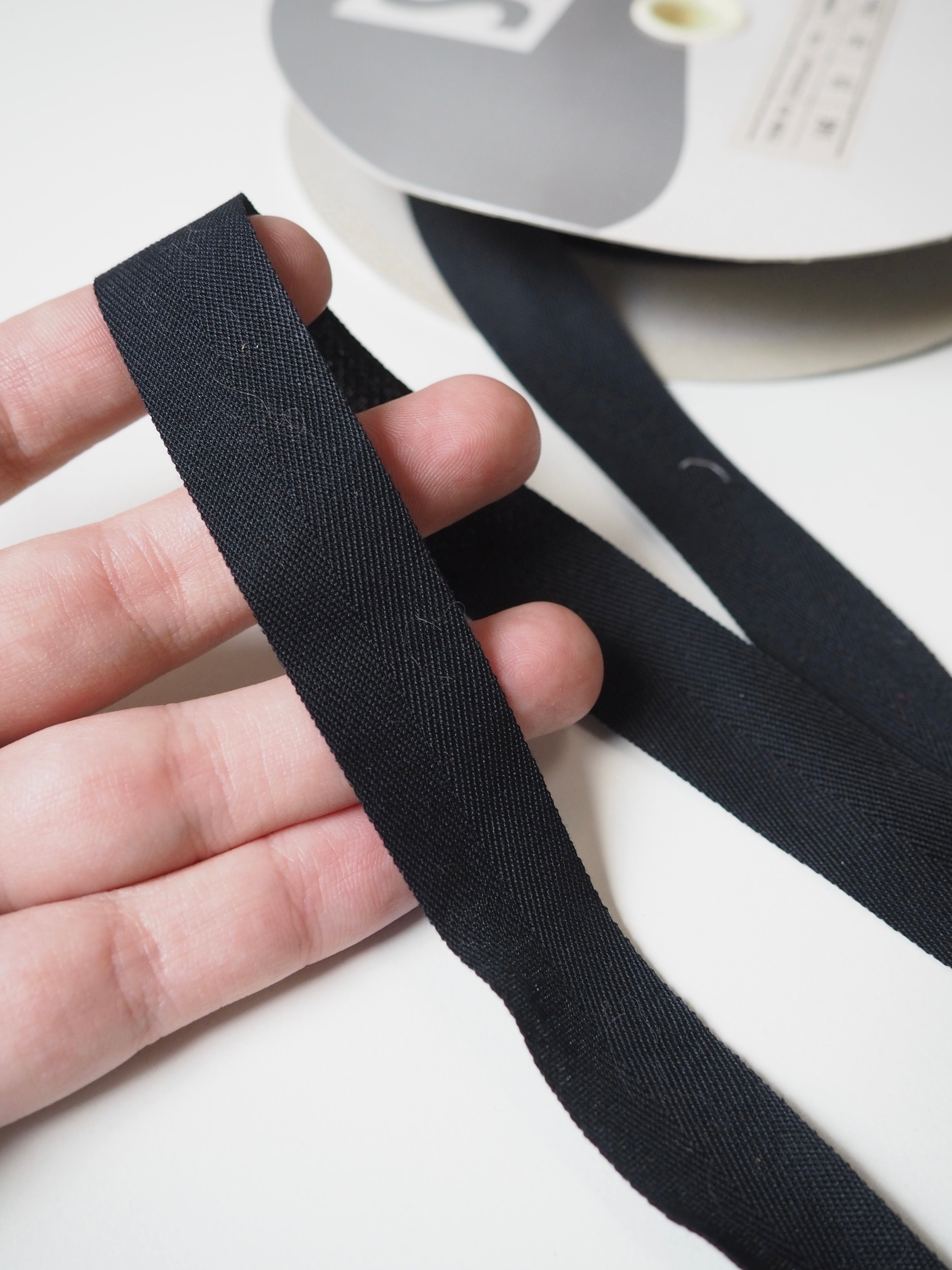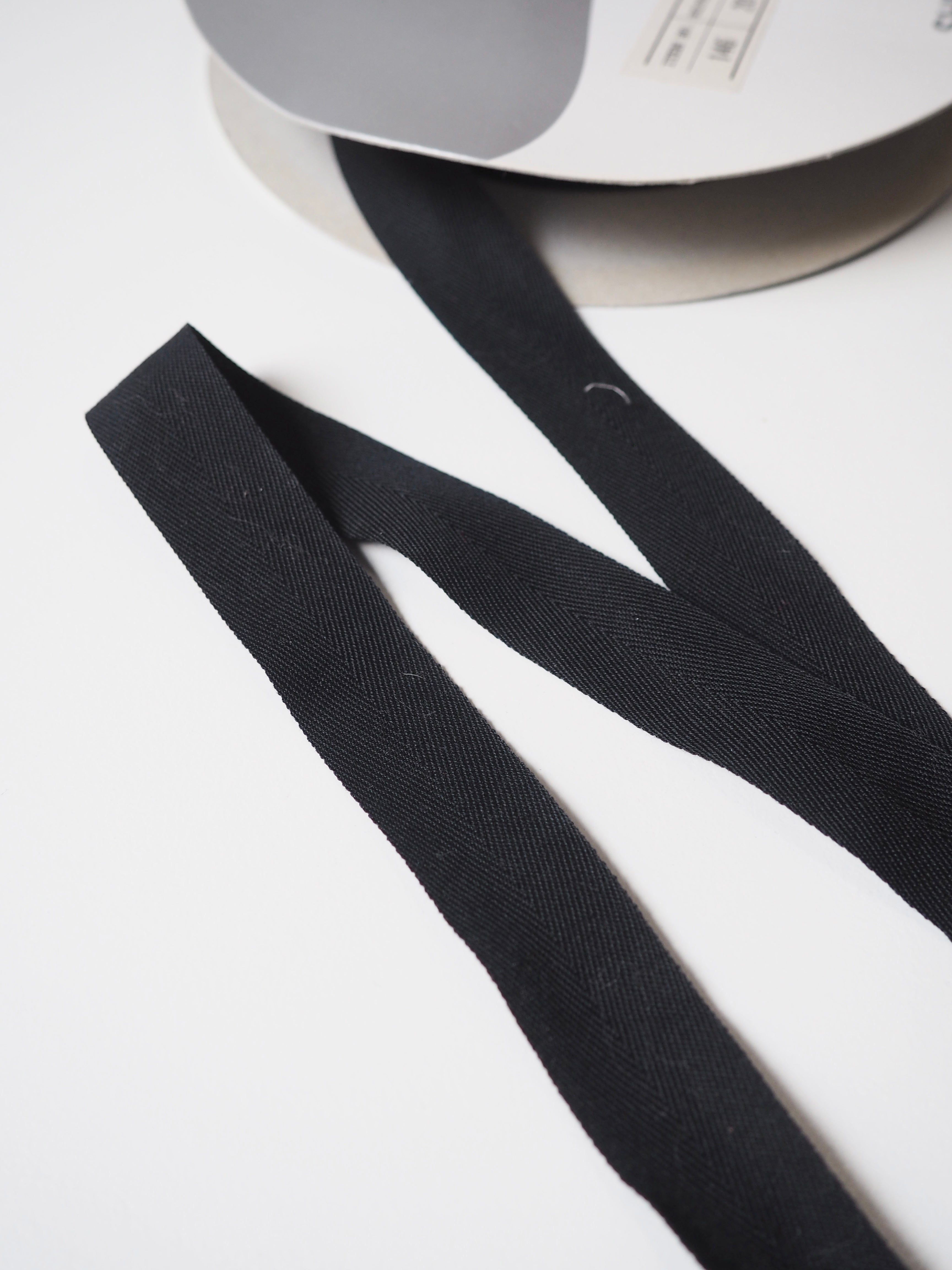 This ex-designer trim is a herringbone tape. It has a herringbone weave and is quite sturdy. Soft and lovely texture. Top-quality from Shindo of Japan. Great for ties, drawstrings, and finishing off projects!