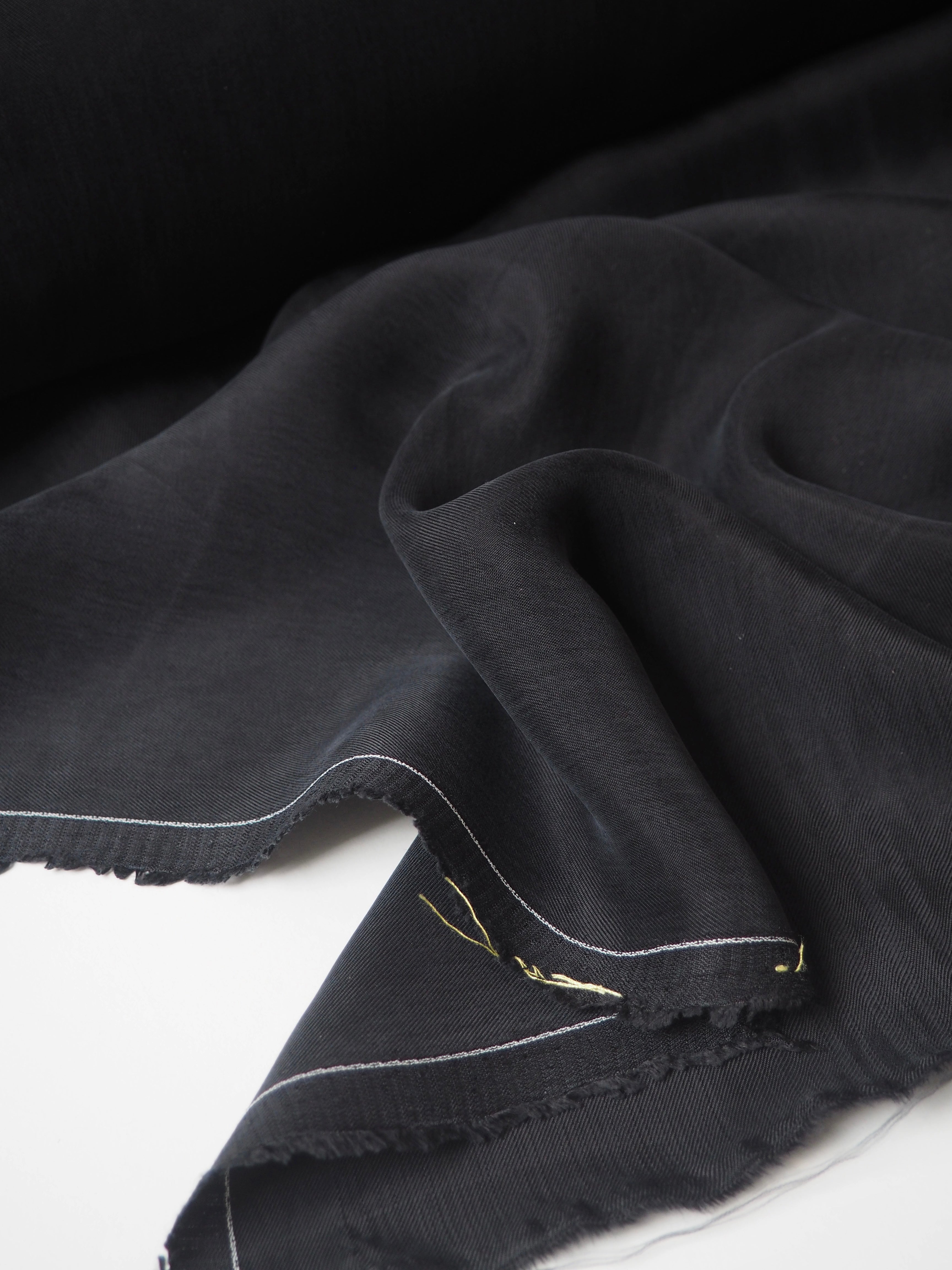 This ex-designer fabric is a cupro twill. Cupro is a type of rayon which mimics silk in feel and drape. It feels very luxurious and soft, and drapes beautifully. It catches the light and has great movement. This type of cupro is called Carmela, and it's Vegan Certified. It's lightweight and has a washed-like handle. We sourced this cloth from Beyond Nine, the same brand as where our popular linens came from! Beautiful as a staple in our Everyday Dress or Top! Also perfect for bias pieces and as a lining!