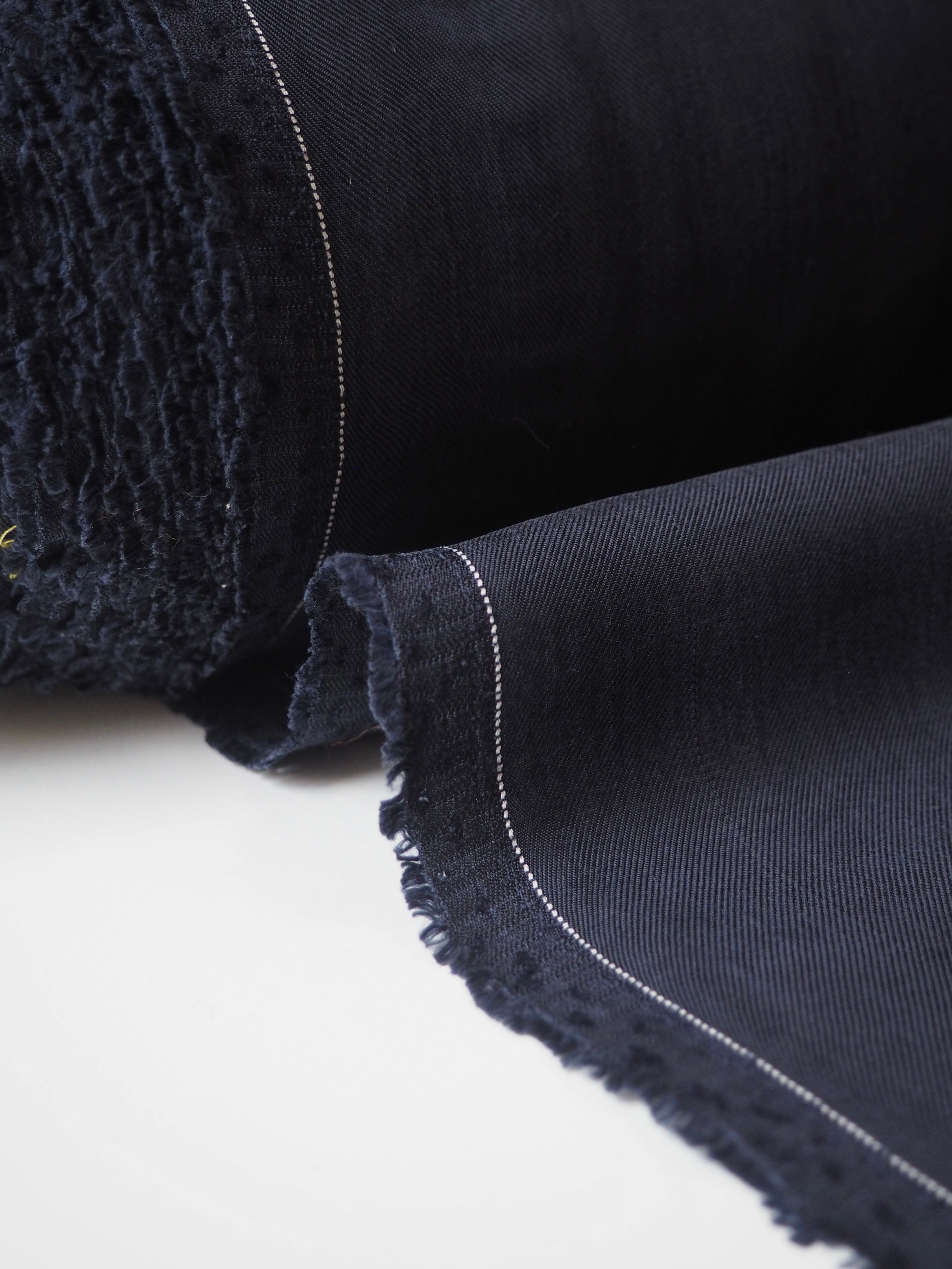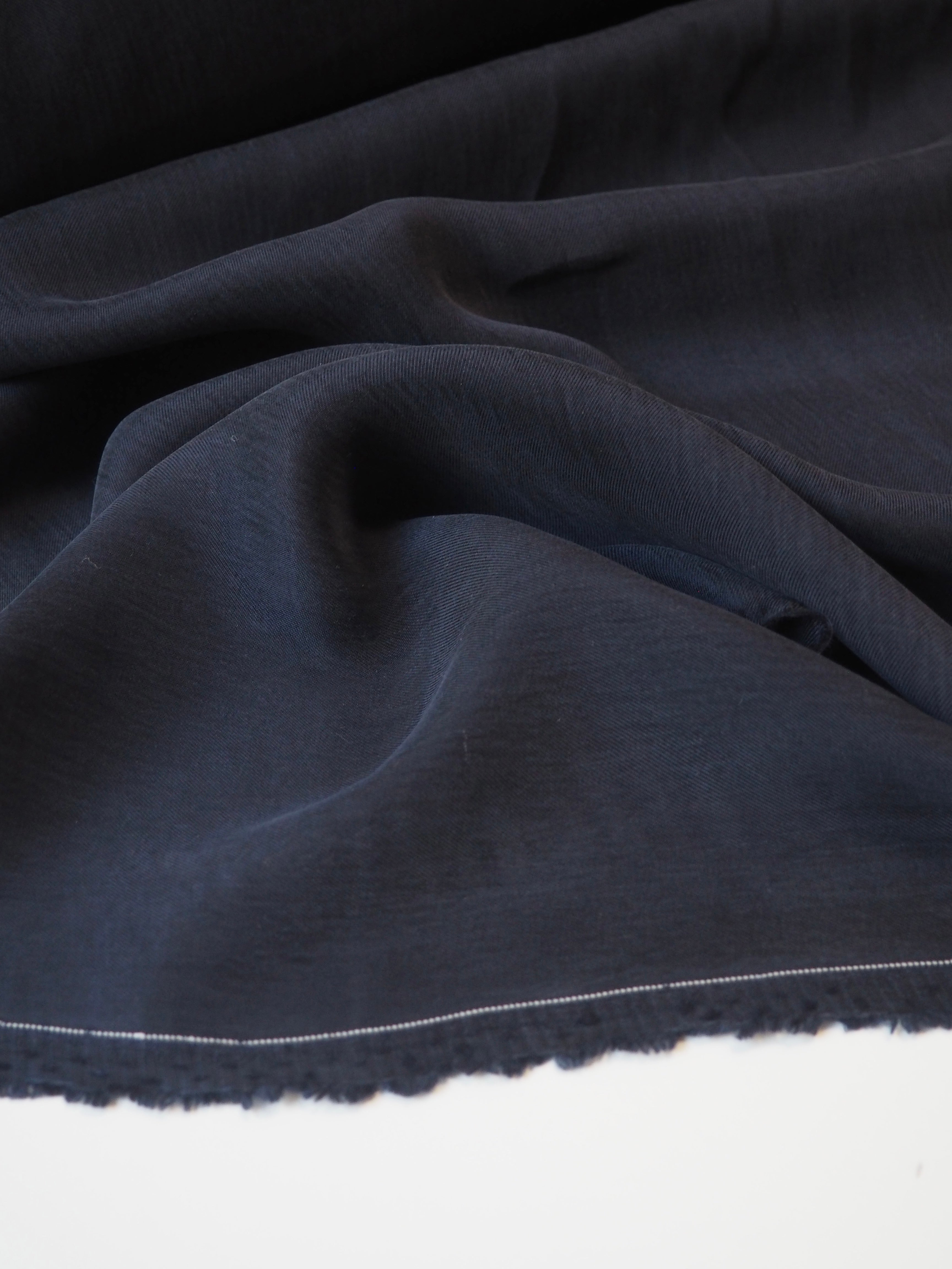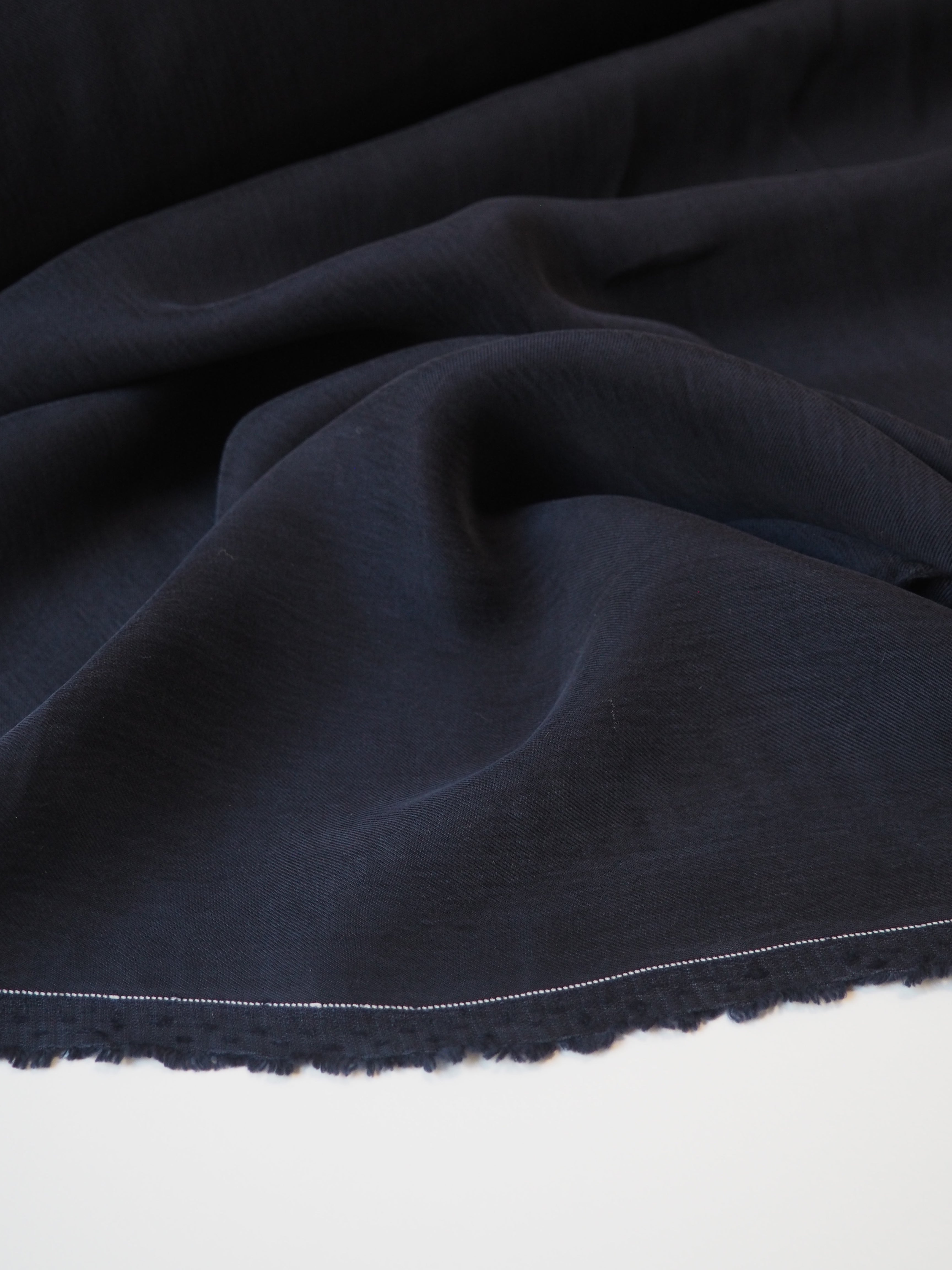 This ex-designer fabric is a cupro twill. Cupro is a type of rayon which mimics silk in feel and drape. It feels very luxurious and soft, and drapes beautifully. It catches the light and has great movement. This type of cupro is called Carmela, and it's Vegan Certified. It's lightweight and has a washed-like handle. We sourced this cloth from Beyond Nine, the same brand as where our popular linens came from! Beautiful as a staple in our Everyday Dress or Top! Also perfect for bias pieces and as a lining!