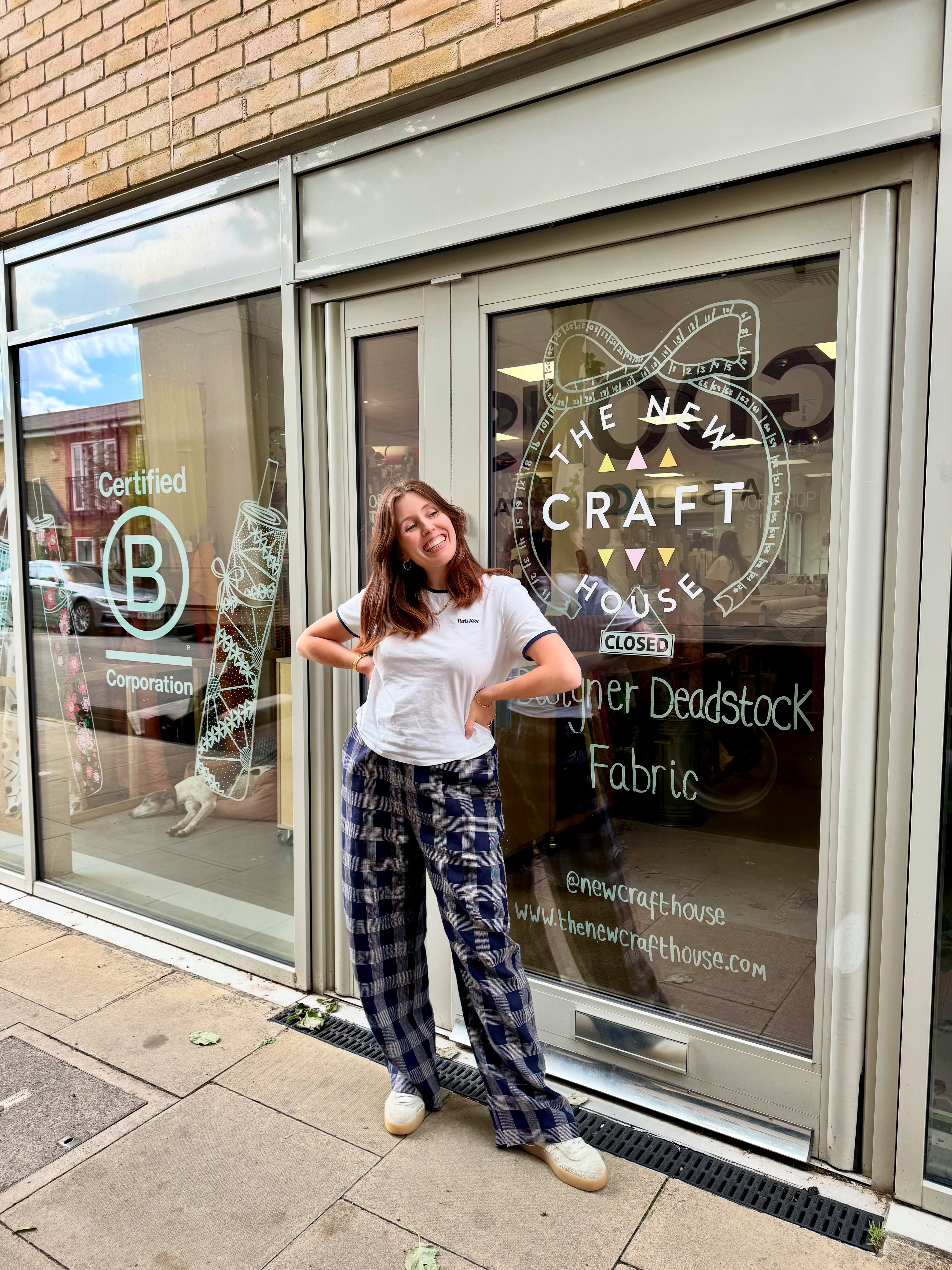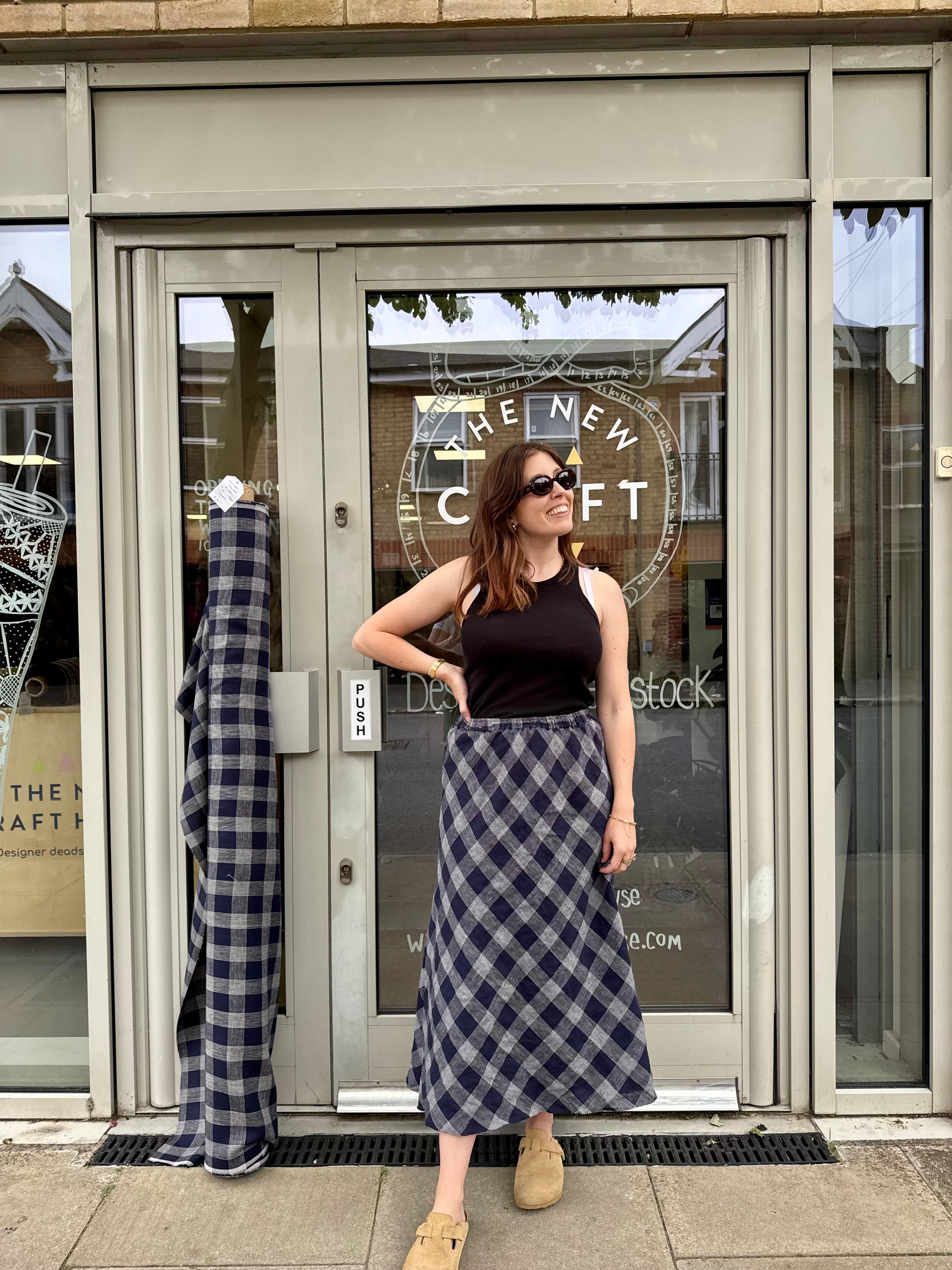 This ex-designer fabric is a beautiful linen. It's a navy and slightly off-white check that's quite classic and cozy. It has a soft and gentle linen weave with a typical linen texture. It has a brilliant handle that's so wearable. Lightweight with a gentle structured drape, and fully opaque. From popular London-based brand Beyond Nine. Lovely for a bias dress of skirt, summer tops or Everyday Trousers, or even a tablecloth and napkin set!