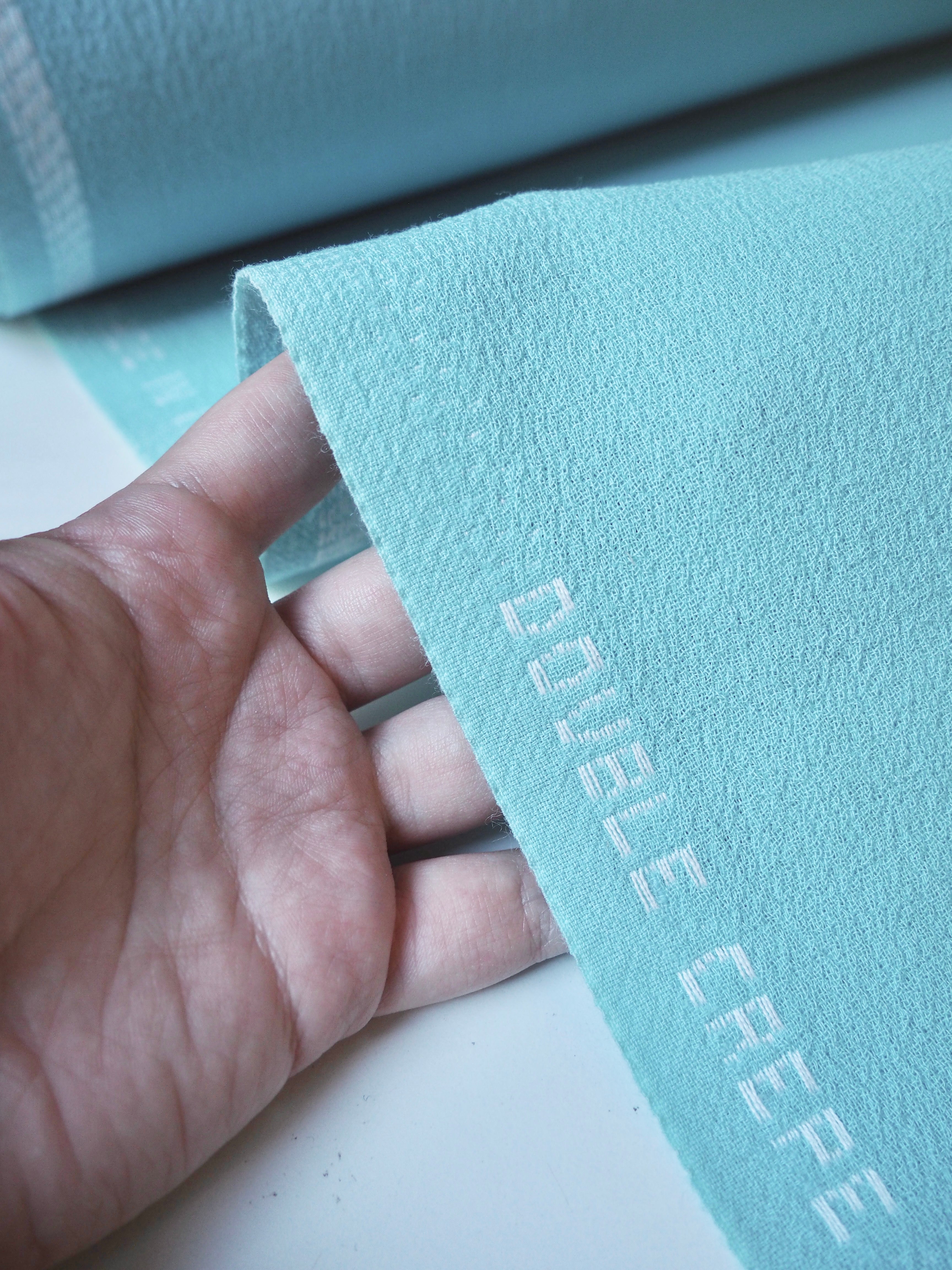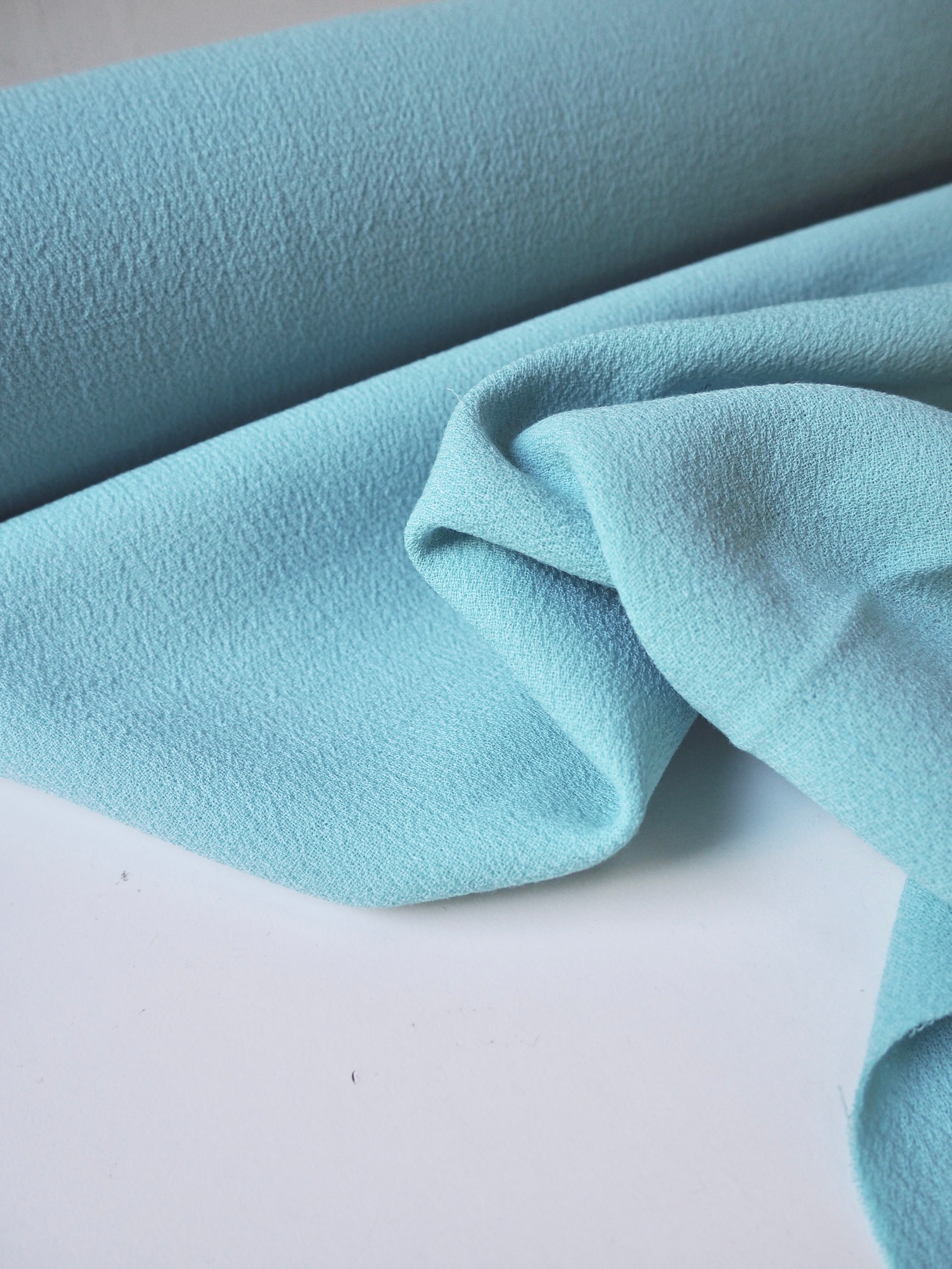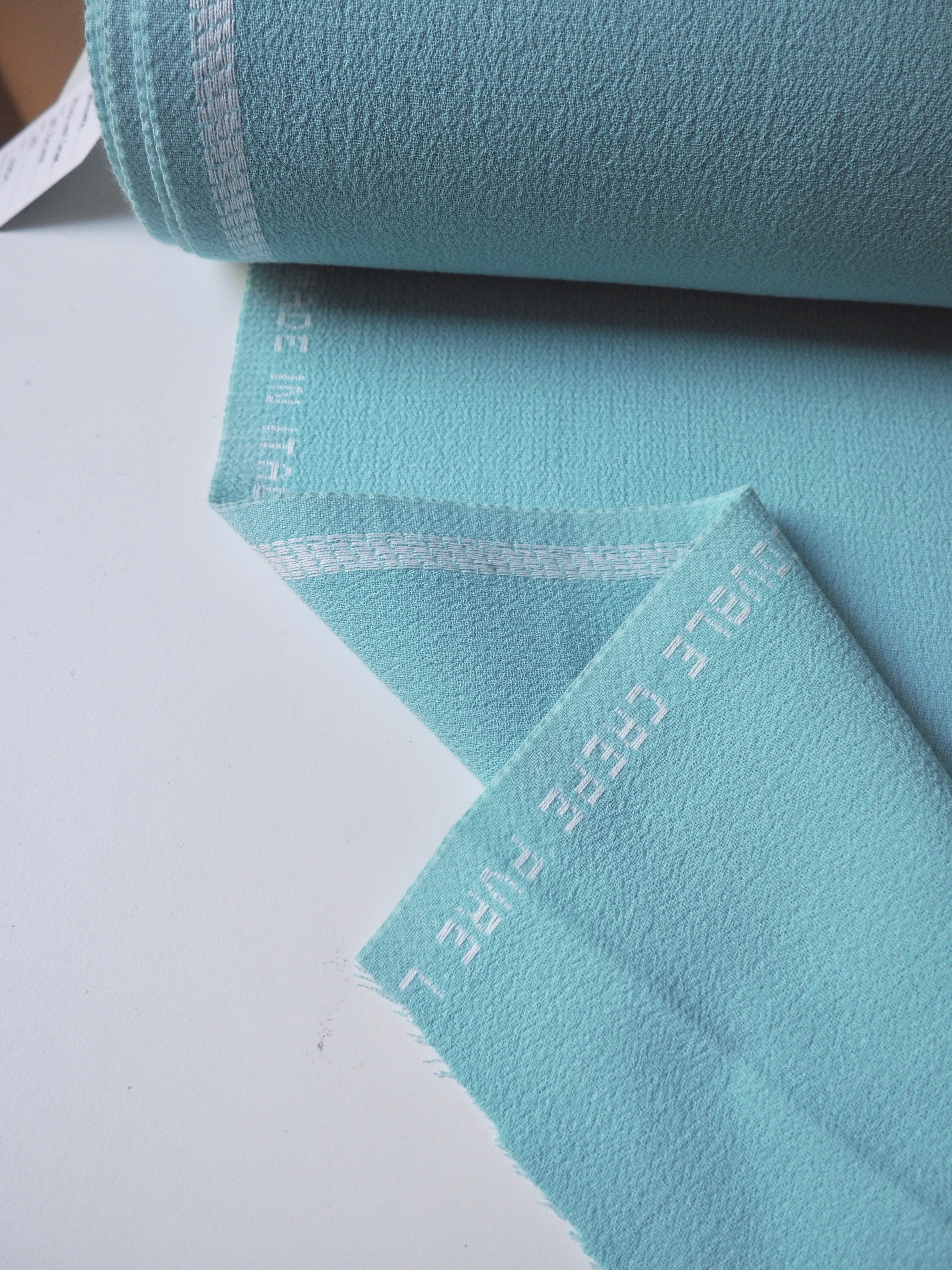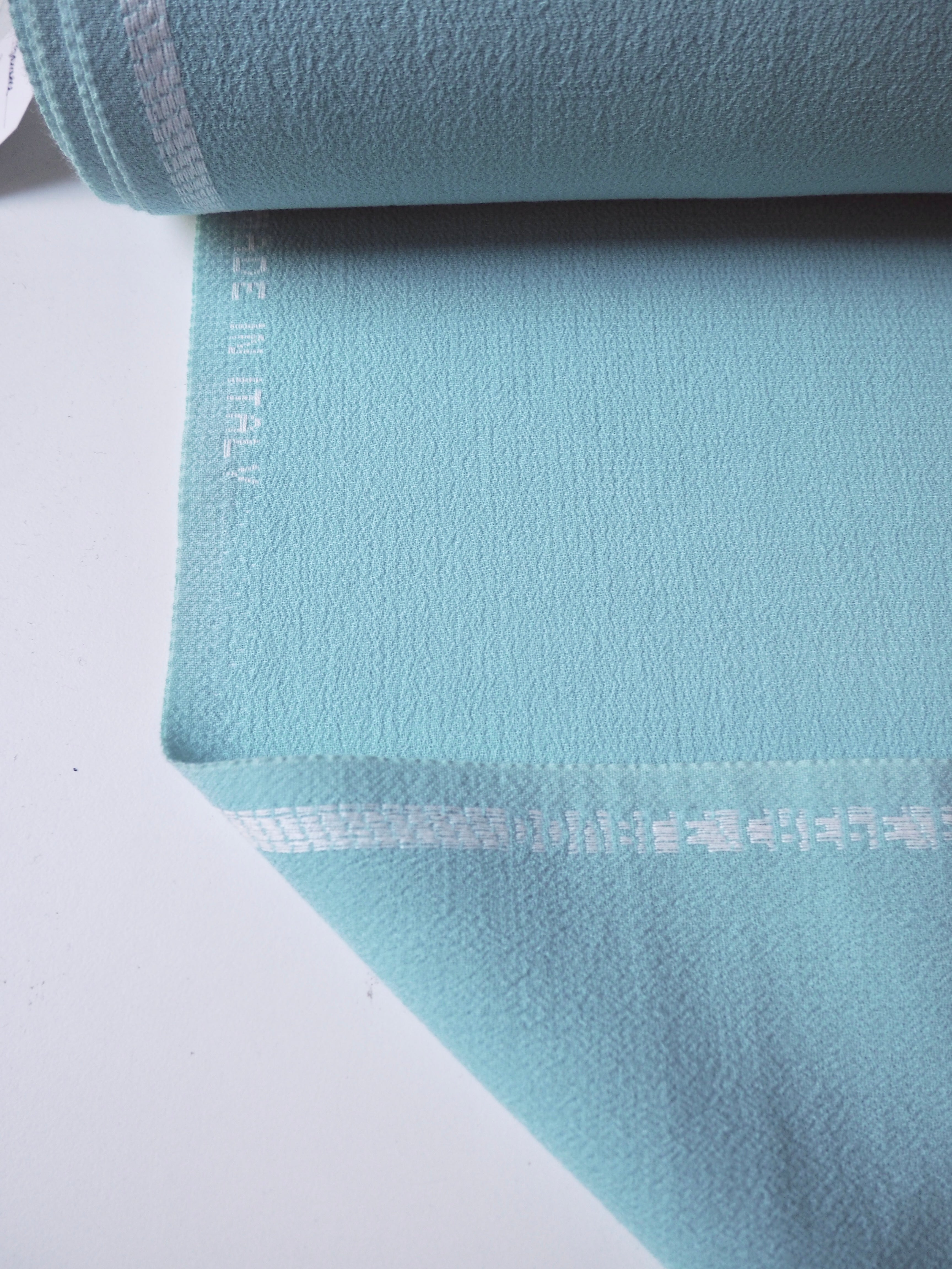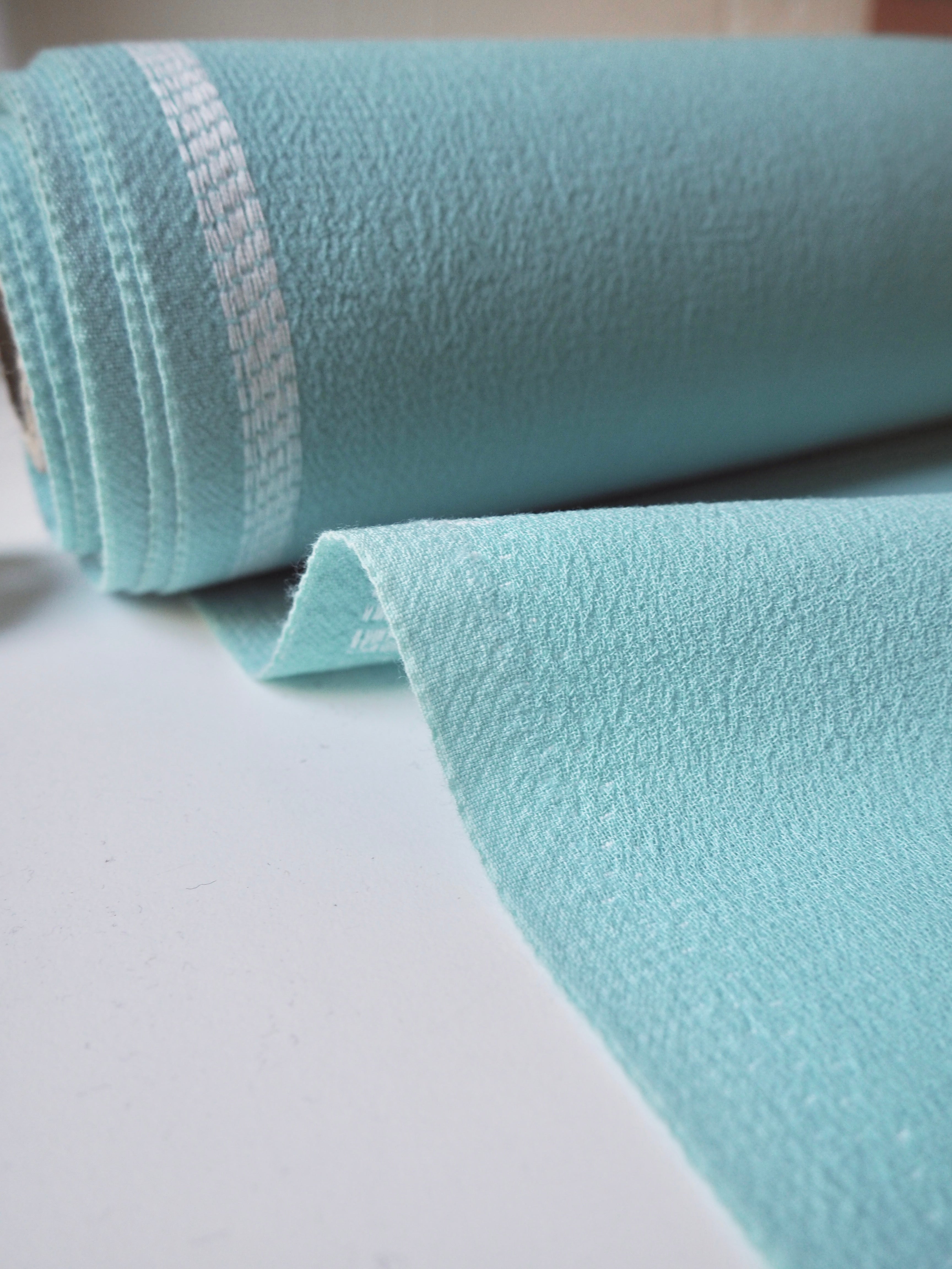 This ex-designer fabric is a wool crepe. It's a double-faced cloth with a sturdy but comfortable weave. It's made of pure wool and feels and looks so luxurious! It has a soft structure and really lovely soft, plush crepe handle. Medium weight, and perfect for tailoring projects. Flexible and has a wonderful drape that makes it so easy to work with! The perfect cloth for a lifetime blazer for all seasons, and wide leg trousers!