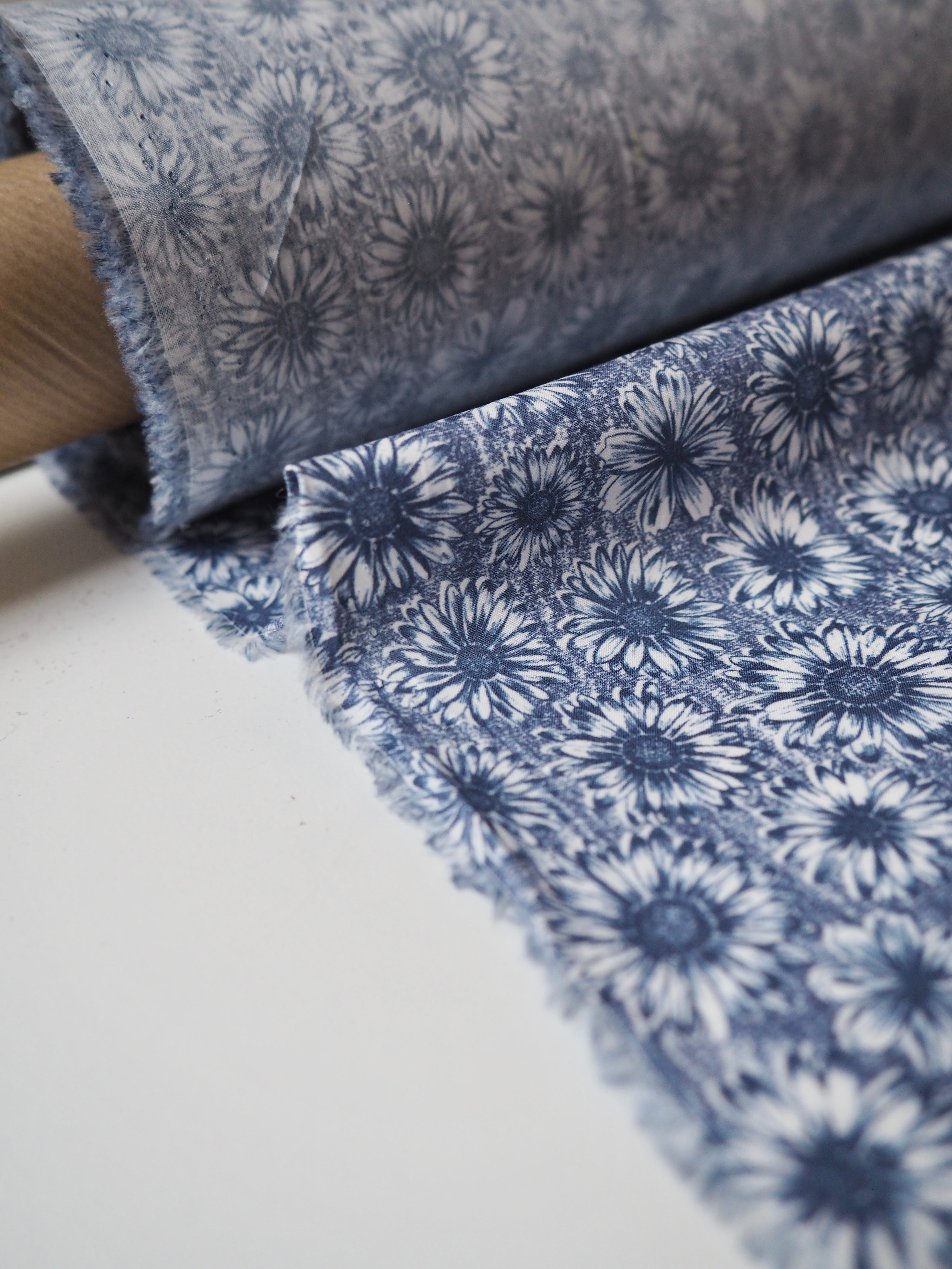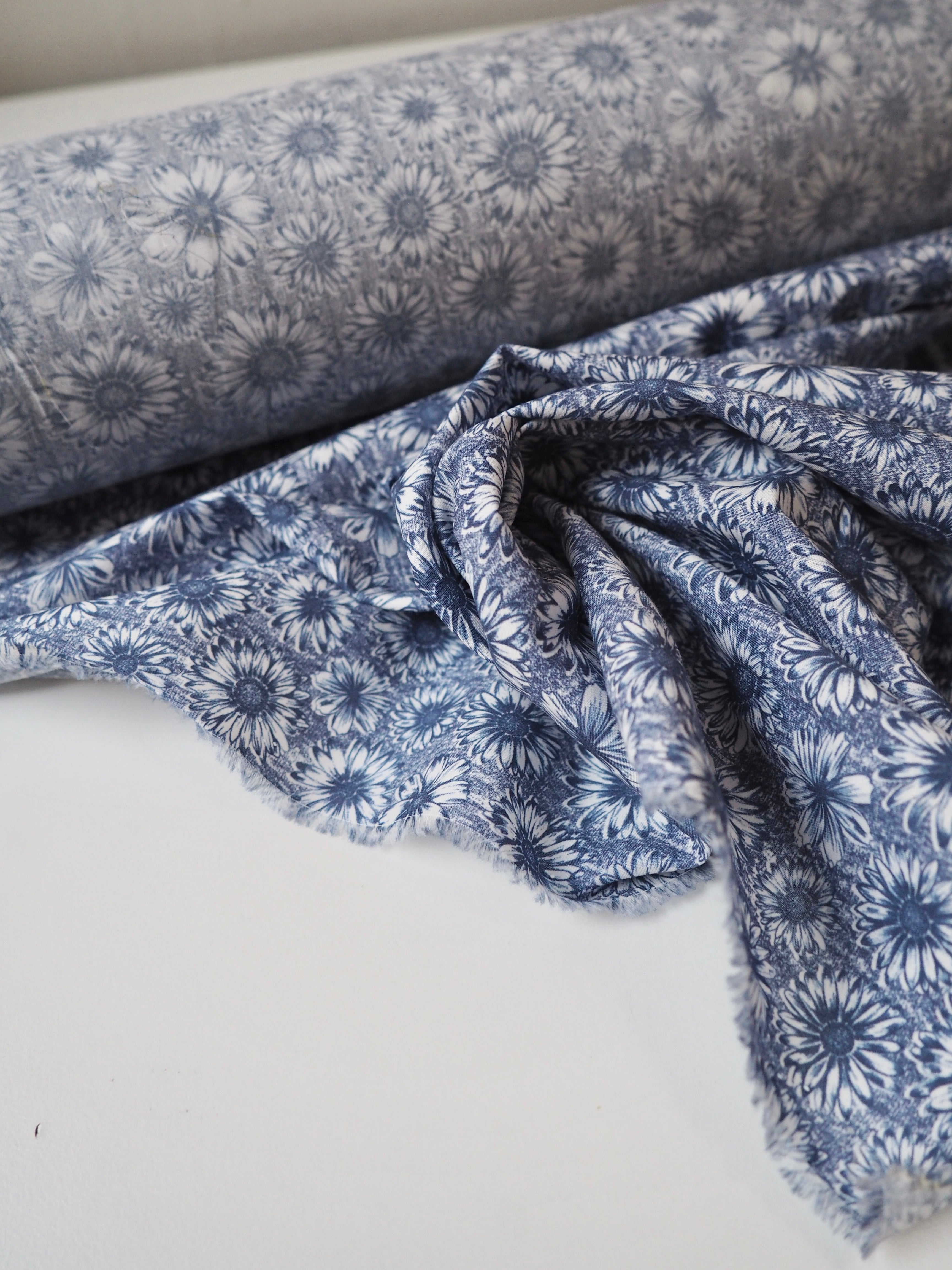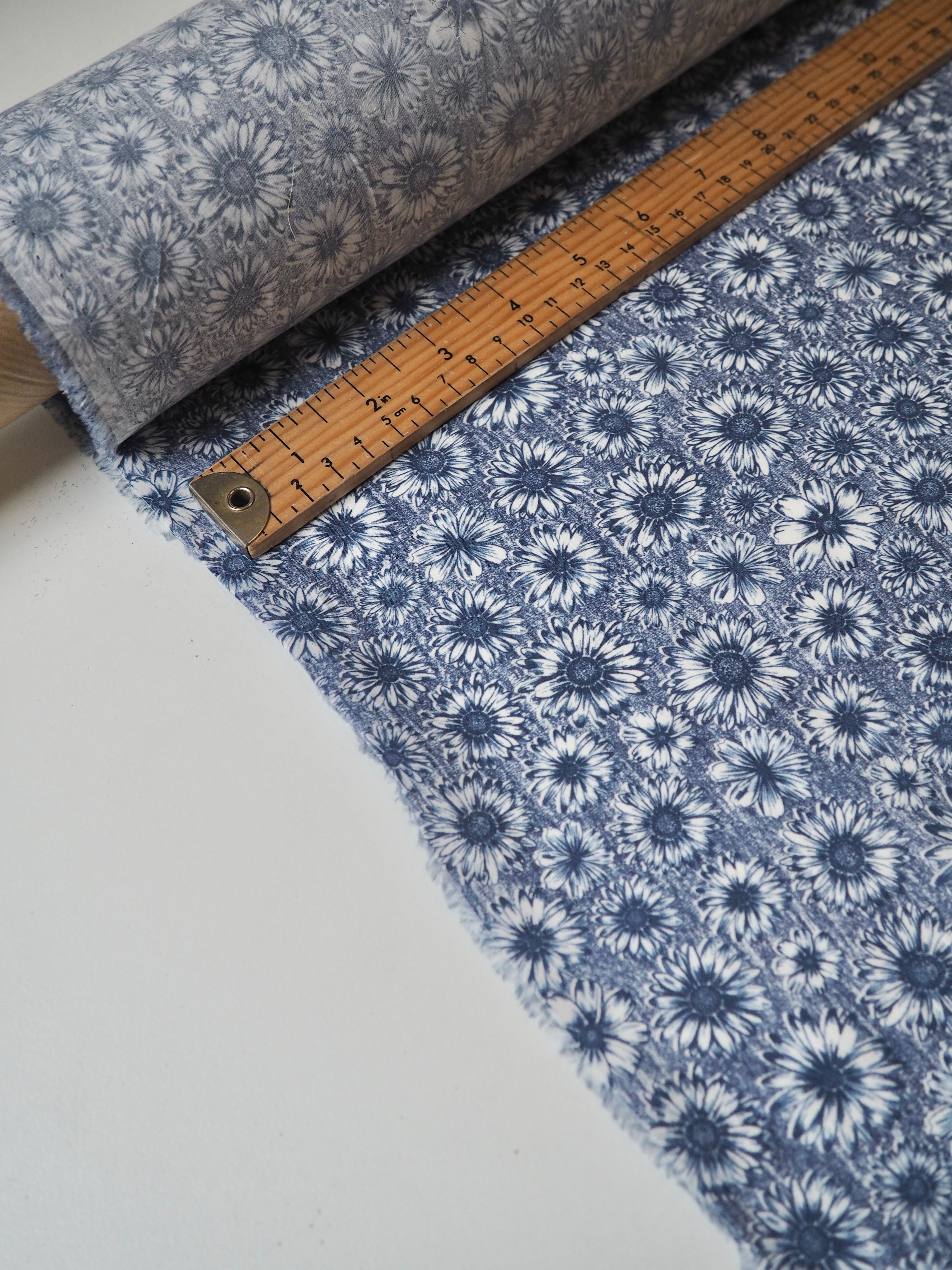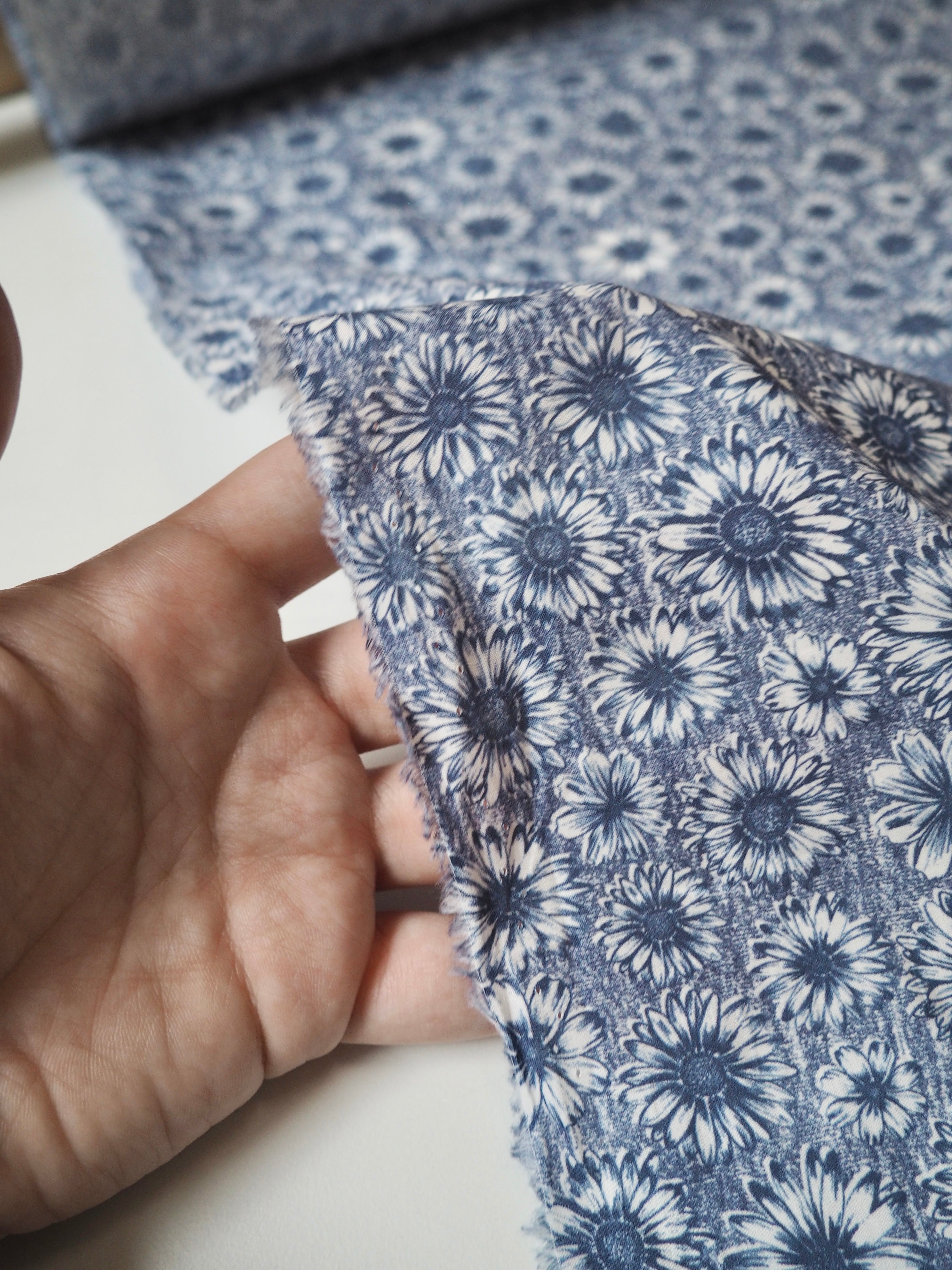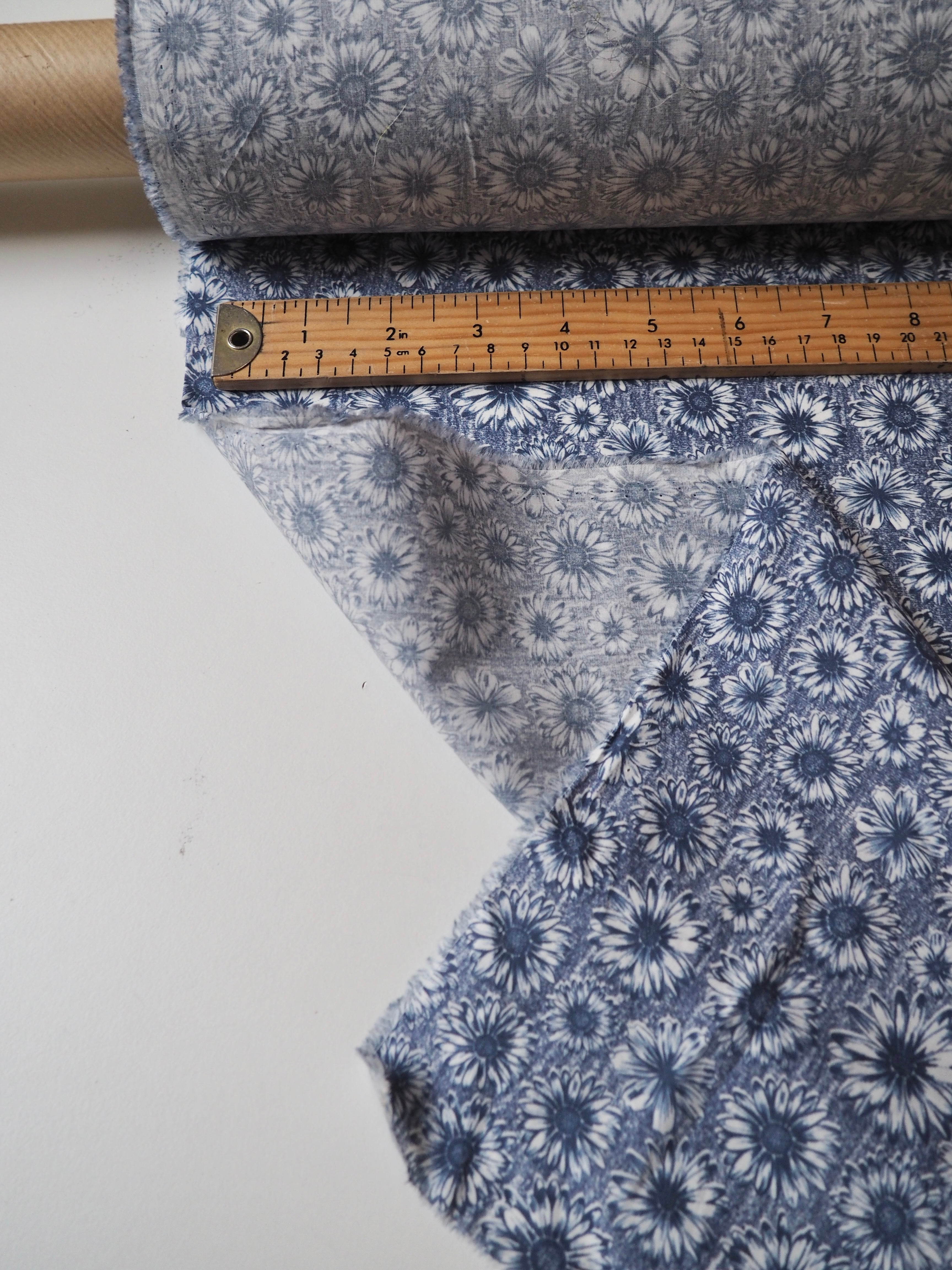 This ex-designer fabric is a classic Liberty Tana Lawn. It's in a blue floral print. A top-quality Liberty cotton, and super lightweight! Soft with a lovely drape and slight crispness. Has a wonderful cotton handle. Mostly opaque but lets a little light in. We would love to see it in a blouse or even for quilting!