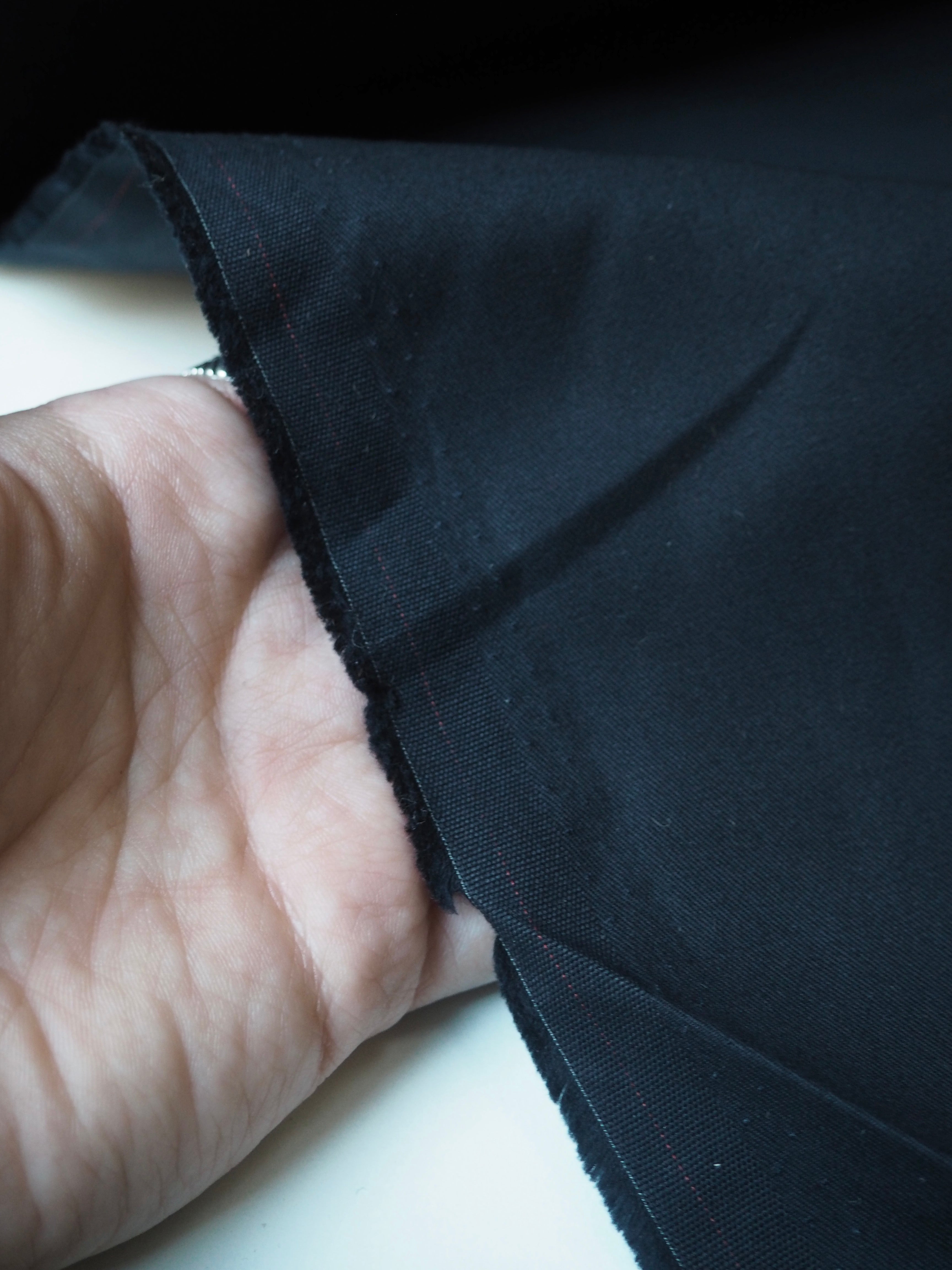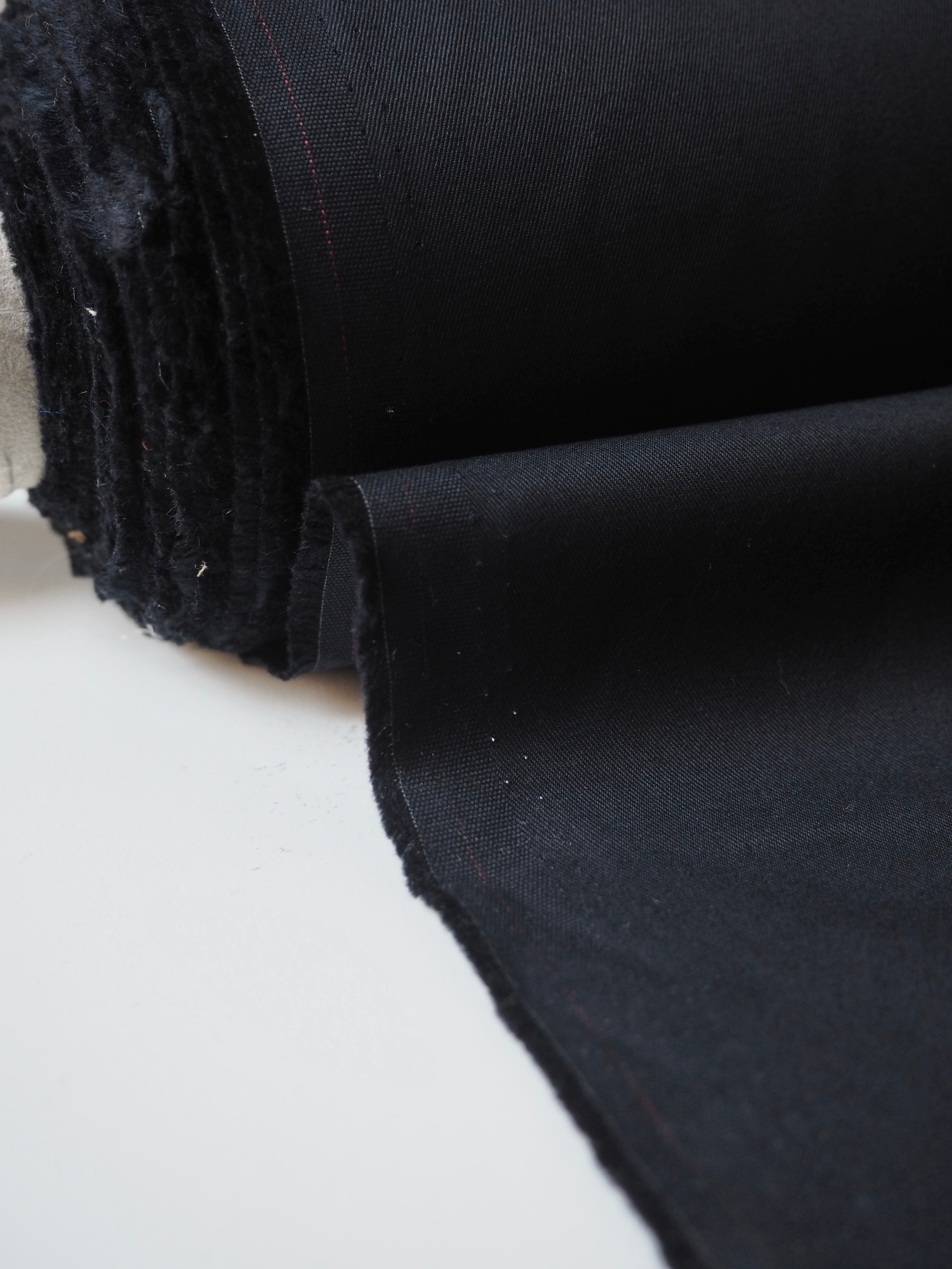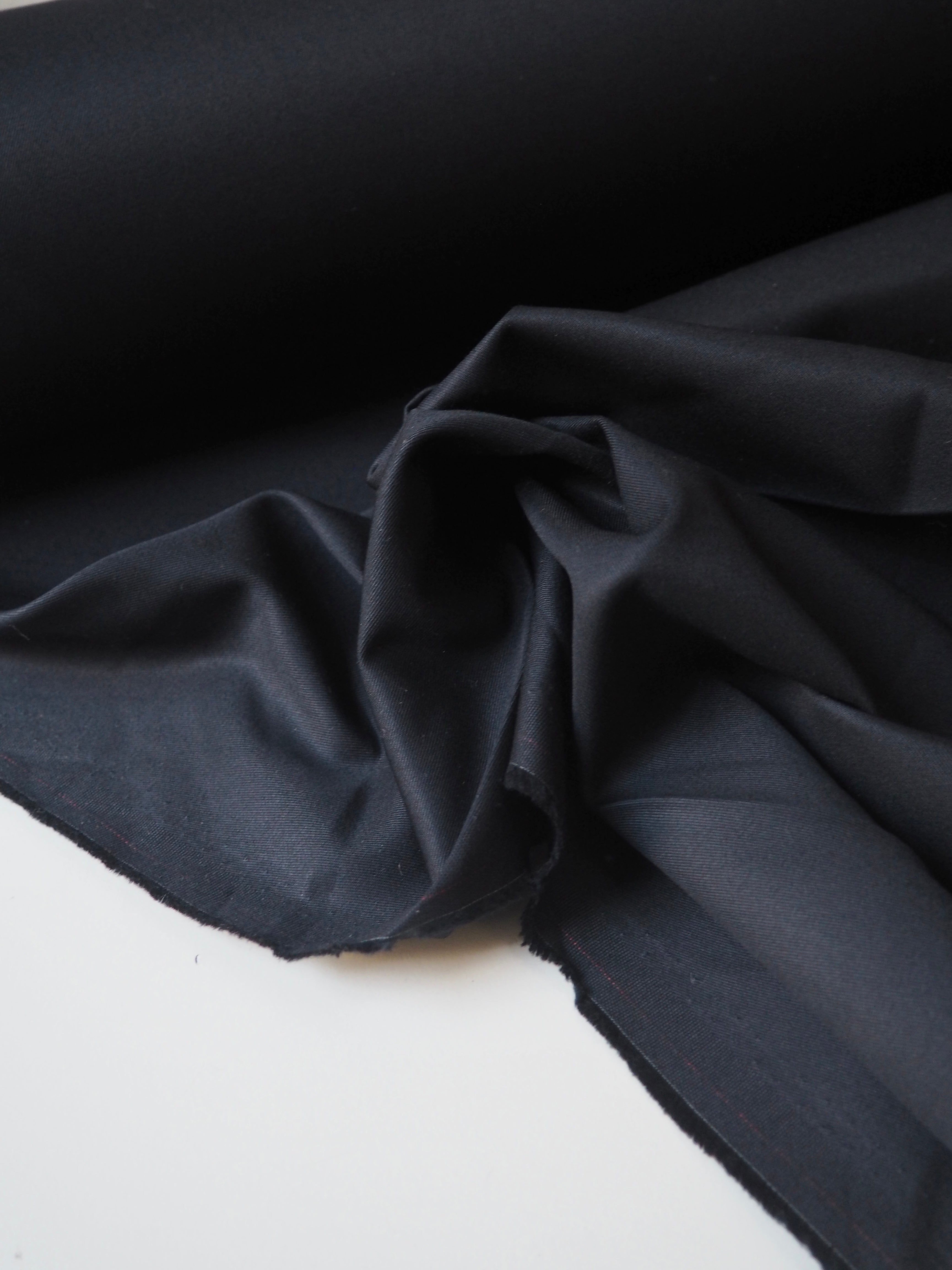 This ex-designer fabric is a cotton twill. It's in a rich midnight blue shade. Medium weight with a gentle structure and subtle twill weave. Has a medium sateen sheen. Beautiful handle and wonderful quality for a variety of projects. Perfect for a Lunar Jacket and hard-wearing staples!
