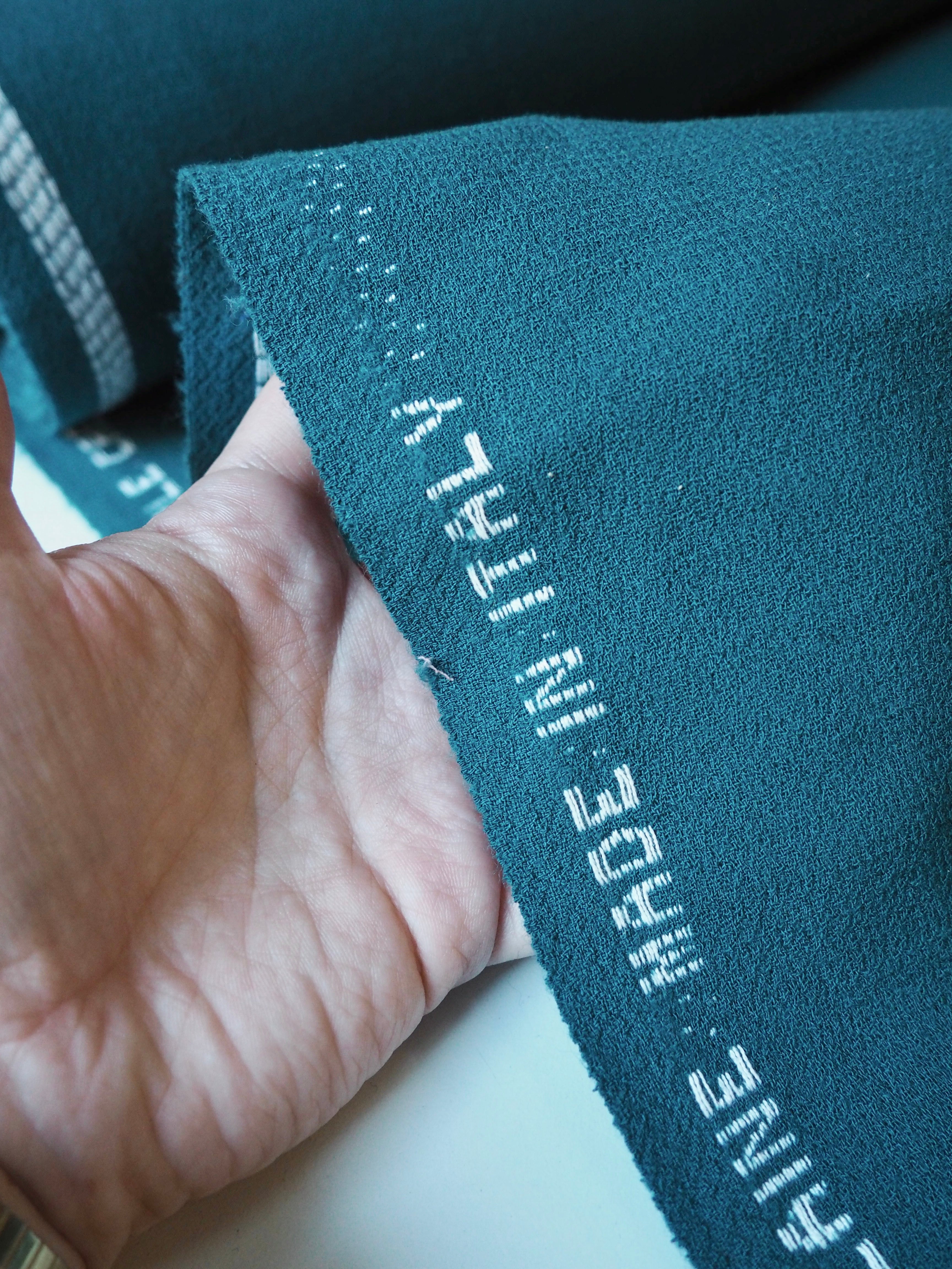 This ex-designer fabric is a wool crepe. It's a double-faced cloth with a sturdy but comfortable weave. It's made of pure wool and feels and looks so luxurious! It has a soft structure and really lovely soft, plush crepe handle. Medium weight, and perfect for tailoring projects. Flexible and has a wonderful drape that makes it so easy to work with! The perfect cloth for a lifetime blazer for all seasons, and wide leg trousers!