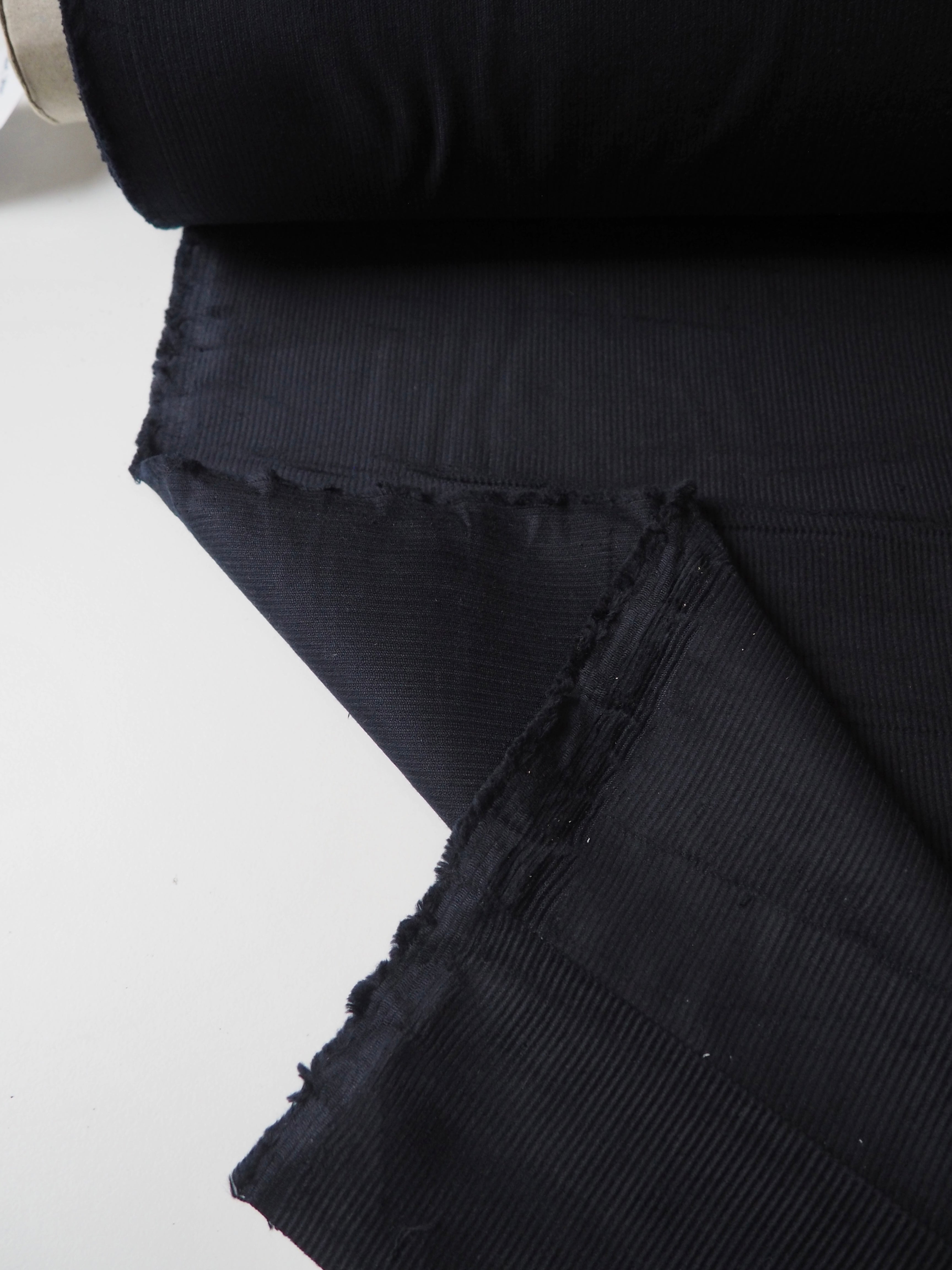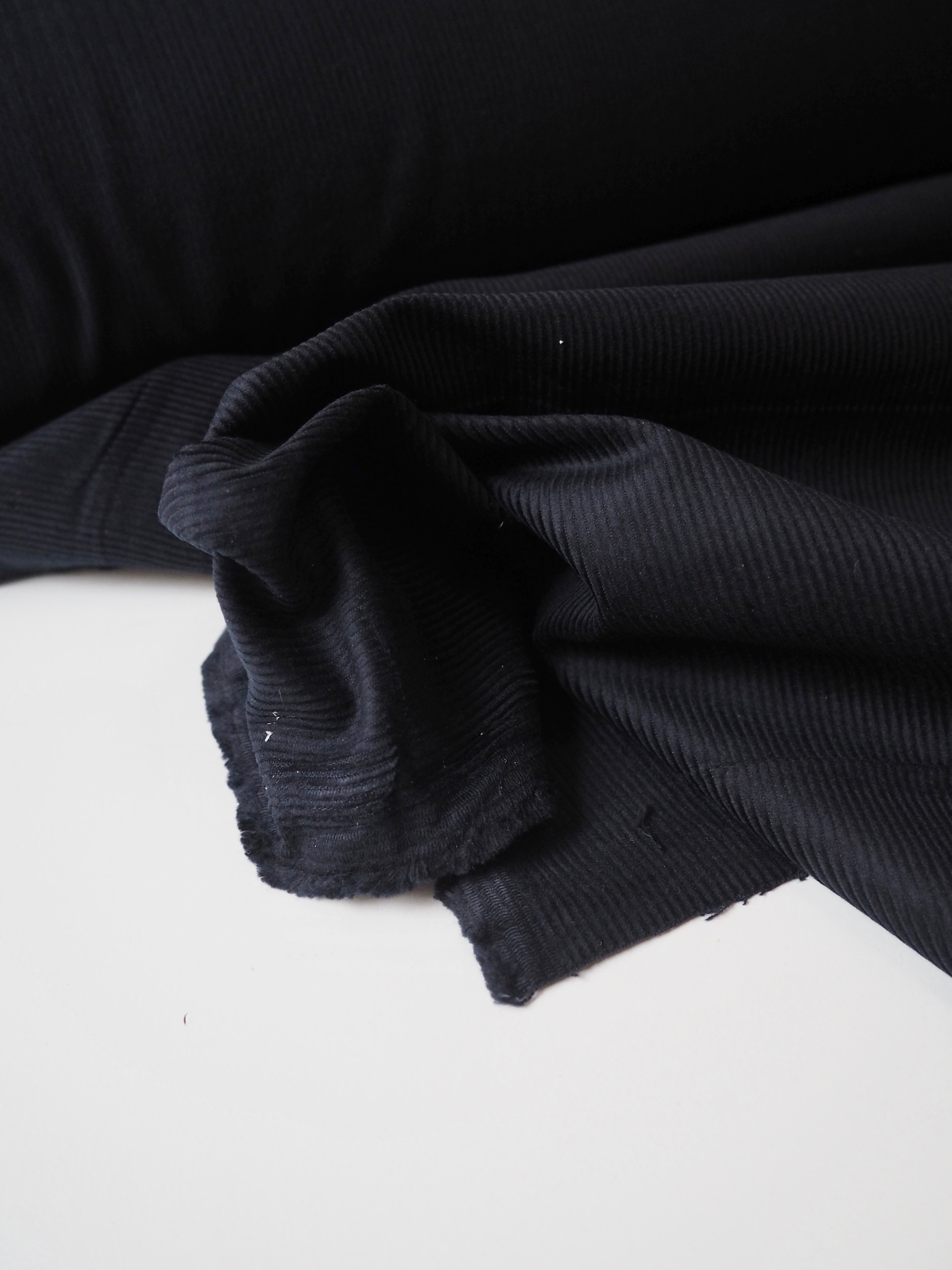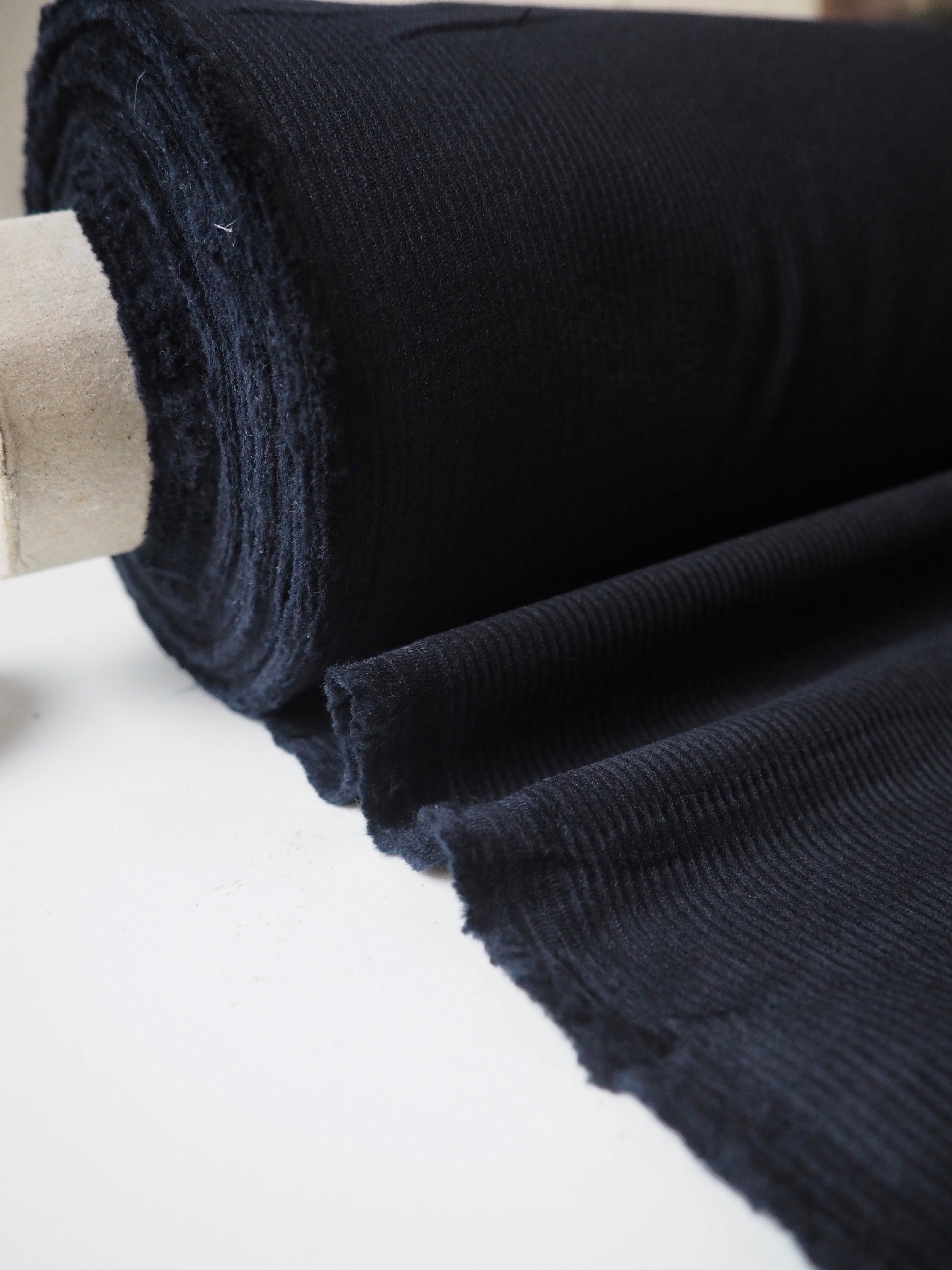This ex-designer fabric is a corduroy. Cord ribs run along lengthways. In a soft organic cotton fibre. Beautifully soft with a gentle structure. Opaque and so lovely! From top-quality UK manufacturer Brisbane Moss. Medium weight and quite sturdy. Perfect for a jacket!