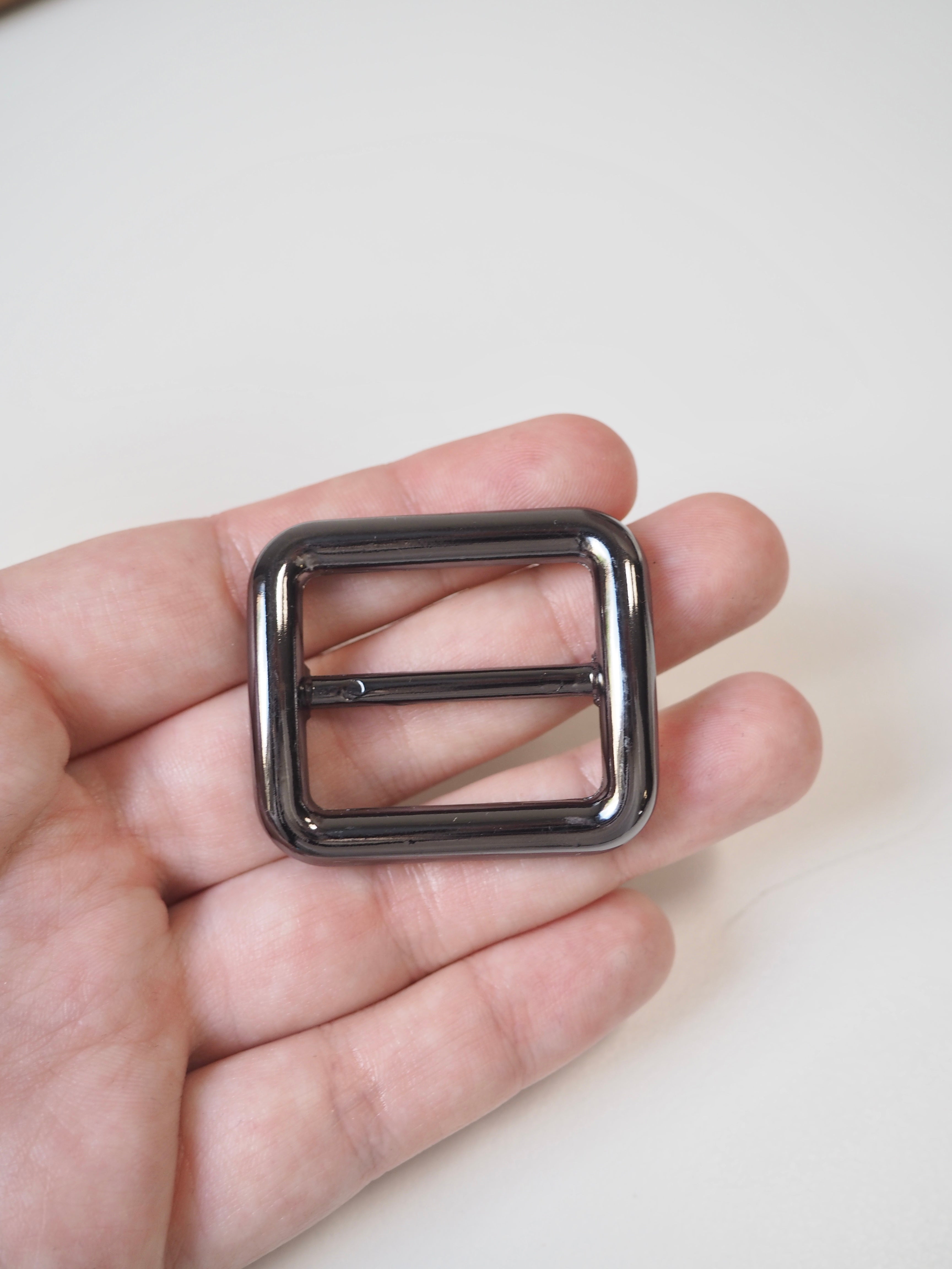 This ex-designer hardware is a rectangle slider. It's chunky and fully enclosed. These can be used for bag making and accessories. Ideal for attaching straps!