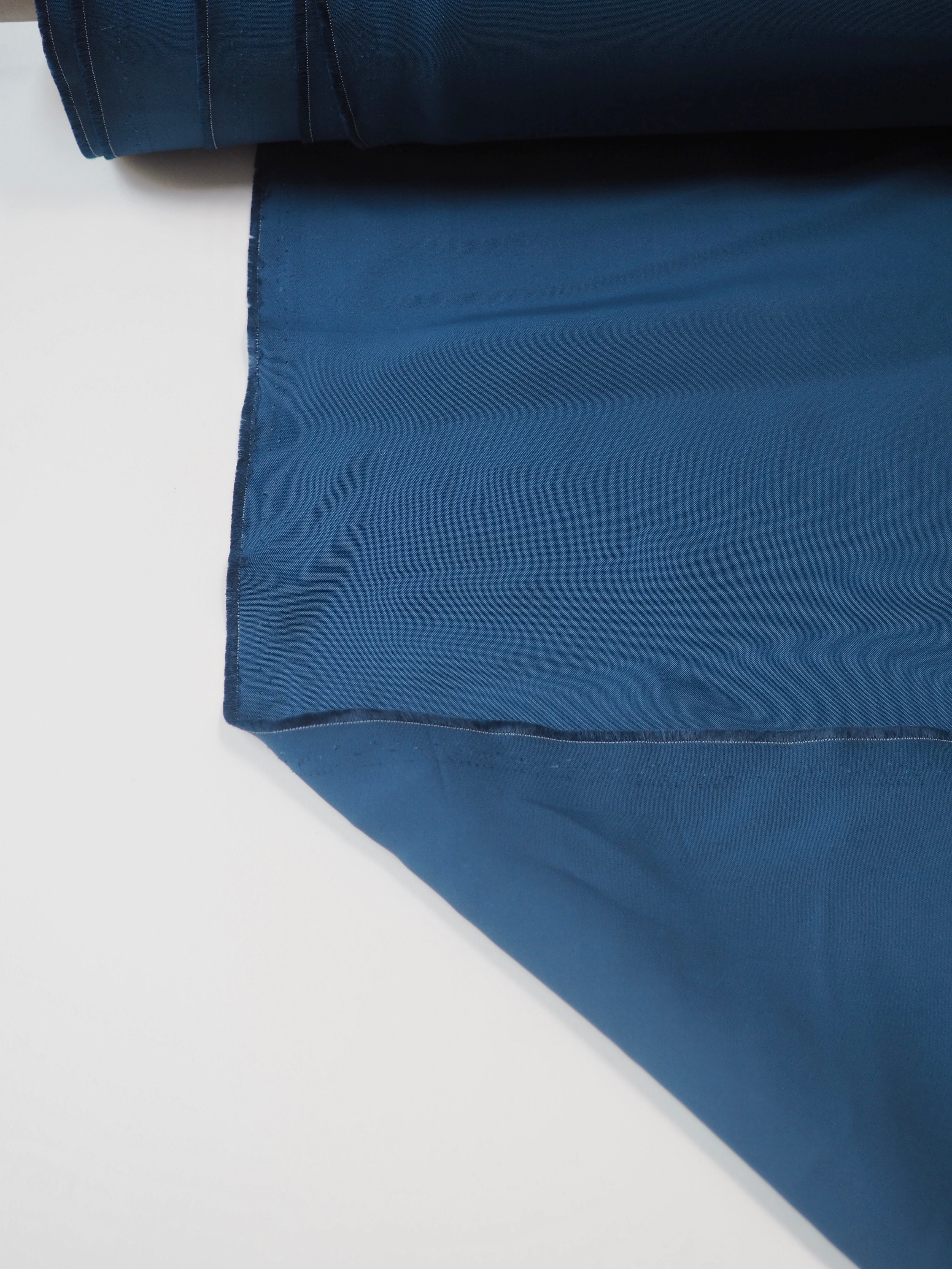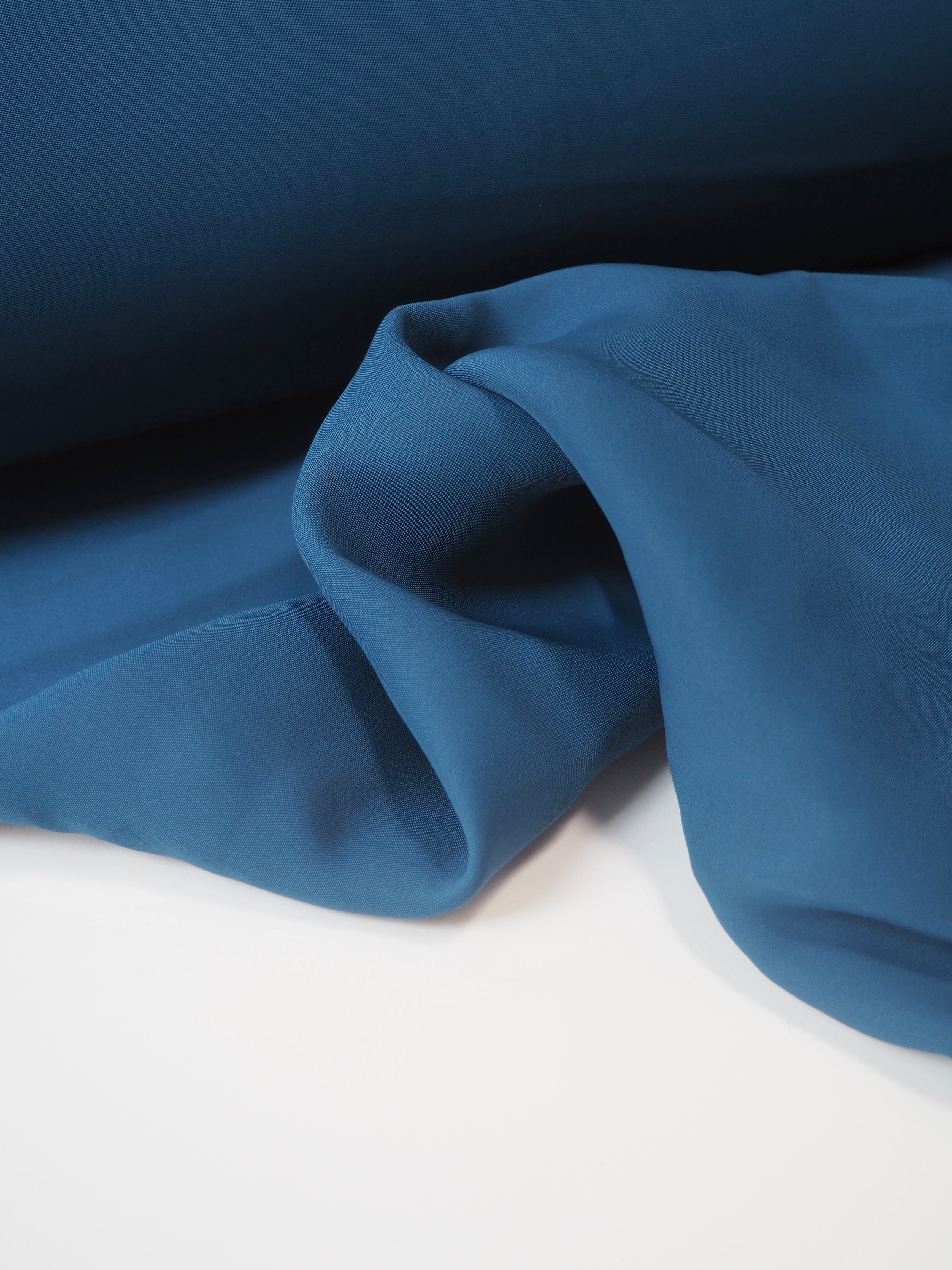 This ex-designer fabric is a viscose twill. It's a subtle twill weave, in a rich steel blue colour with a slinky, smooth handle. Light to medium weight with a slight sateen sheen. Comfortable and very drapey! Great for dresses, and would be lovely as a cowl neck top or dress!