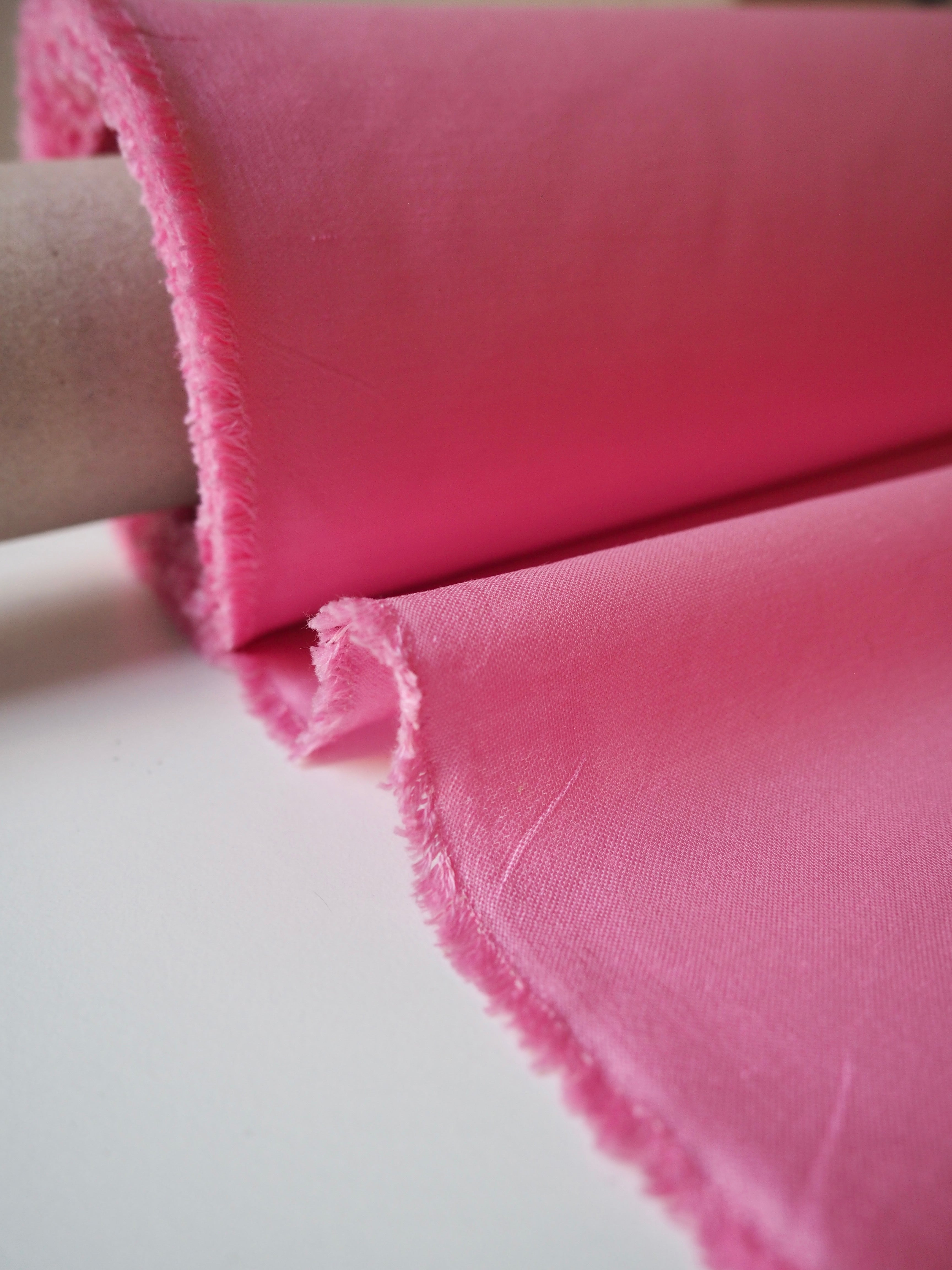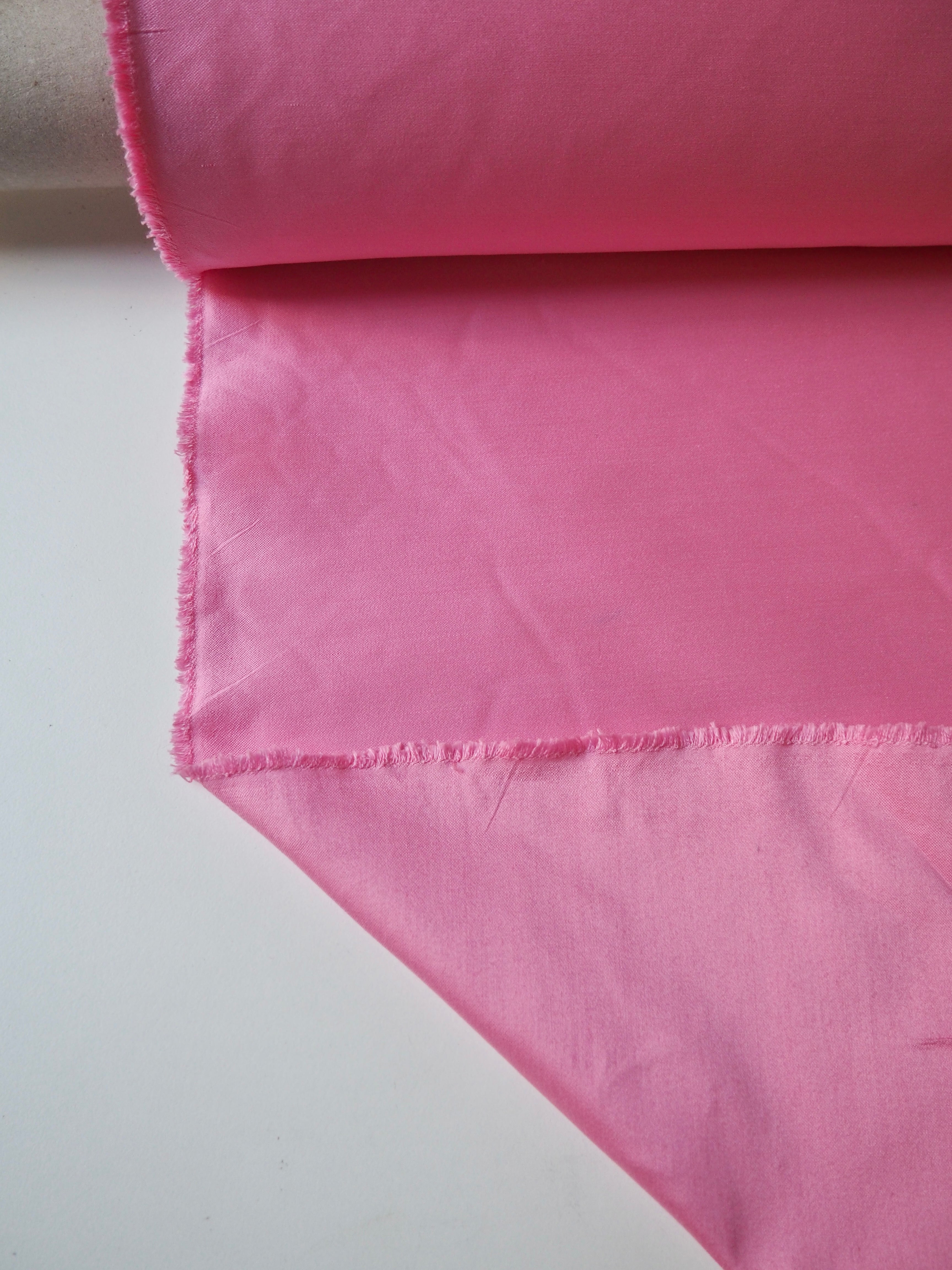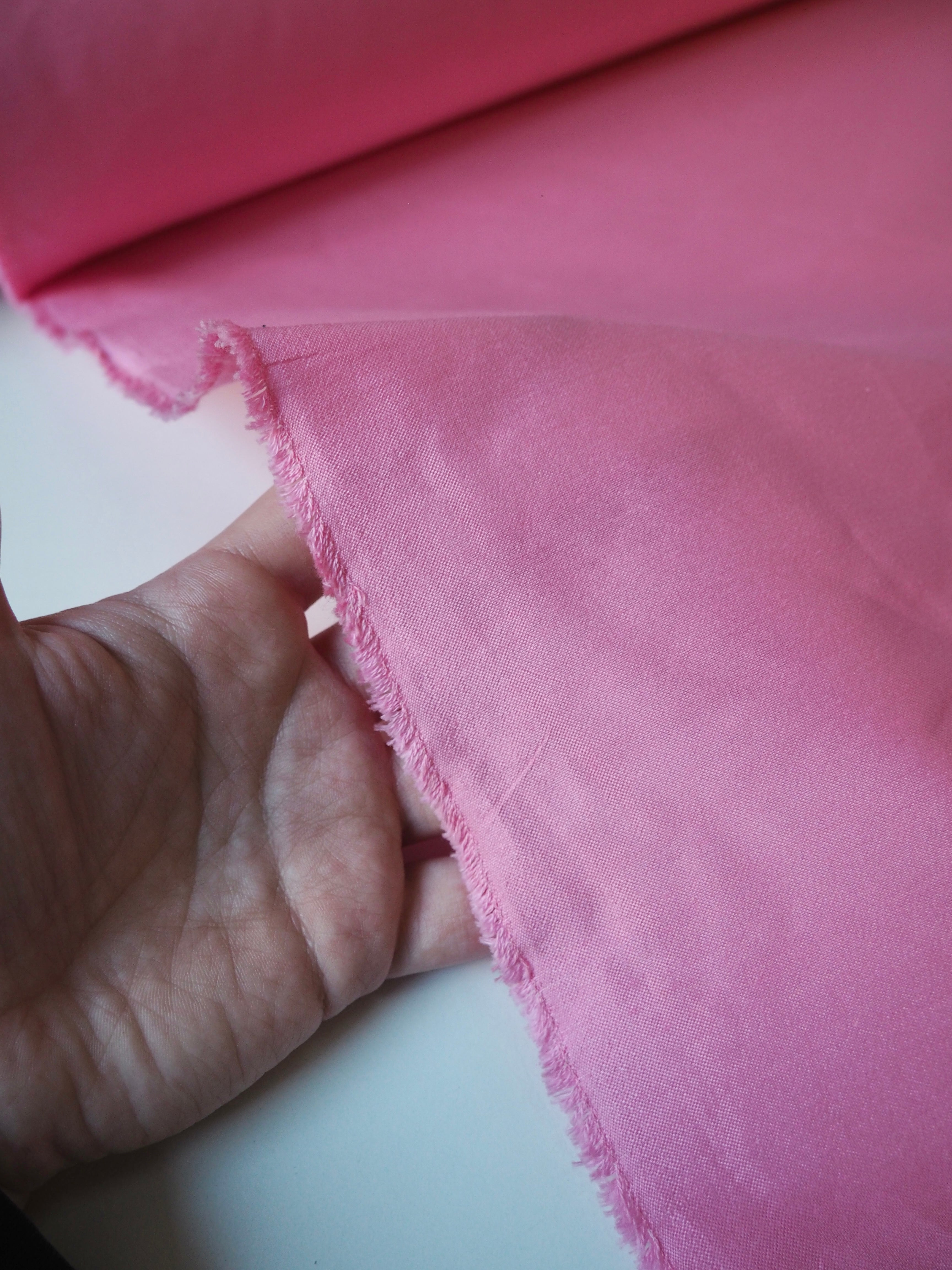 This ex-designer fabric is a cotton sateen. It's a beautiful pink shade, with a medium lustre on the right side and a soft and smoother finish on the reverse. Medium weight with an amazing gentle structure, and the loveliest soft handle. Very sturdy and comfortable to work with. We see tops and jackets!