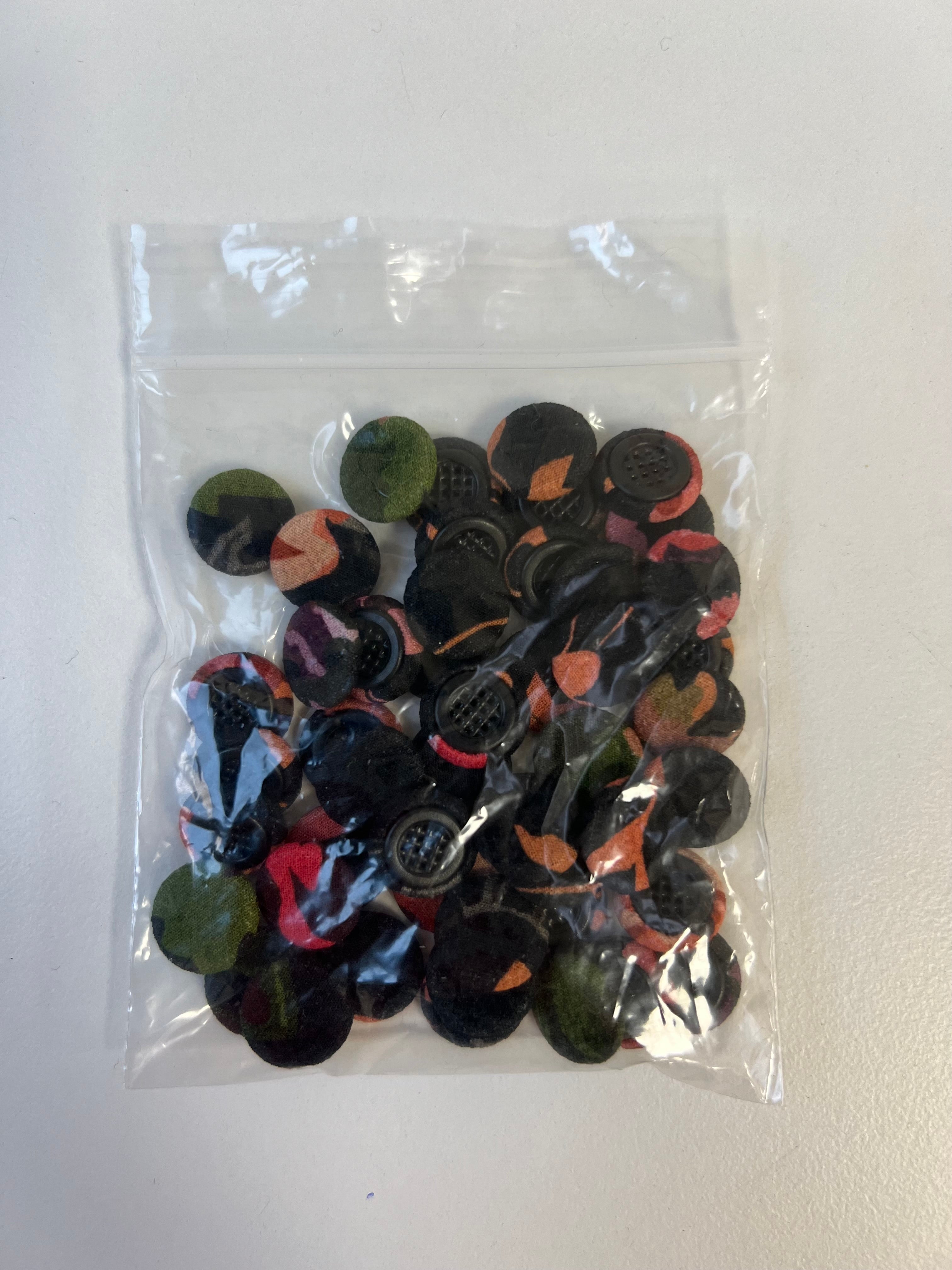 Black + Floral Fabric Covered Buttons 13mm x48