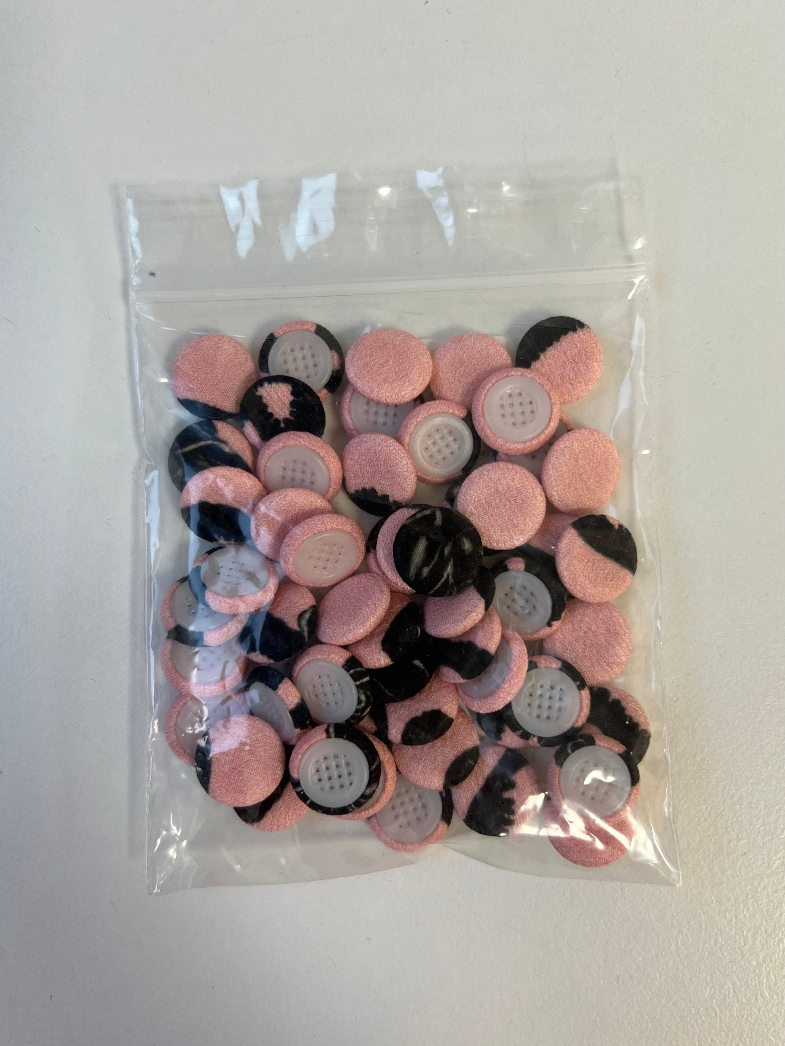 Pink + Black Fabric Covered Buttons 13mm x54