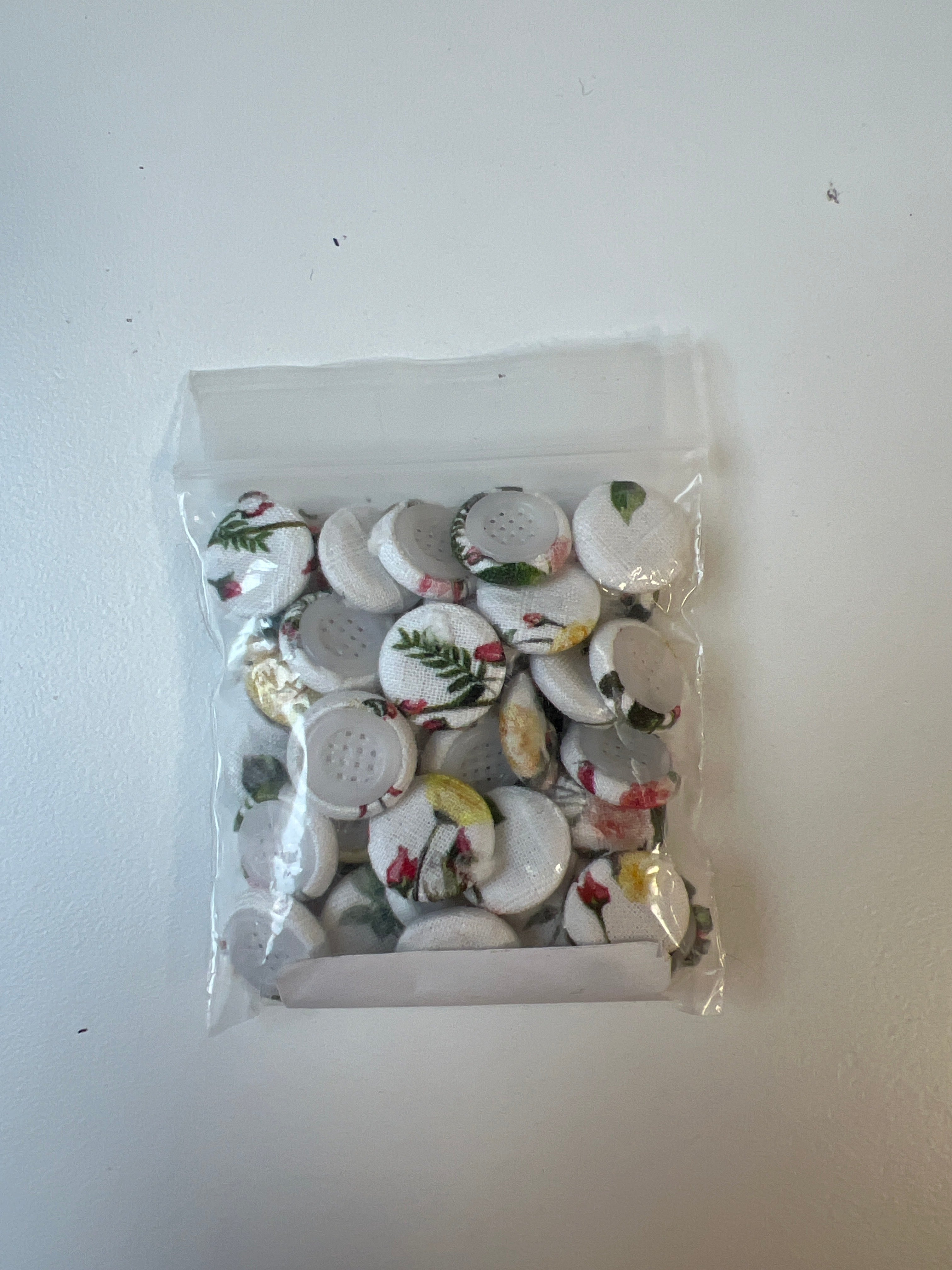 White Floral Fabric Covered Buttons 13mm x37
