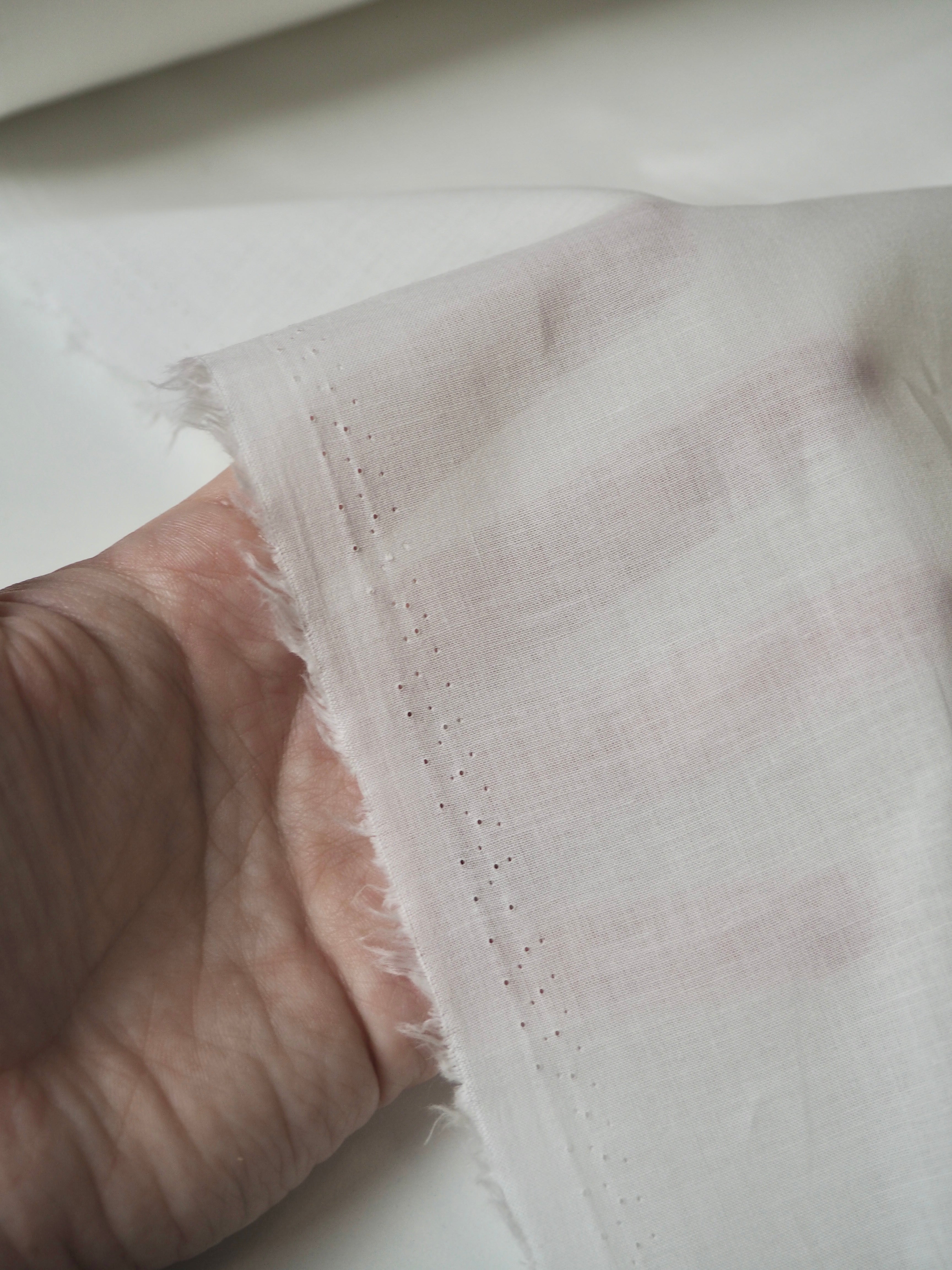 This ex-designer fabric is a voile. It's lightweight, airy and semi-sheer. It has a flat finish and a lovely, soft cotton handle. In classic white and has a light drape, and very slight crispness that haves a bit of structure. Ideal for lining tops and dresses!