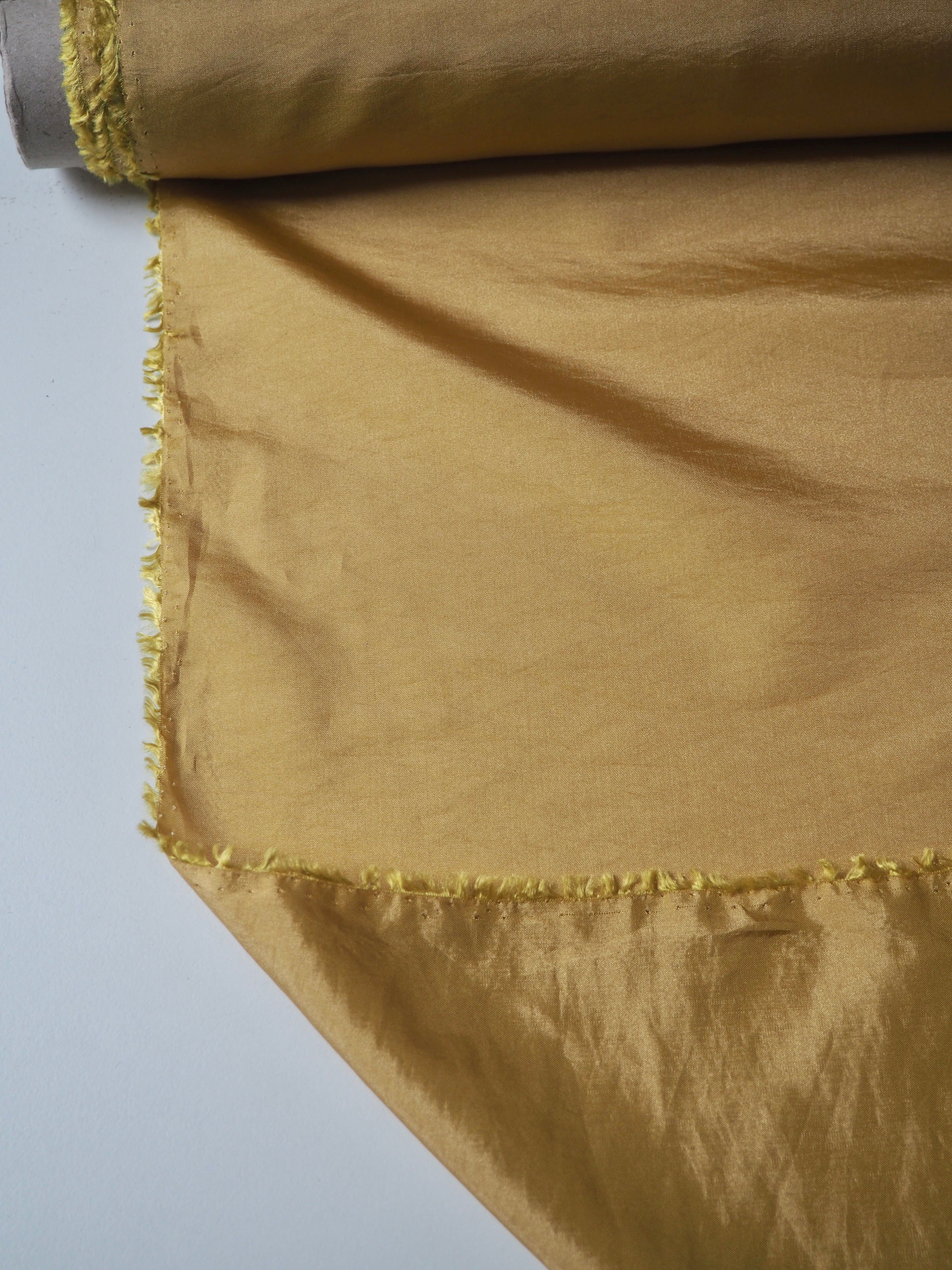This ex-designer fabric is a unique nylon. It's an iridescent-like finished nylon, with a beautiful sheen. It has a smooth and crinkly handle. It's durable, opaque, and lightweight. Strong, with a gentle, drape. Would be great as a jacket, for linings, or for technical projects!