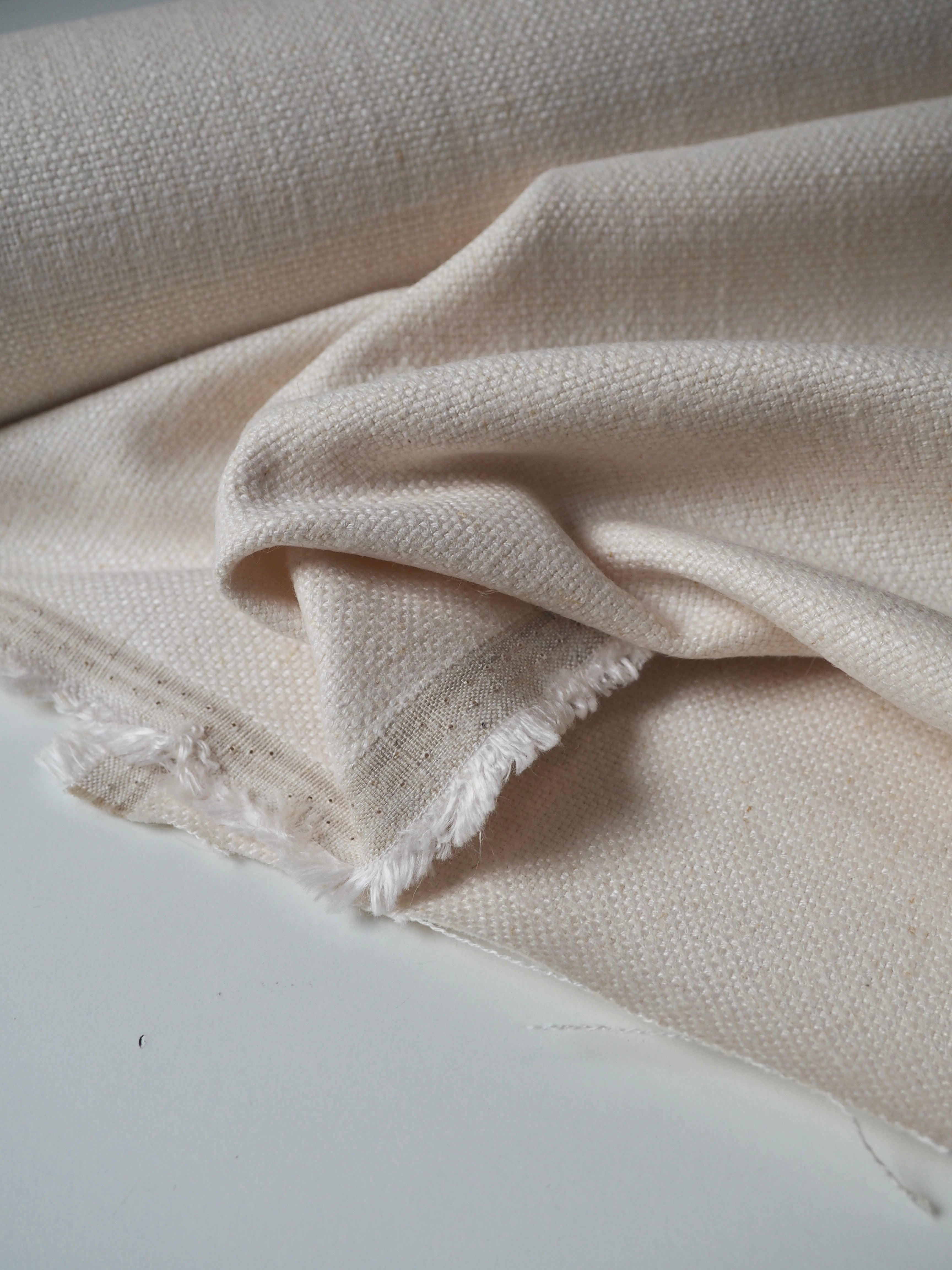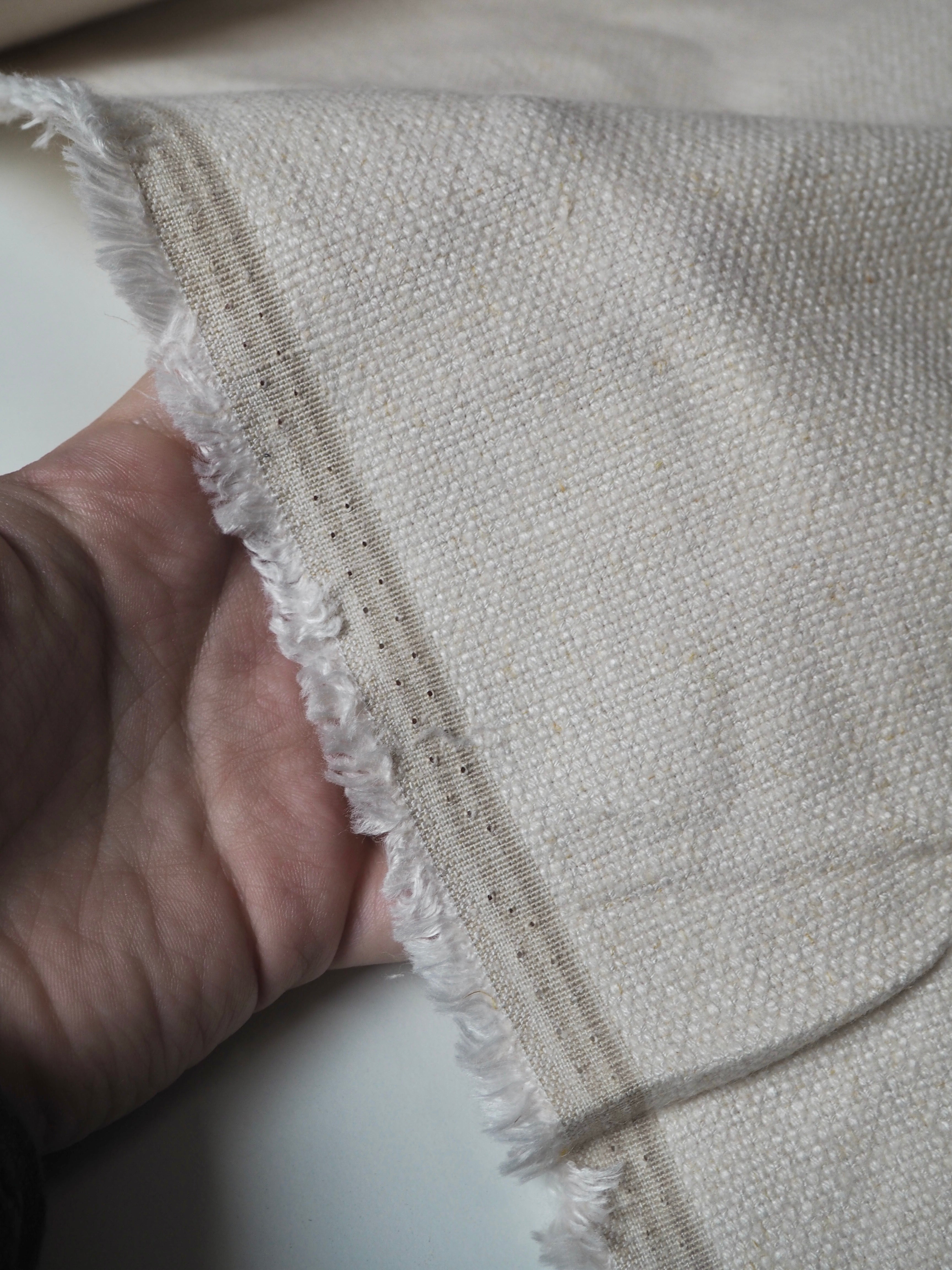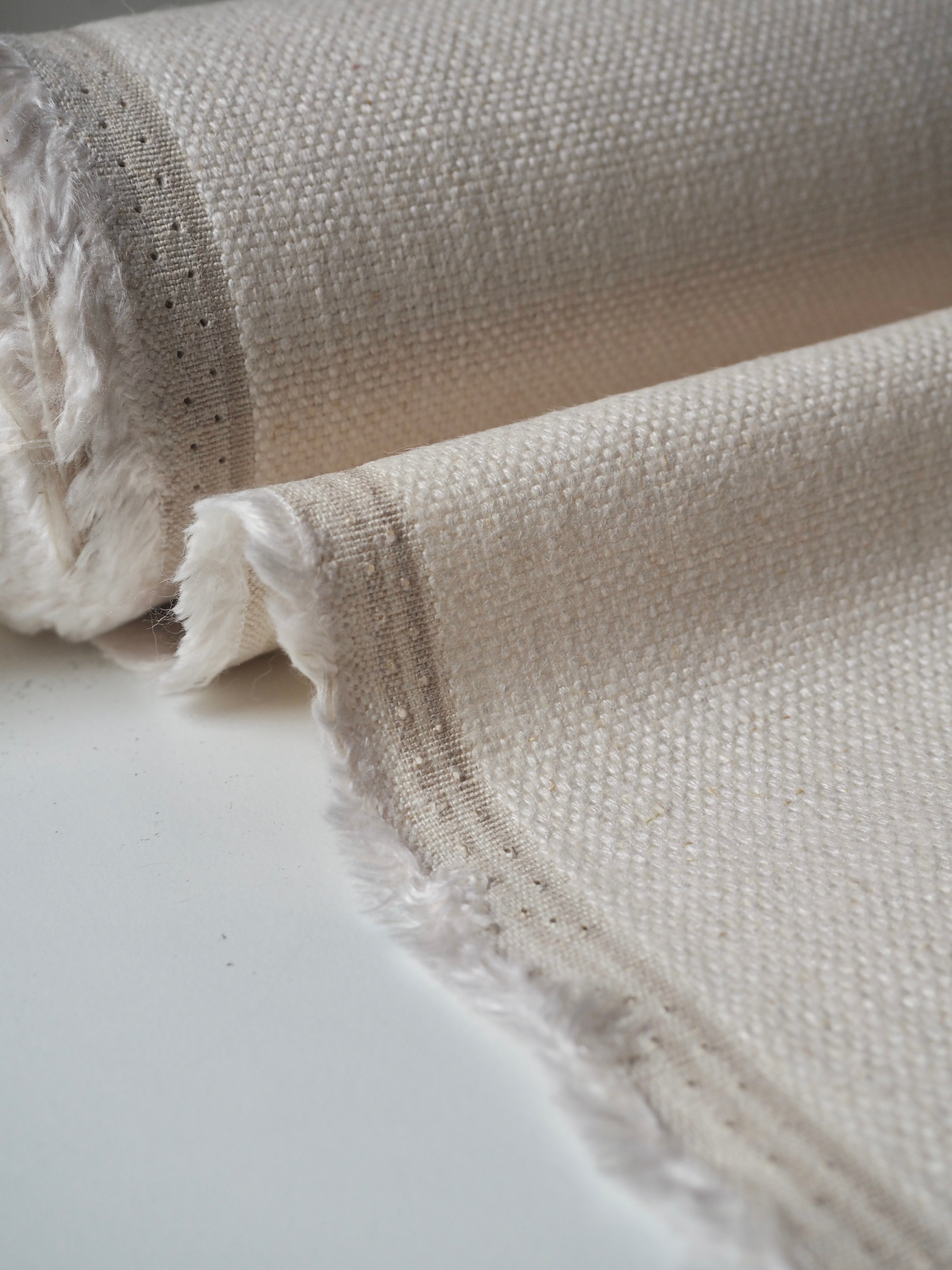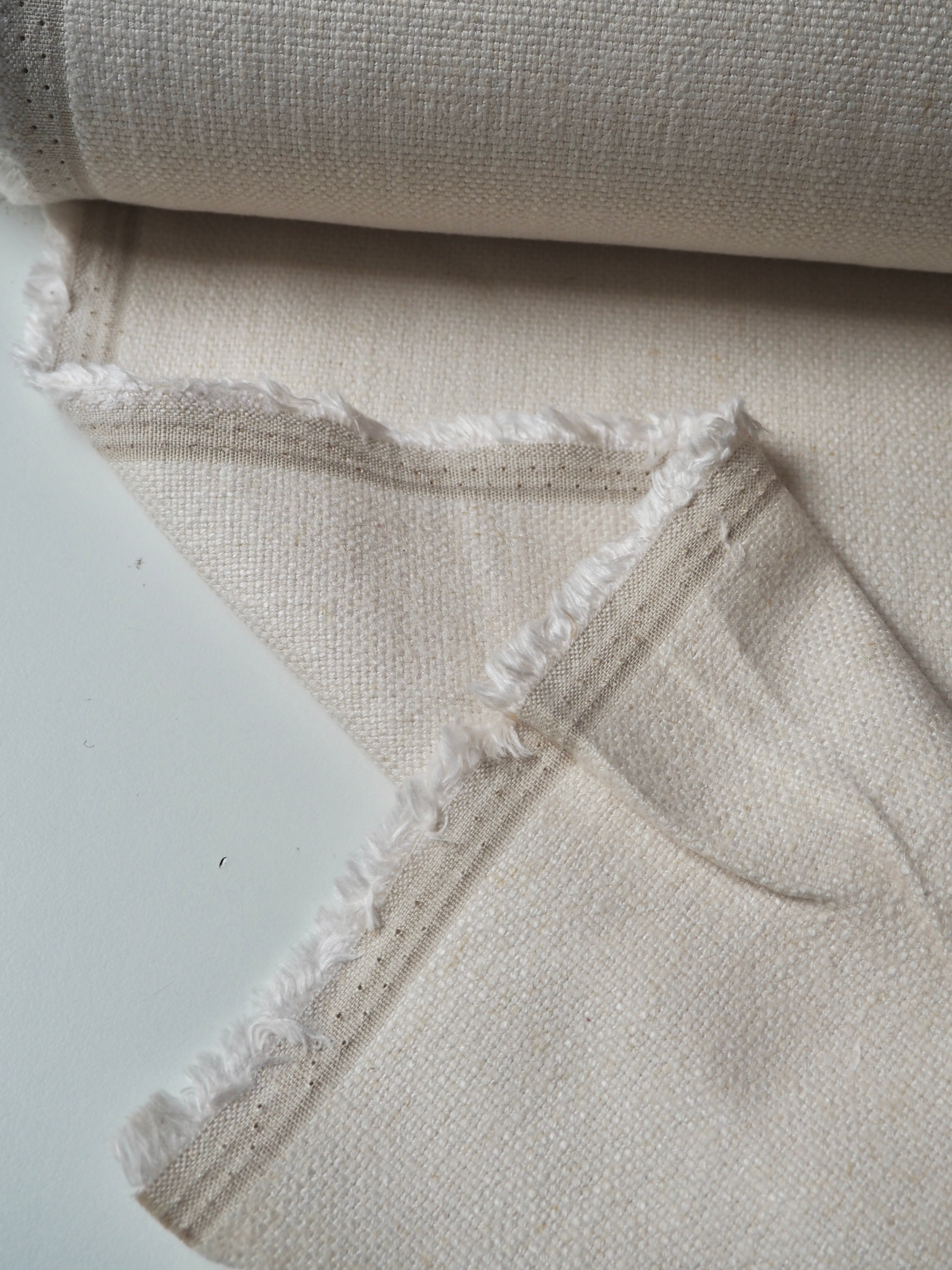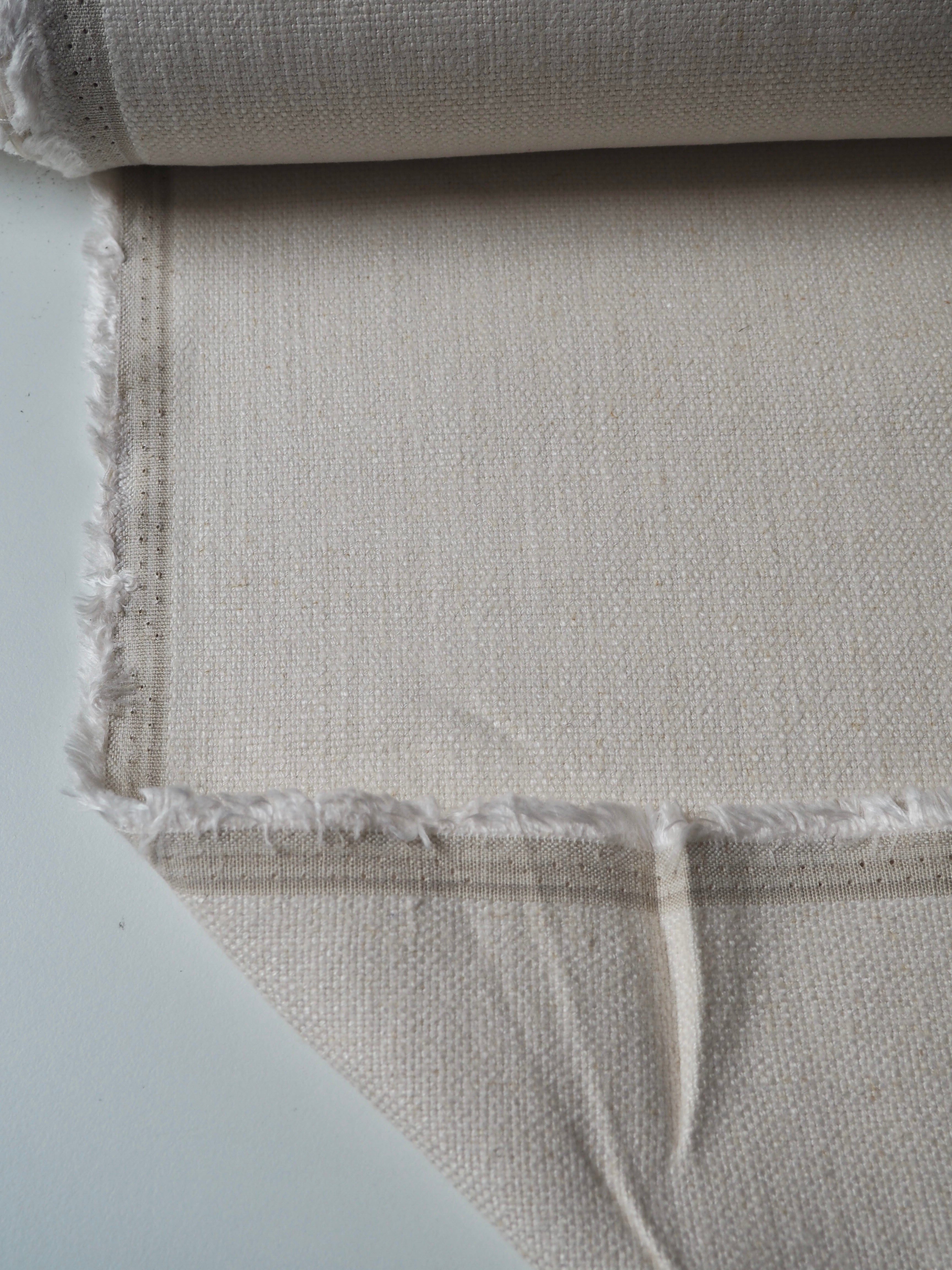 This ex-designer fabric is a heavy linen. It has a sturdy weave, with a lovely texture in a medium to heavy weight. It has the same texture and similar weave to a canvas. Very soft and fully opaque, and beautiful quality. Has a great structure, and is from a home interiors company. Great for cushions or covering furniture!