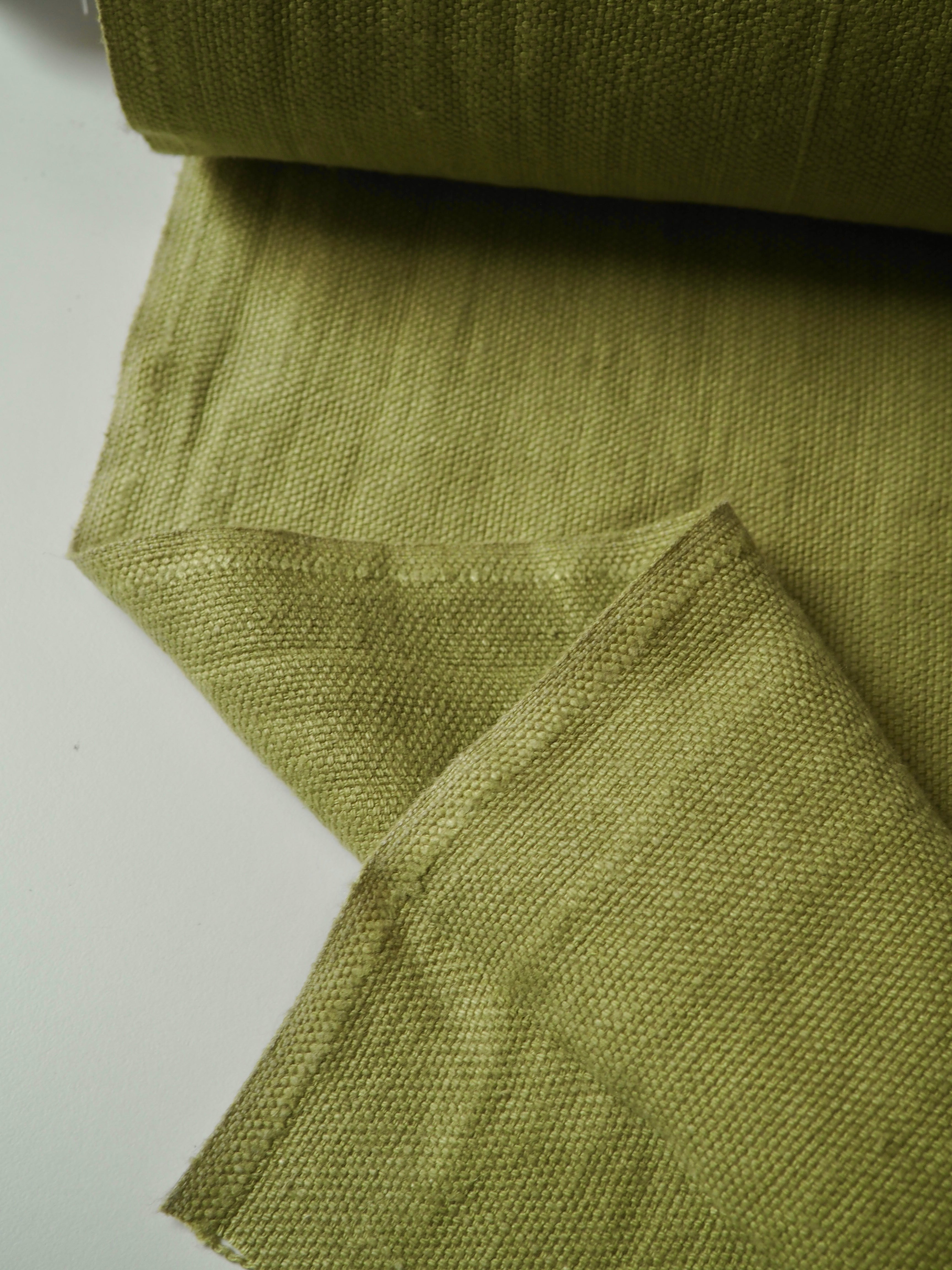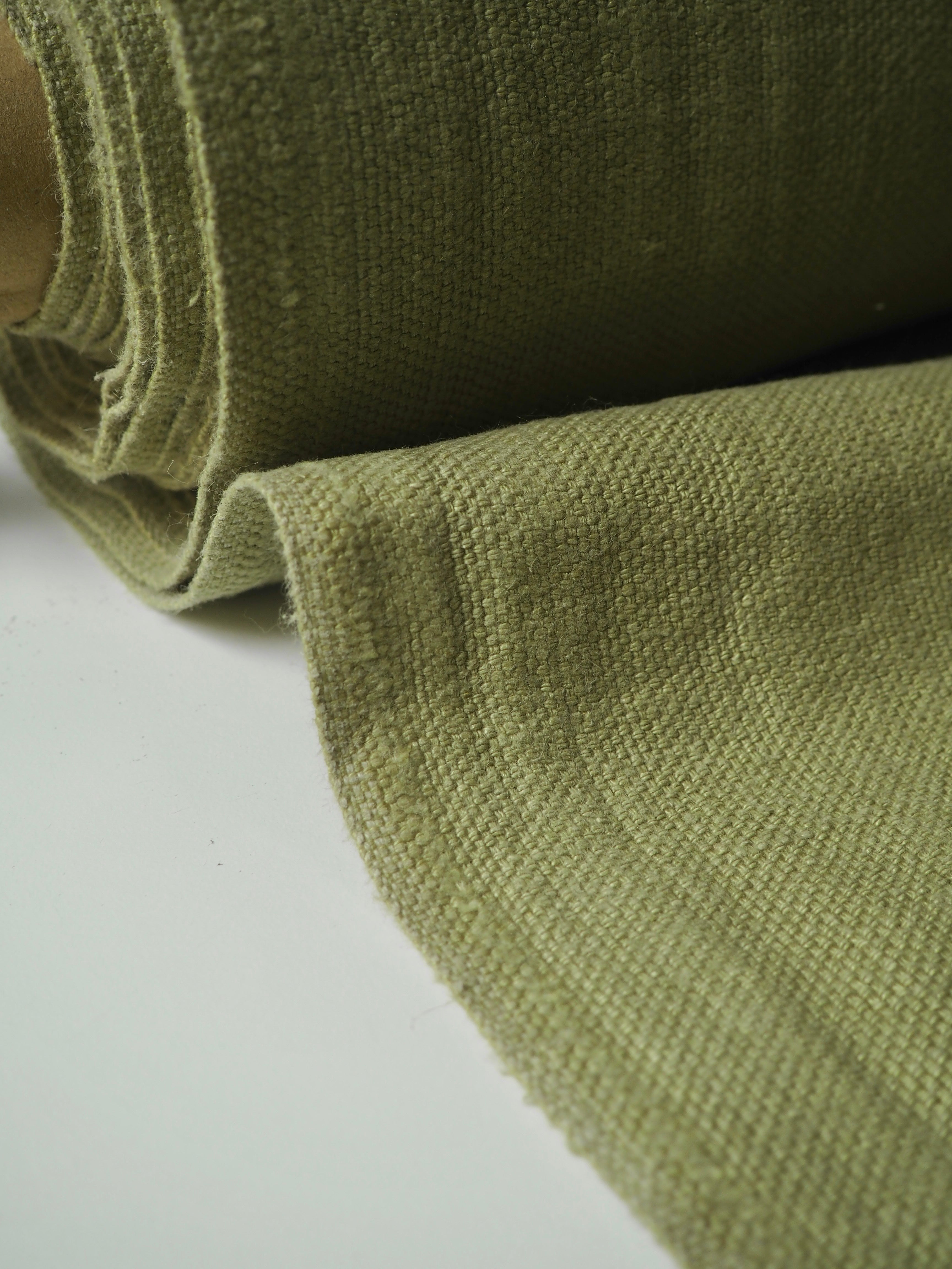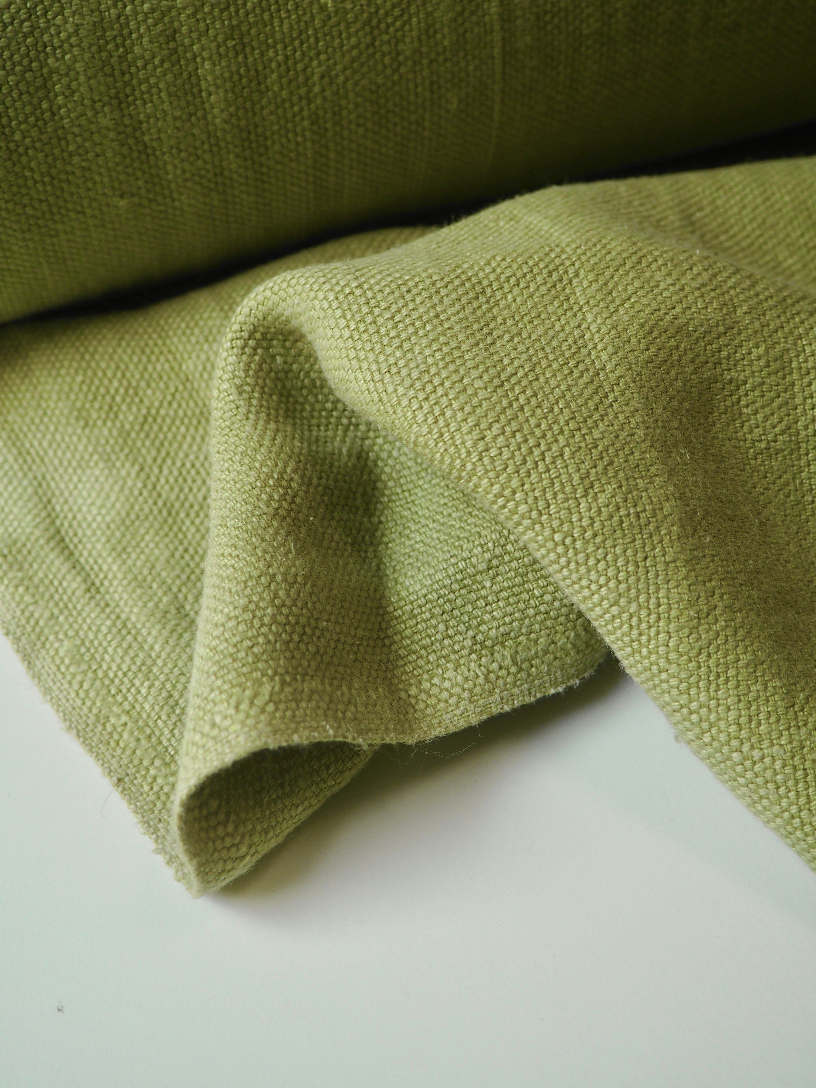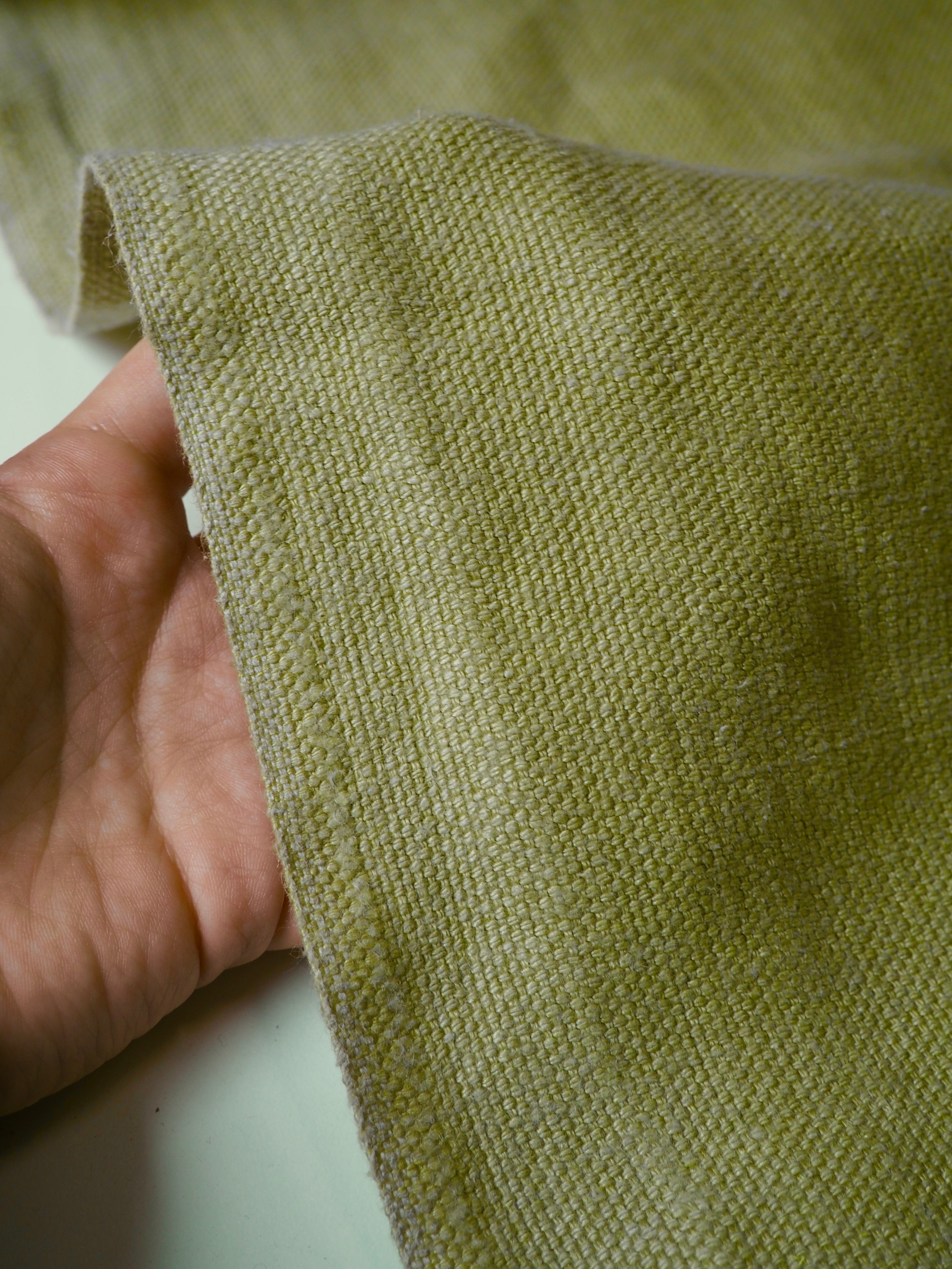 This ex-designer fabric is a heavy linen. It has a sturdy weave, with a lovely texture in a medium to heavy weight. It has the same texture and similar weave to a canvas. Very soft and fully opaque, and beautiful quality. Has a great structure, but still drapes nicely. From a home interiors company. Great for cushions or covering furniture!