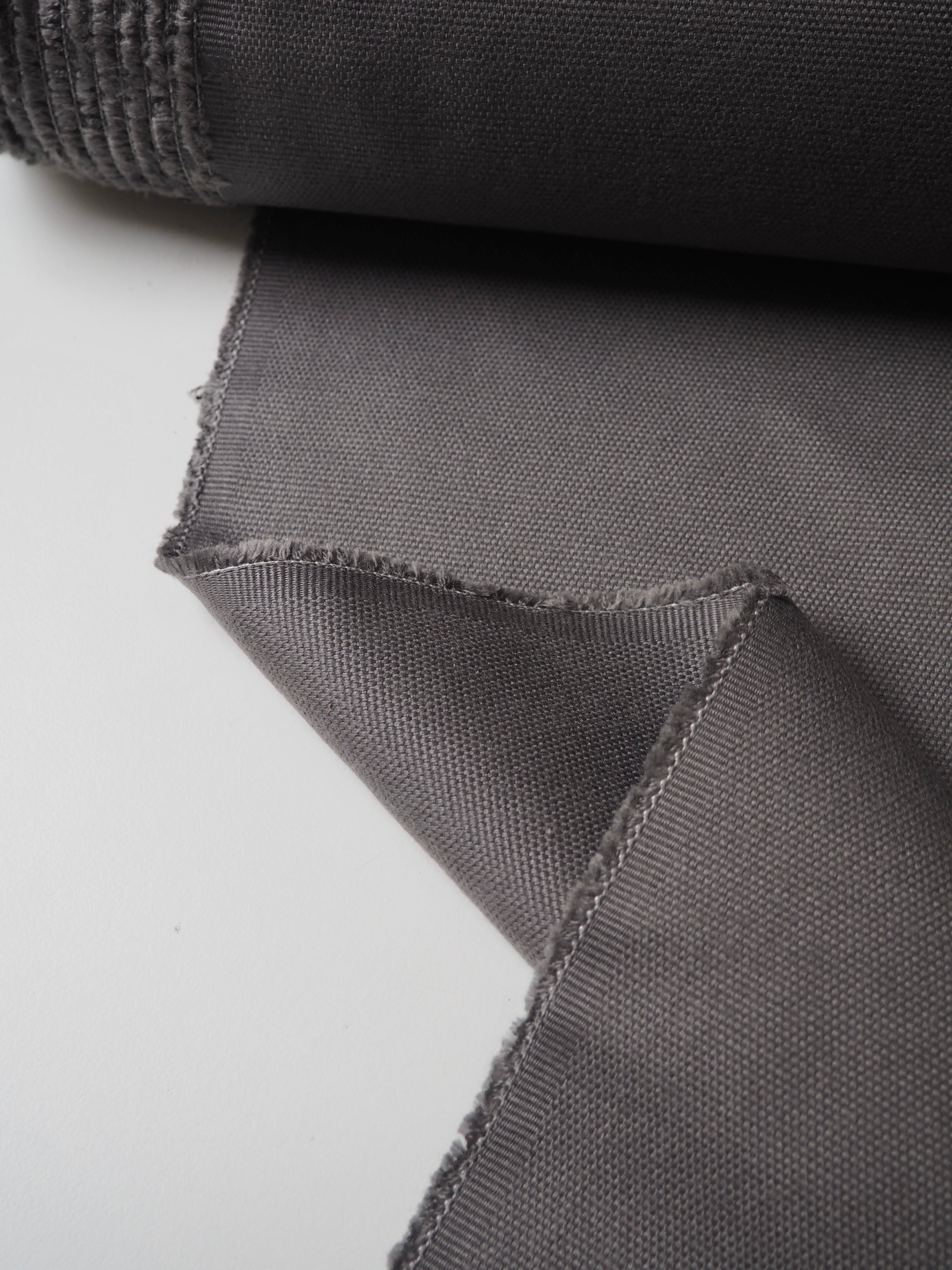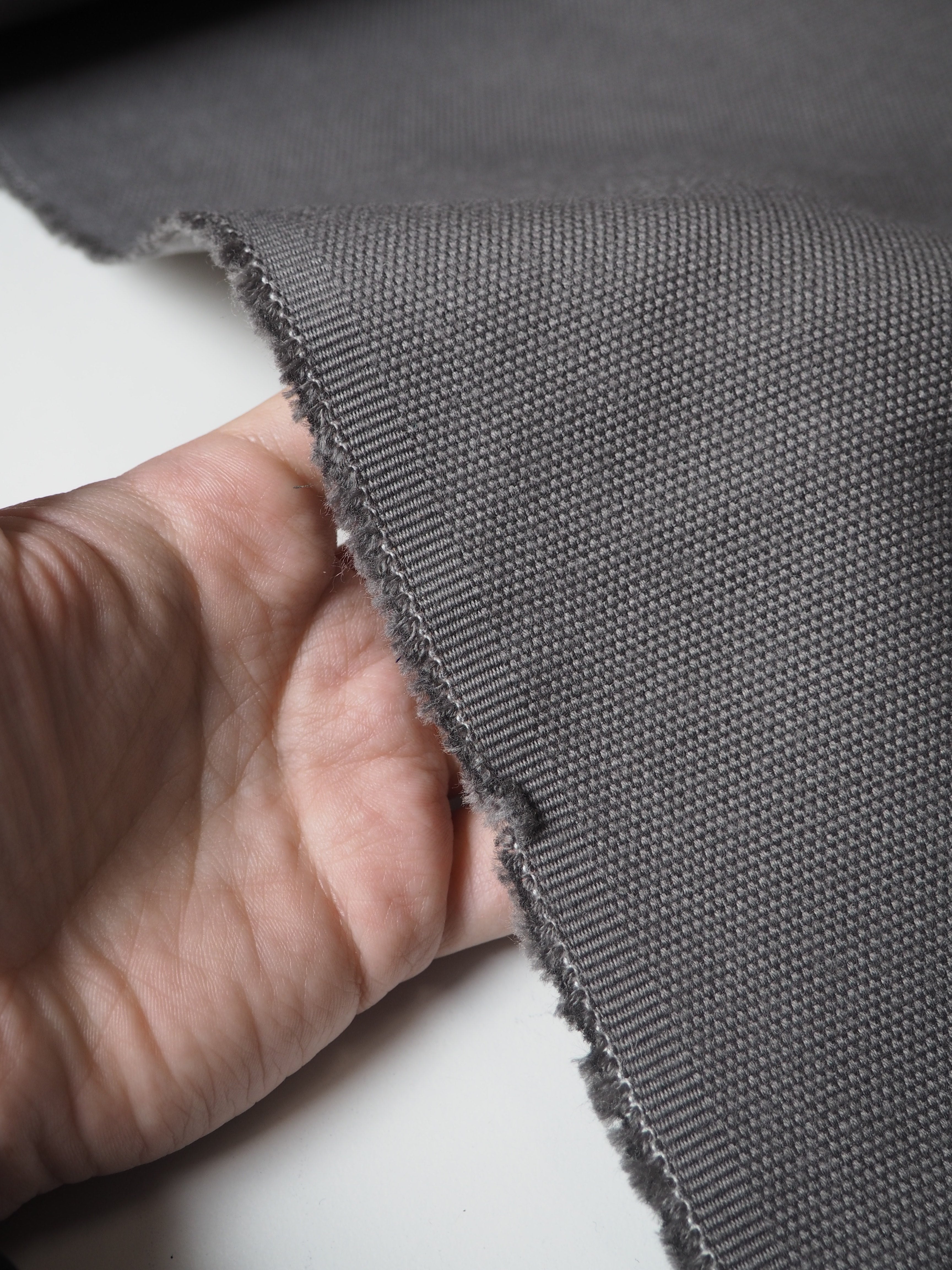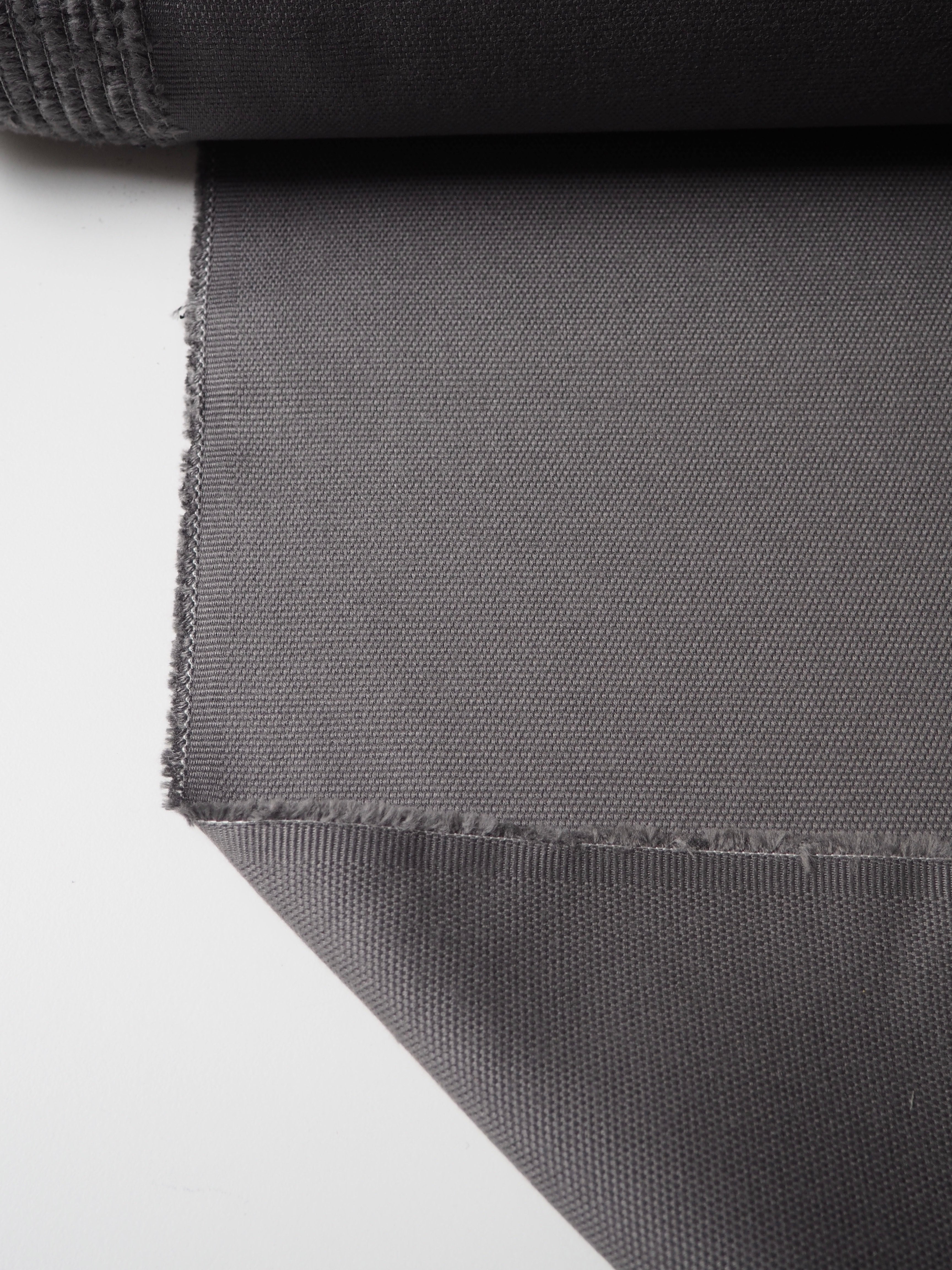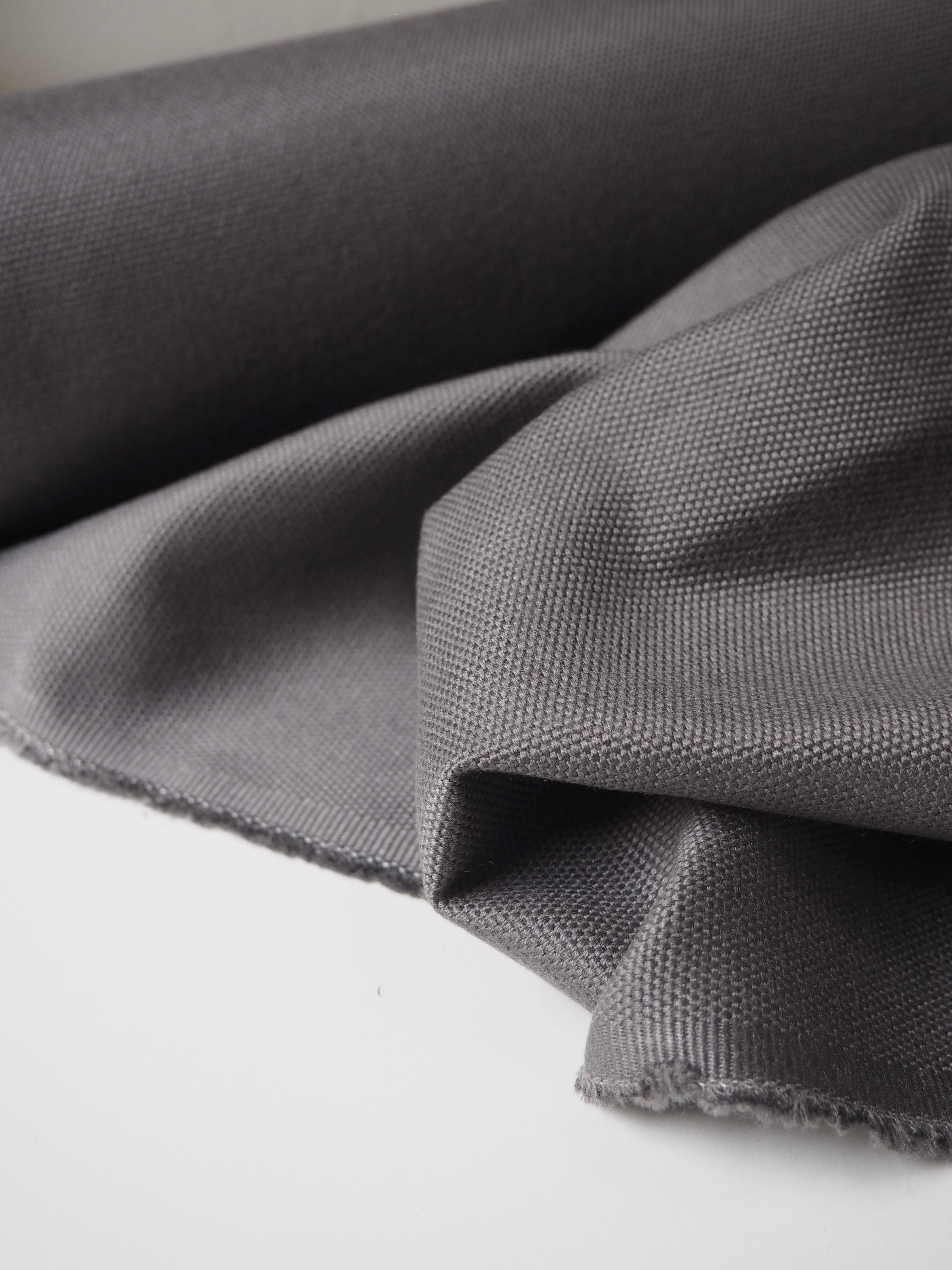 This ex-designer fabric is a furnishing. It has sturdy canvas weave and texture, in a soft grey colour. Medium weight with a great structure. Optimal for home furnishing projects! Would love to see this on a footstool!