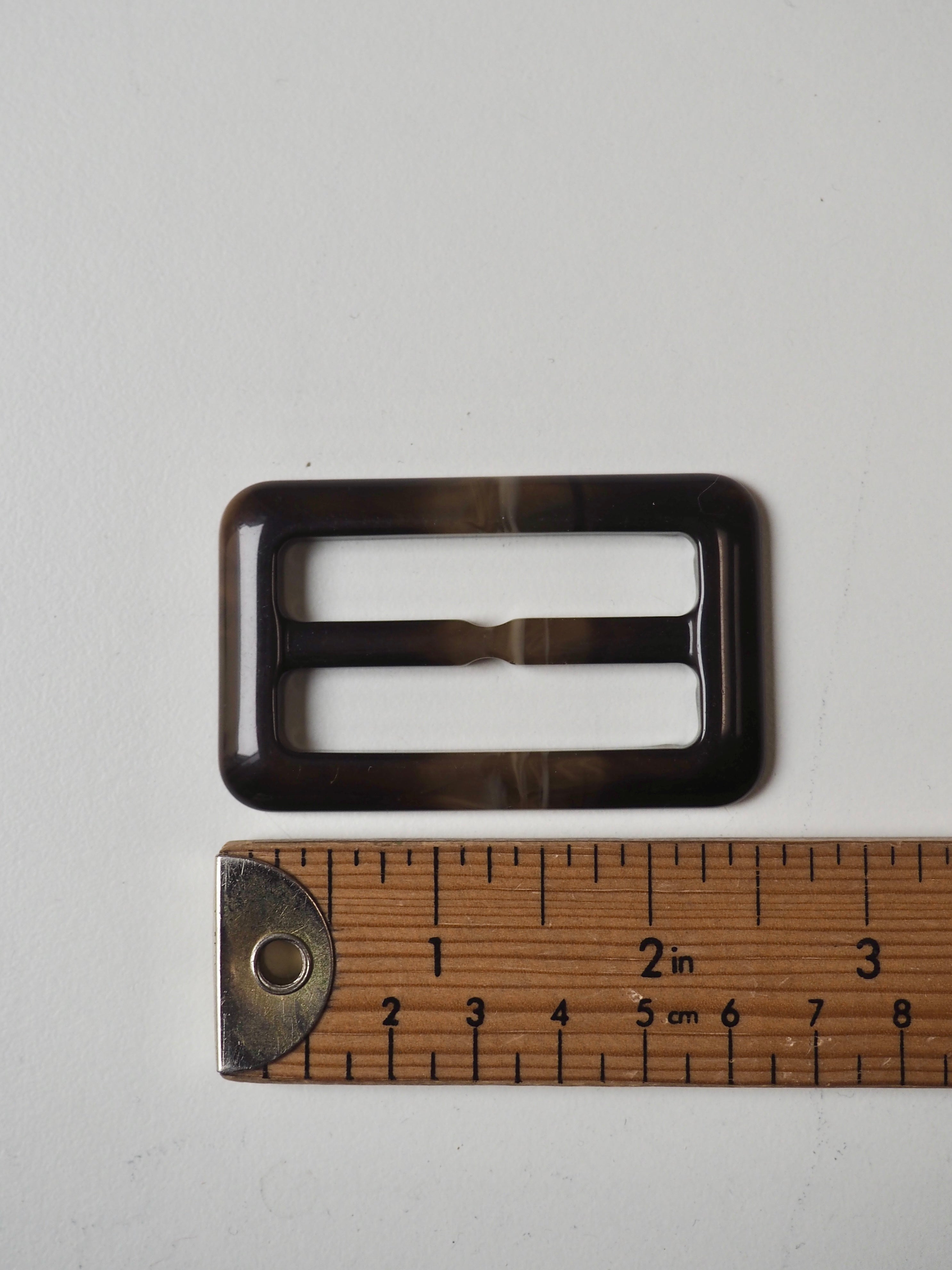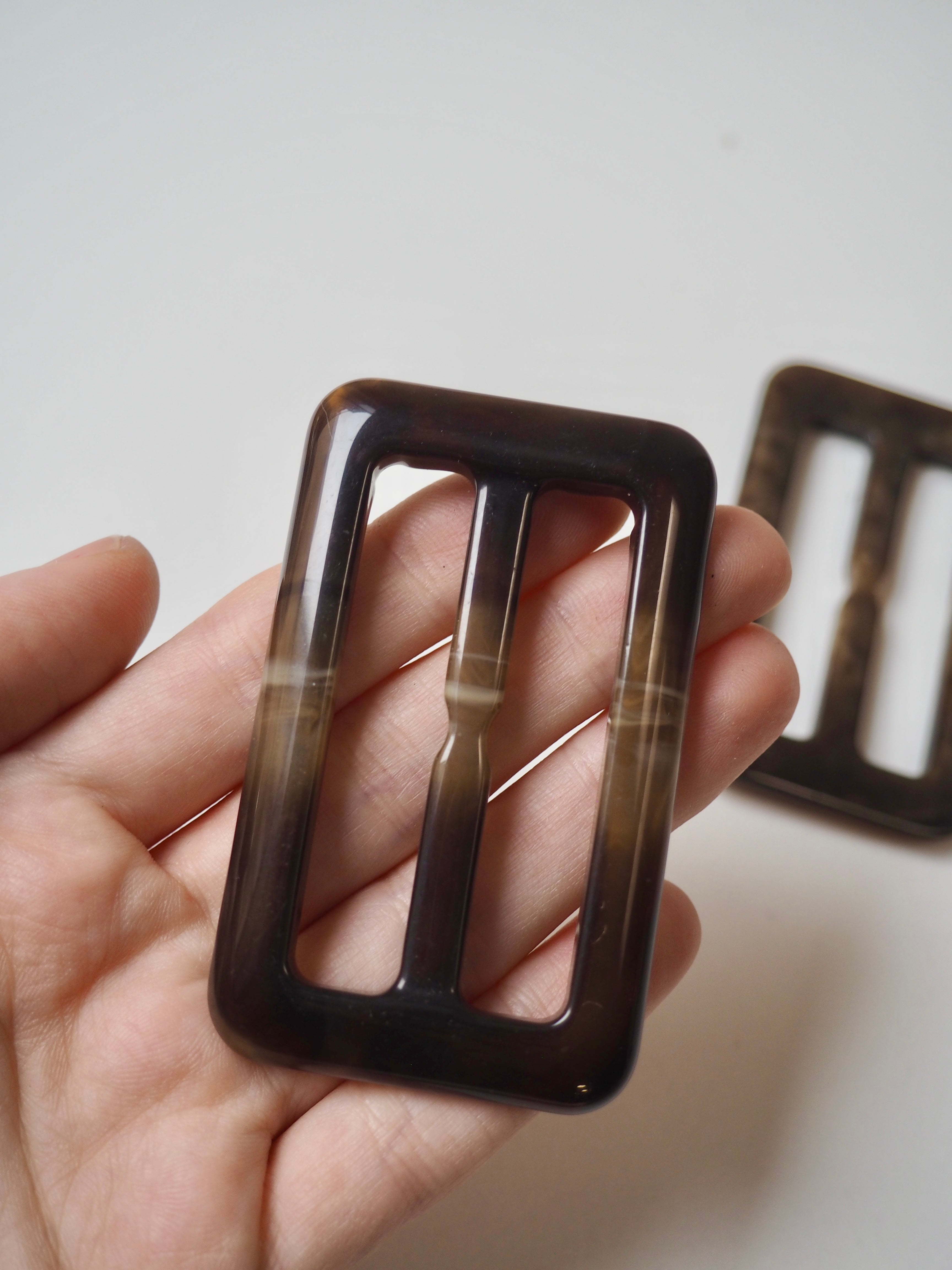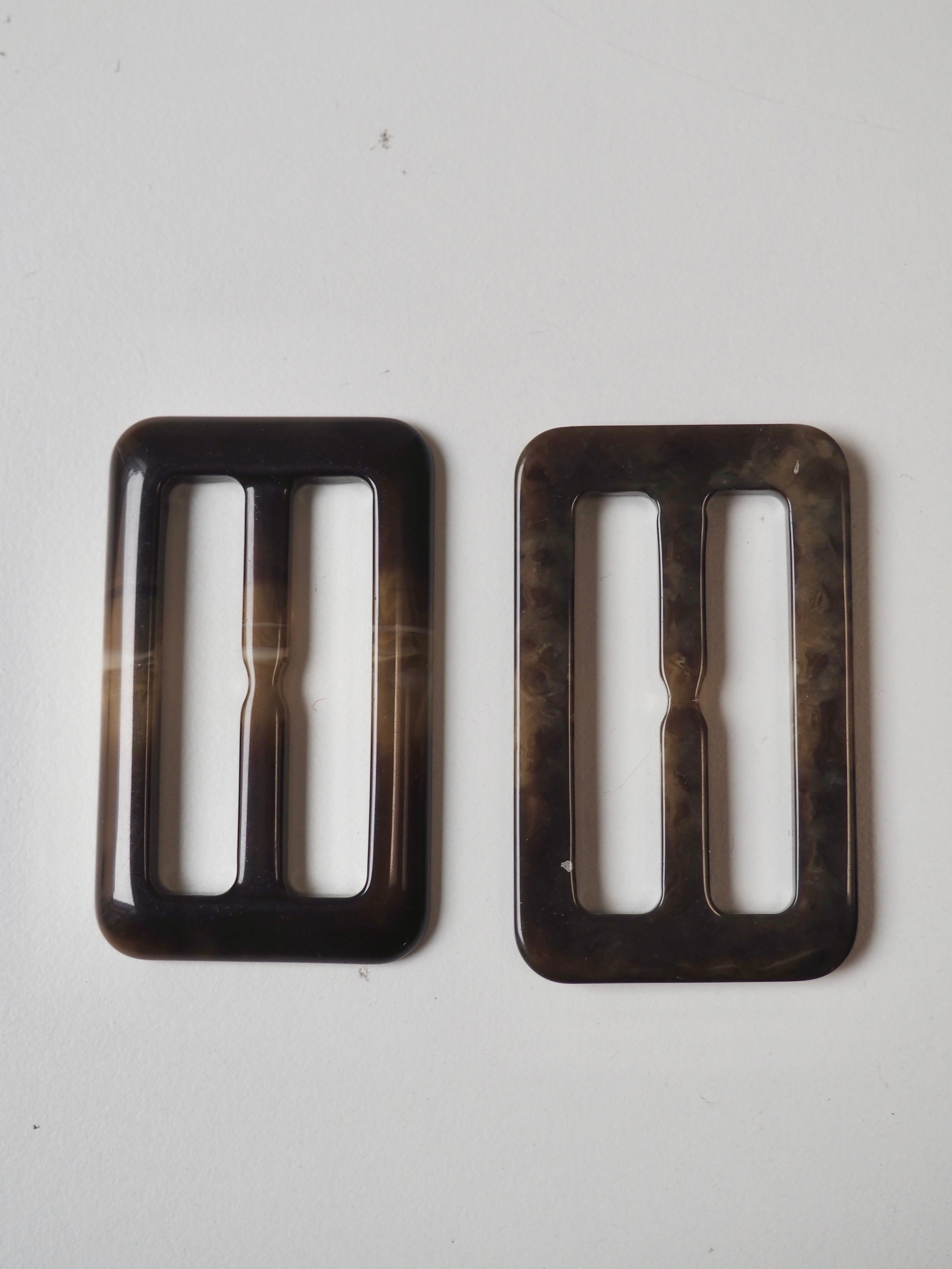 This ex-designer hardware is a slider. It's lightweight plastic and has a fixed central bar for adjustments. They could be used for coats, dresses, jumpsuits, or accessories - they're great for adding an extra detail to your me-mades.