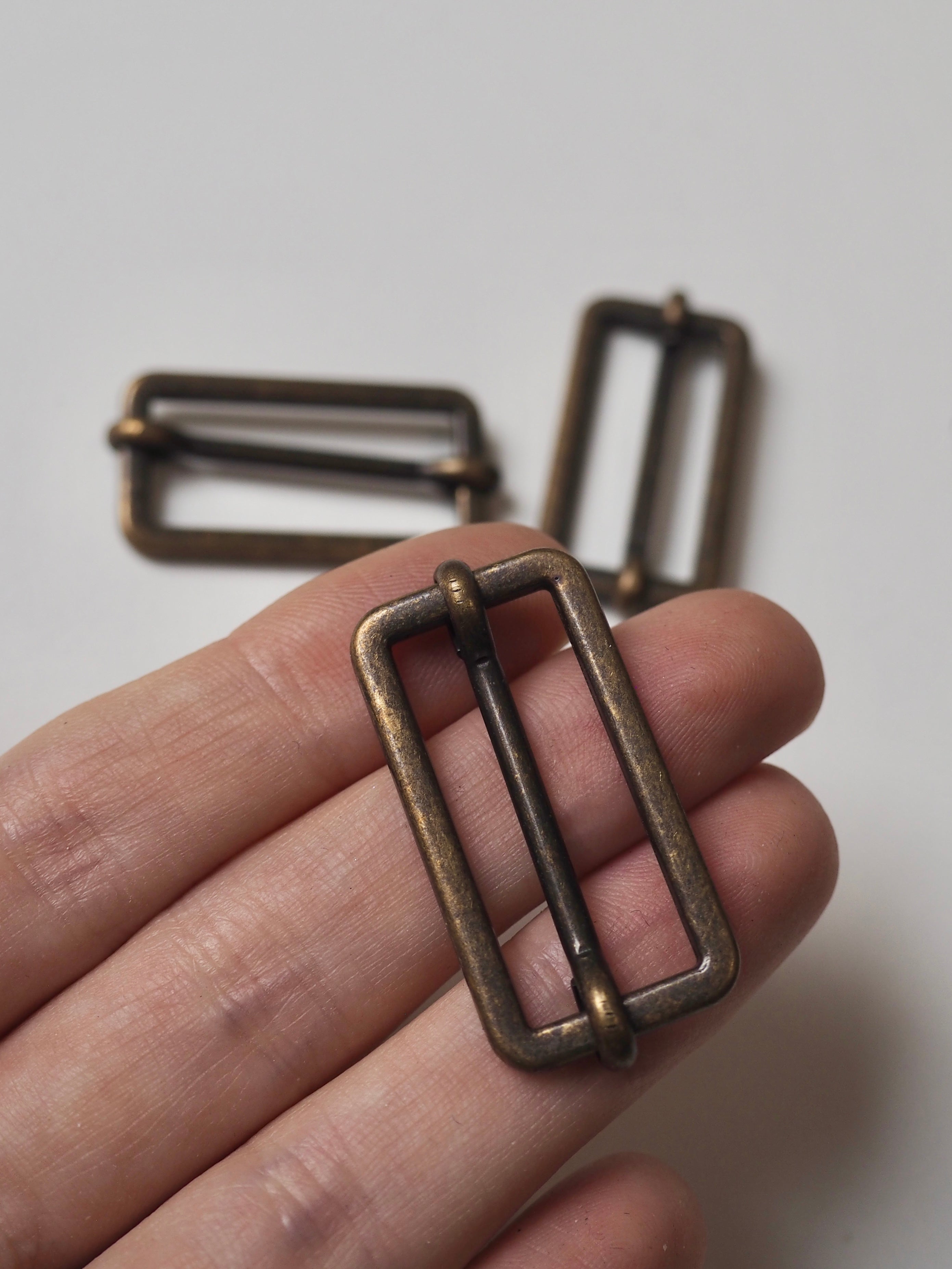 This ex-designer hardware is a slider. It's lightweight and has a sliding central bar for adjustments. They could be used for coats, dresses, jumpsuits, or accessories - they're great for adding an extra detail to your me-mades.