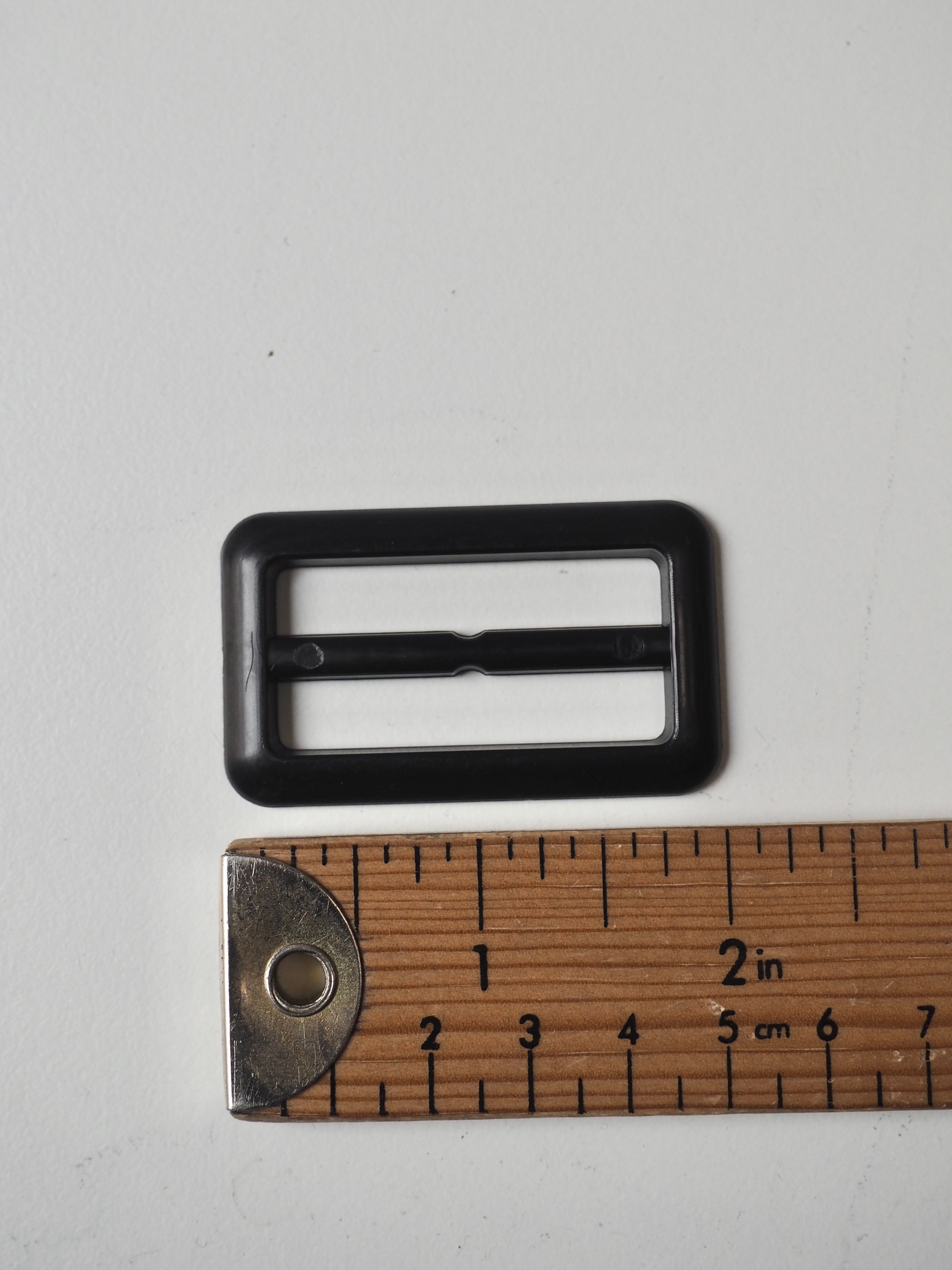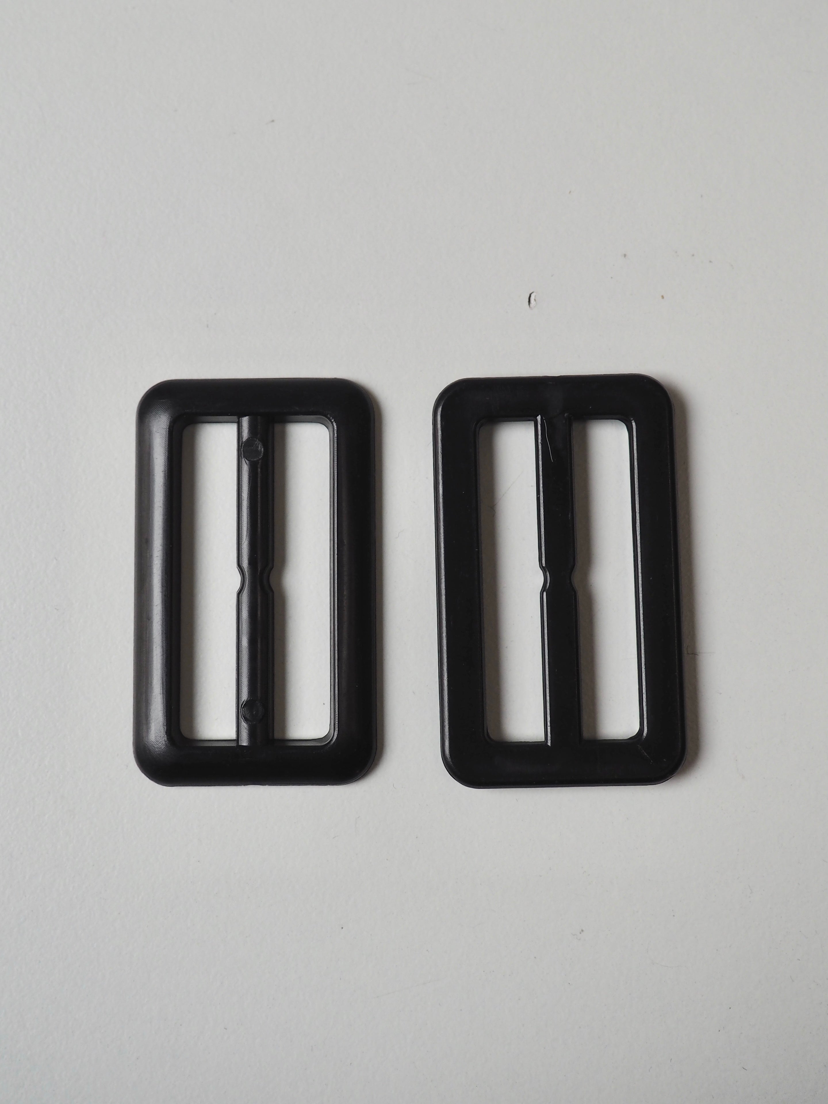 This ex-designer hardware is a slider. It's lightweight plastic and has a fixed central bar for adjustments. They could be used for coats, dresses, jumpsuits, or accessories - they're great for adding an extra detail to your me-mades.