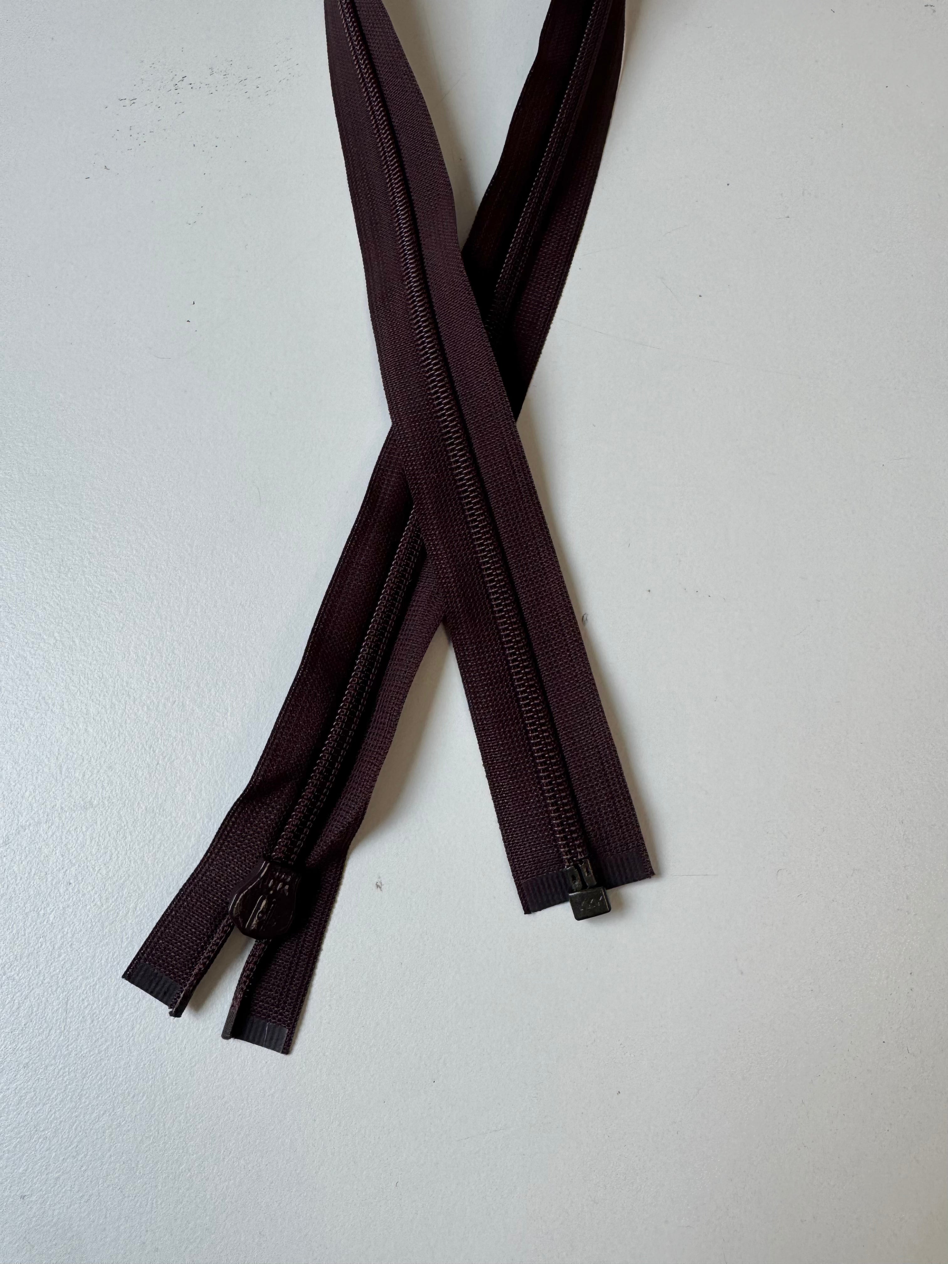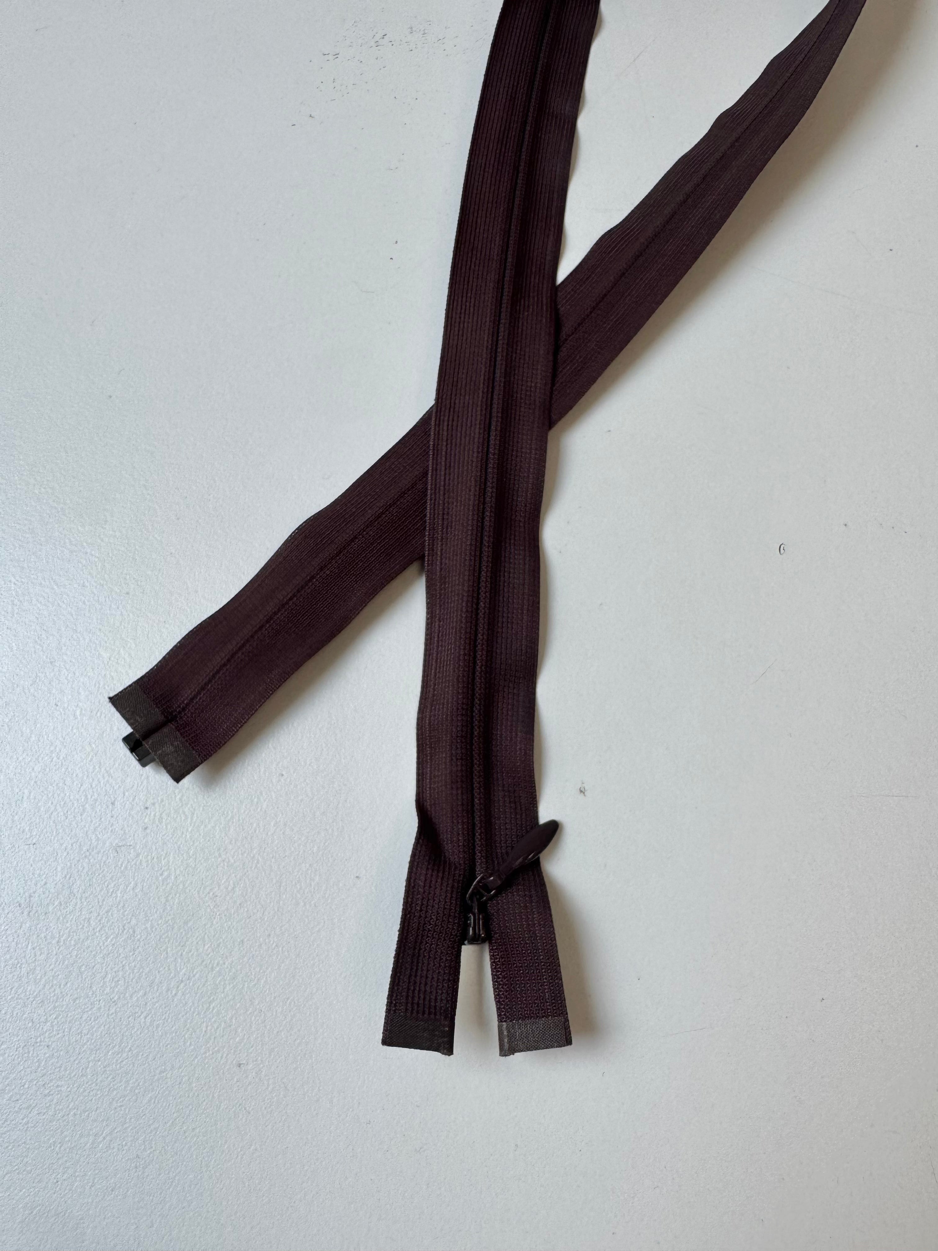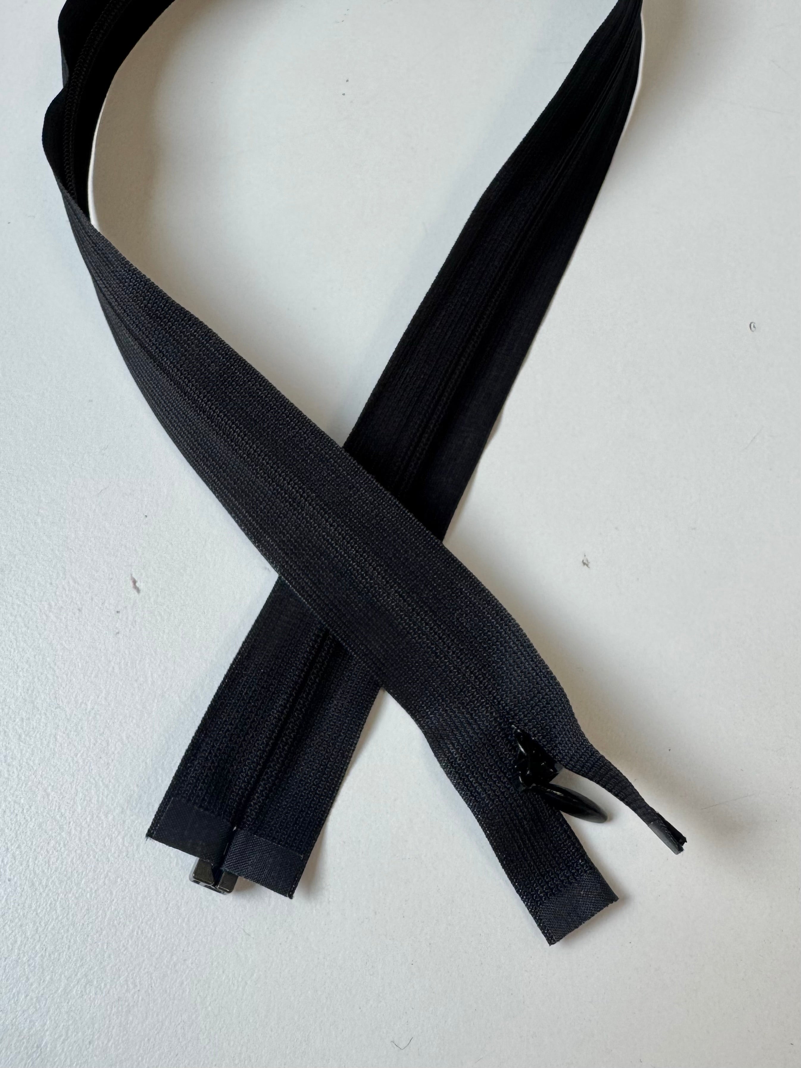 Ex-designer deadstock YKK open ended invisible zips with tonal plastic teeth and metal pull. Perfect for using as a hidden closure!