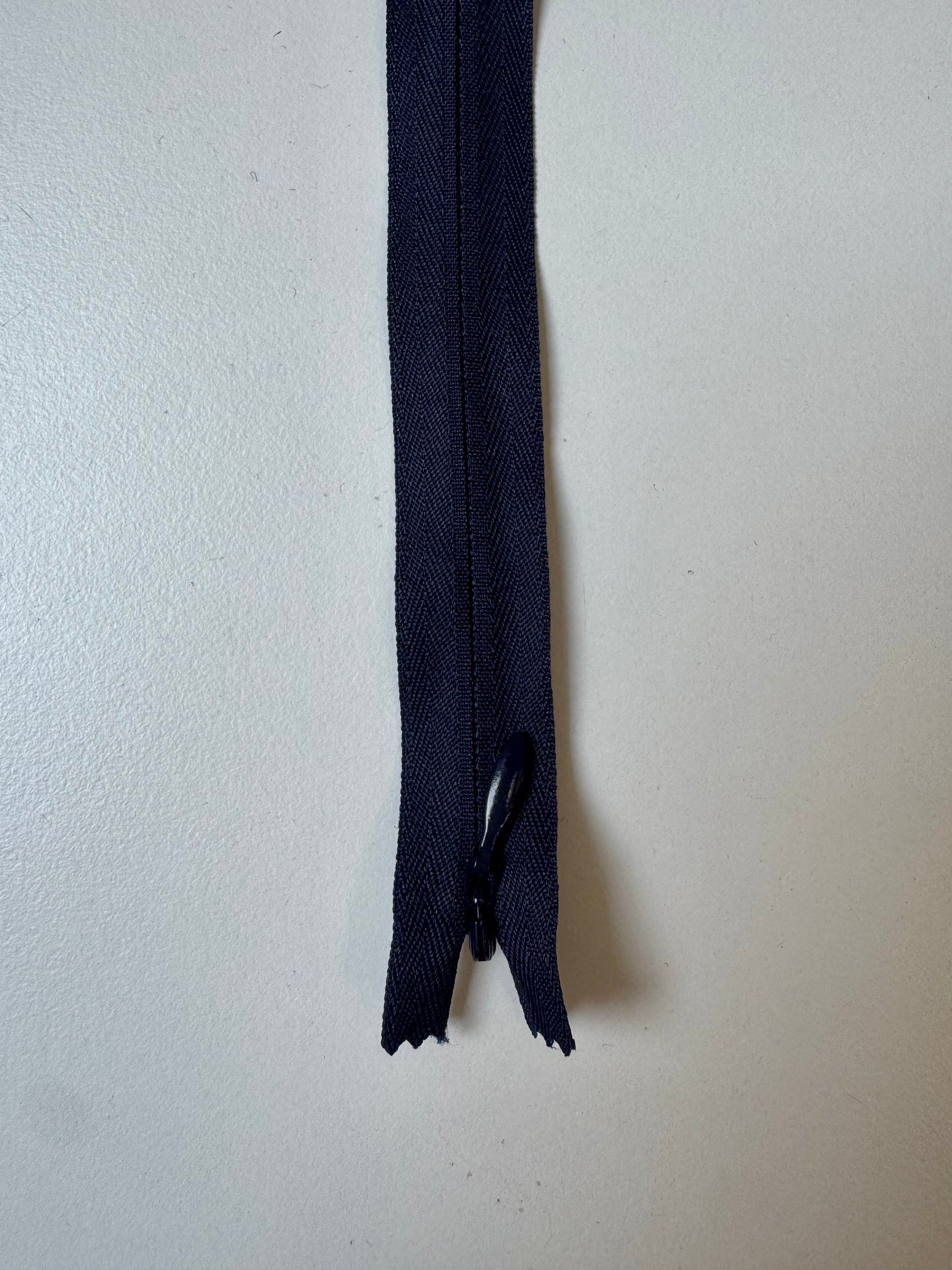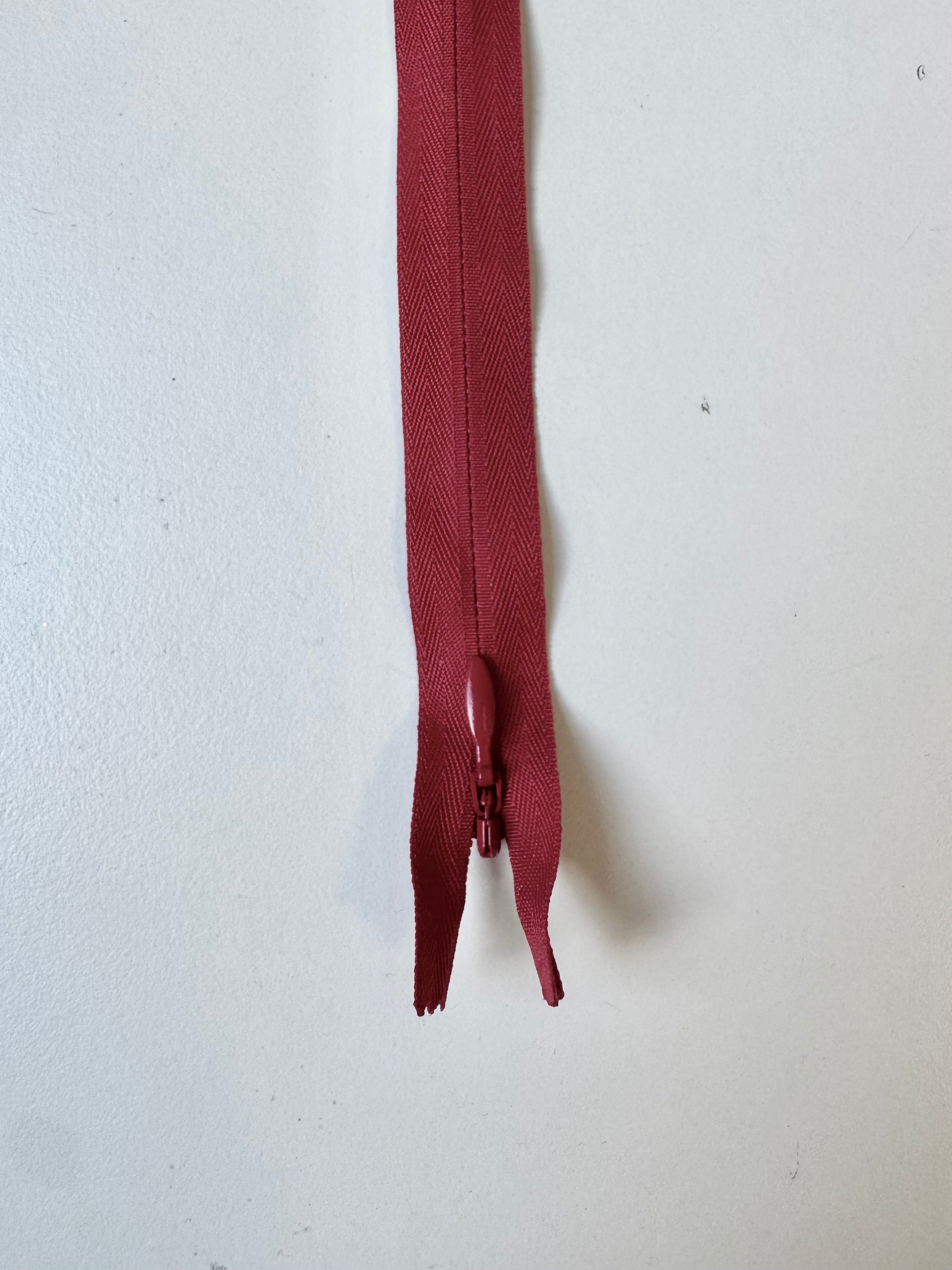 Closed end invisible zips. Available in various colours. Plastic teeth and metal zipper pull. Perfect for using as a hidden closure.