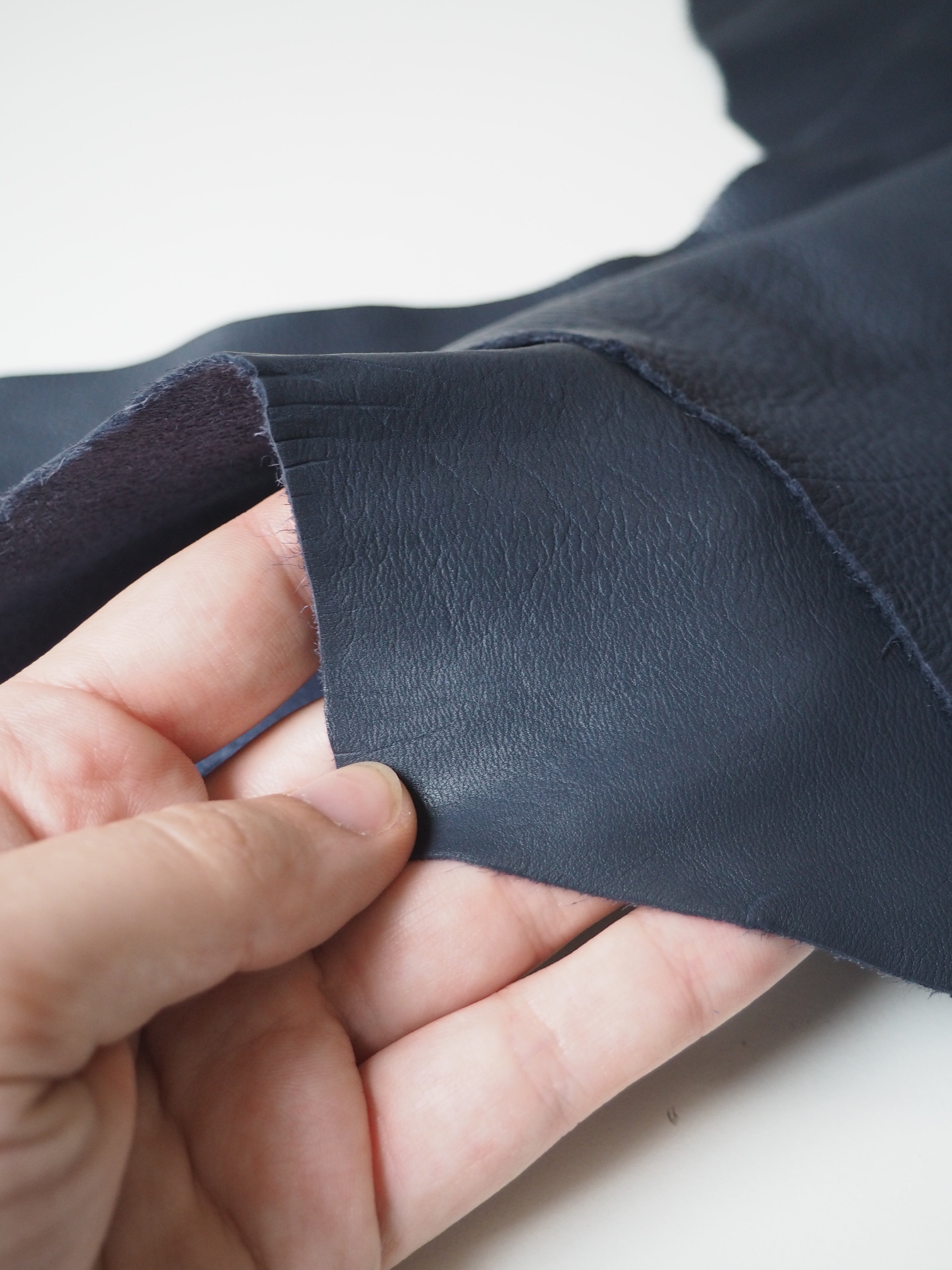 This ex-designer leather is a lambskin. It is soft and very supple. It has a smooth finish on the topside and a sueded finish on the reverse. It is such beautiful quality and has a wonderful handle. Lightweight with a lovely drape, perfect for a variety of projects! Great for shoes/boots and accessories, or even a bag!