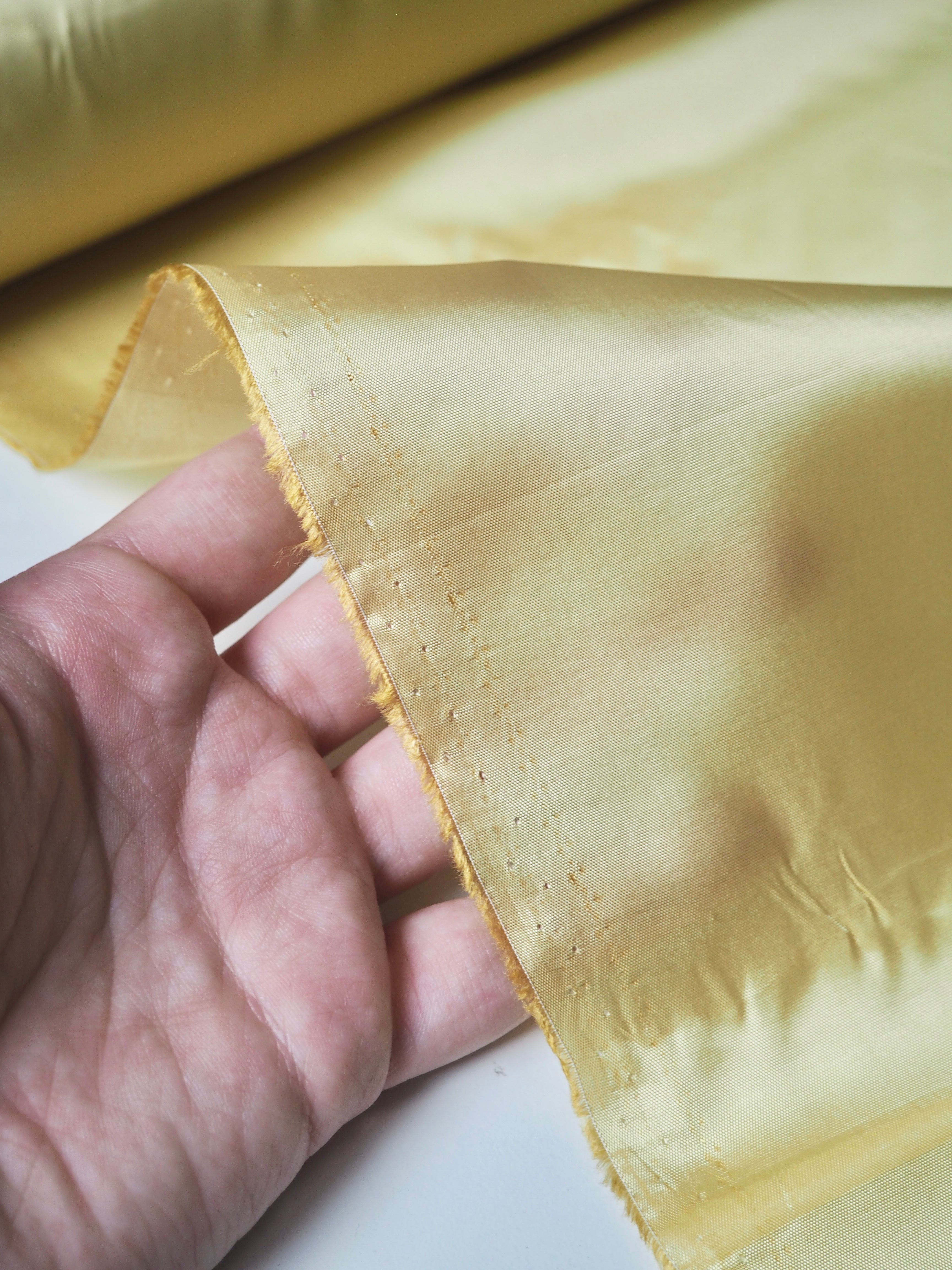 This ex-designer fabric is a lining. It has a plain weave with a gentle drape. Lightweight with beautiful movement and light sheen finish. Has a nice light structure. Mostly opaque. Ideal for lining any garment!