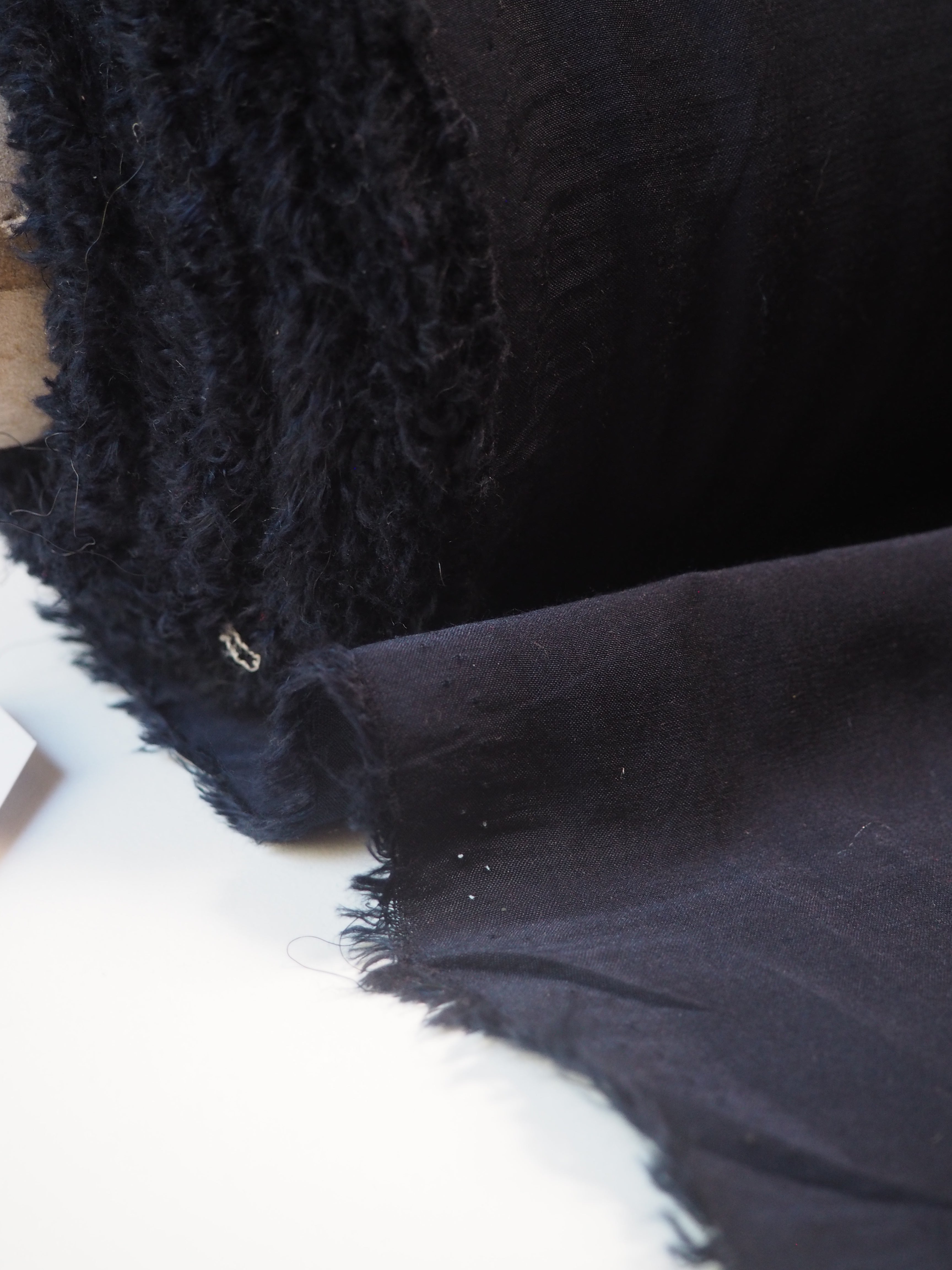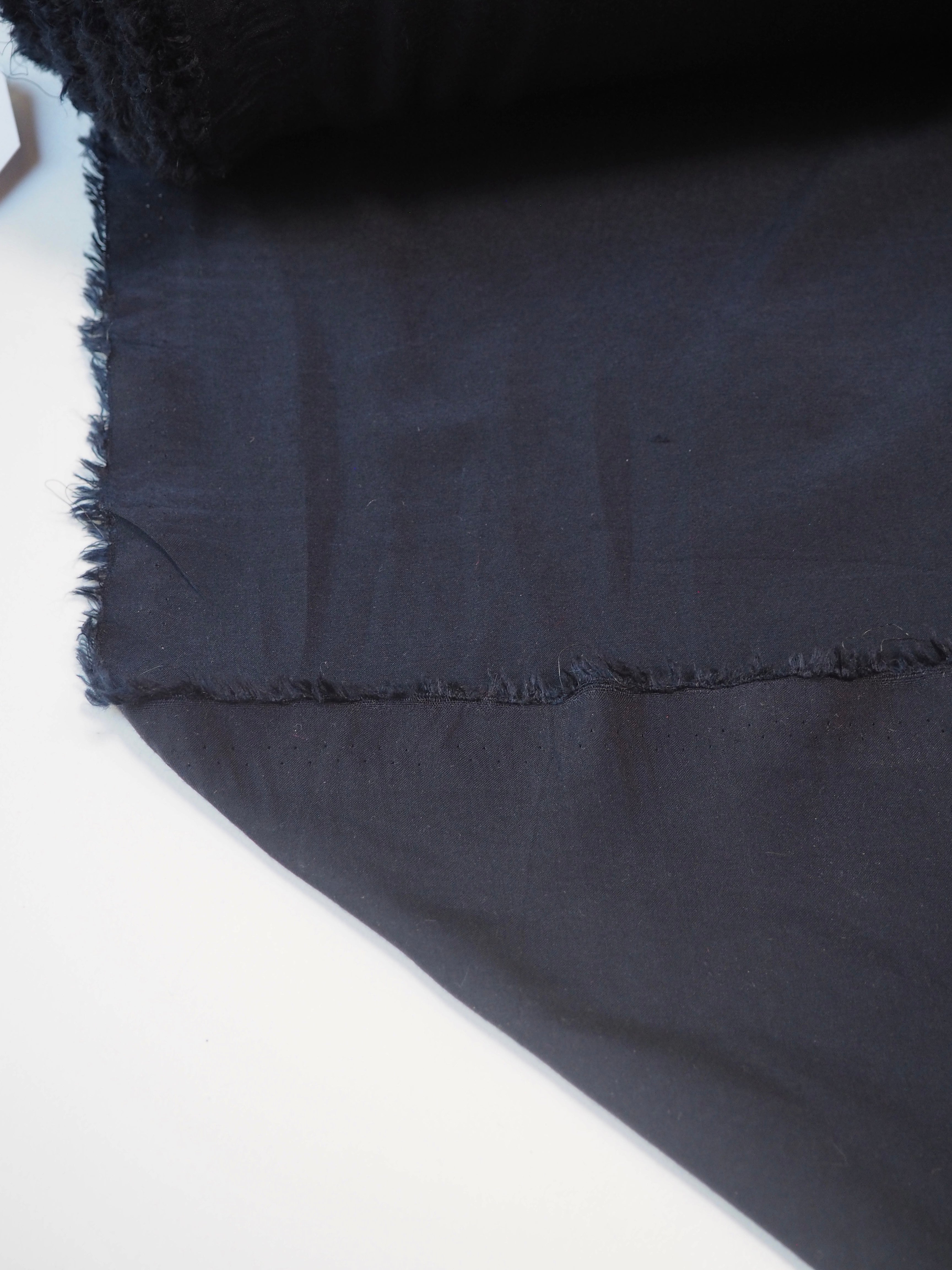 This ex-designer fabric is a viscose lining. It's a classic navy colour that is opaque. Lightweight, soft and super drapey. Beautiful handle typical of softer viscose, with a cotton-like finish. Could work for a summer top, and great as a dress or skirt lining!