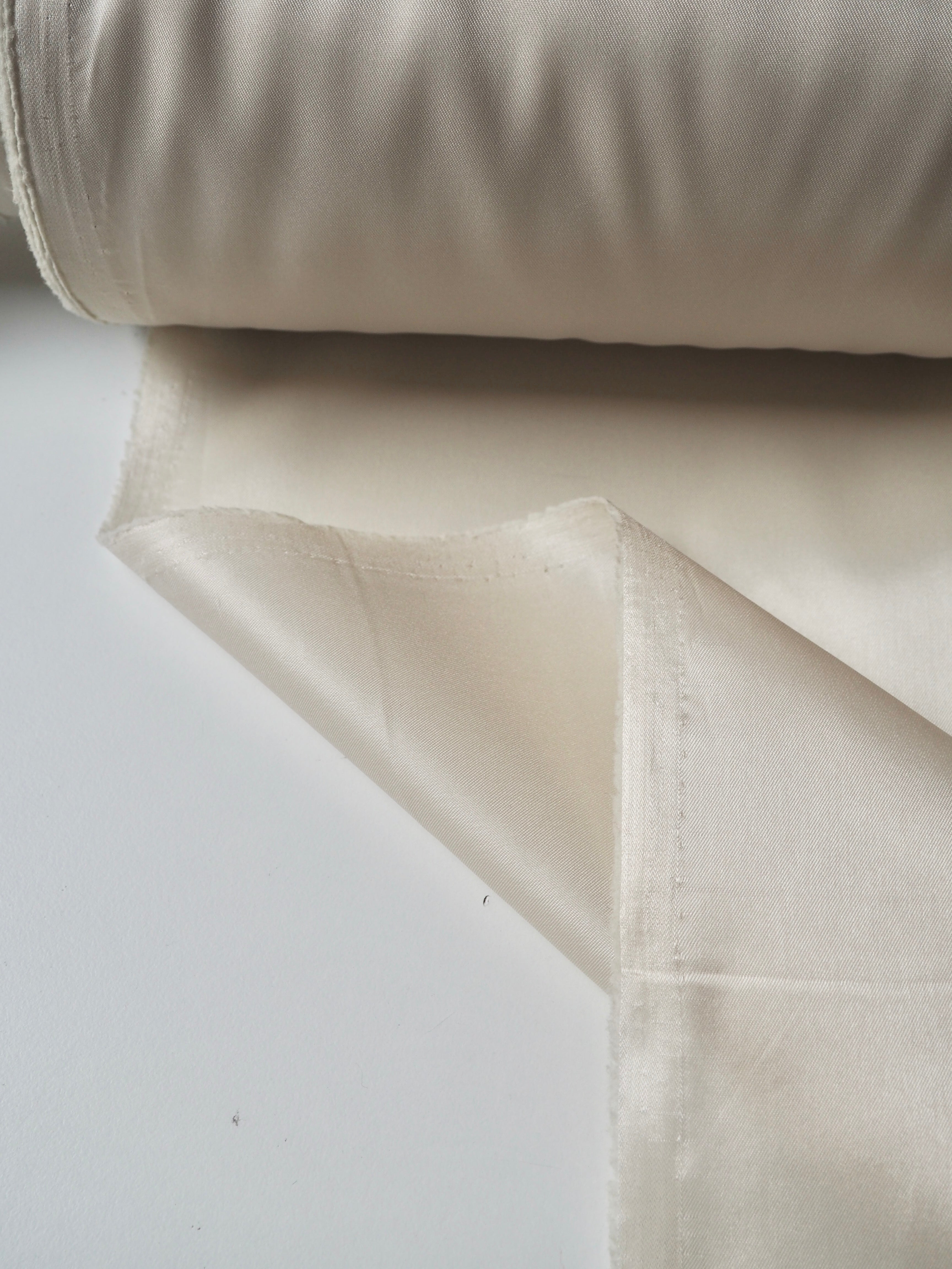This ex-designer fabric is a stretch lining. It has a twill weave in a soft and slinky acetate fibre. Has a gentle 10% stretch width-ways. Lightweight with a gentle drape and nice satin finish. Has a slight structure to it as well. Slightly sheer. Ideal for lining any garment, especially a suit jacket or coat!