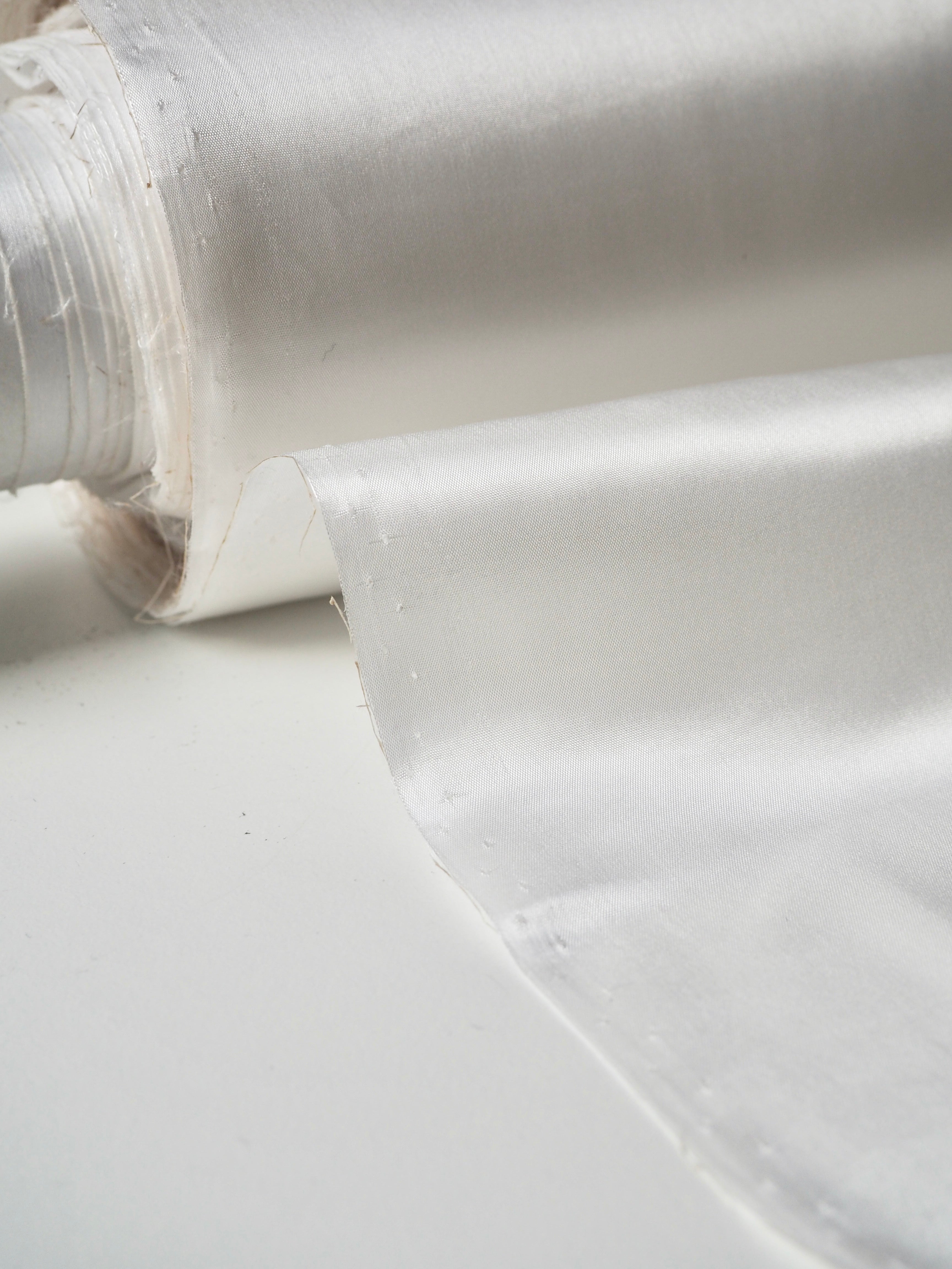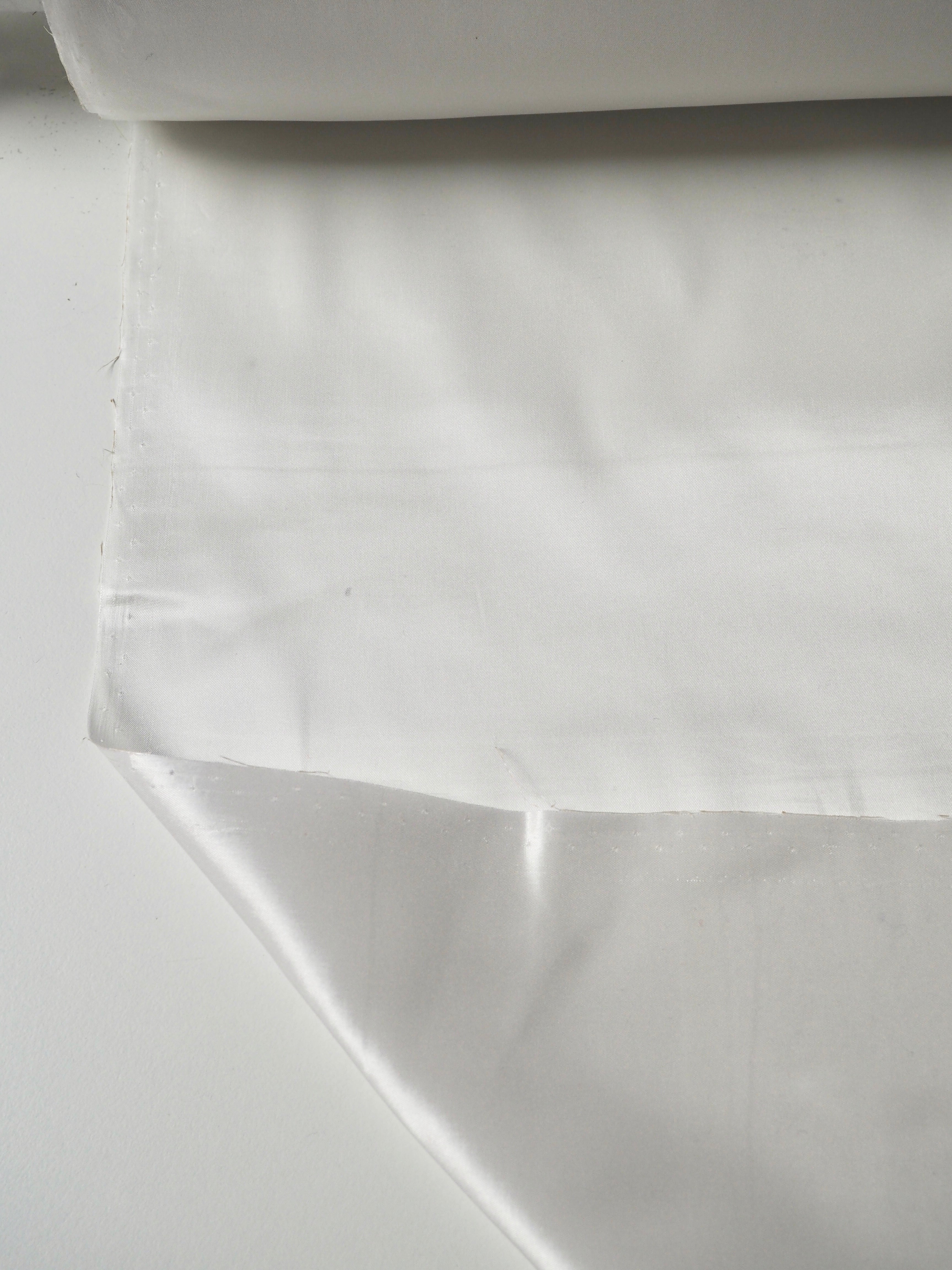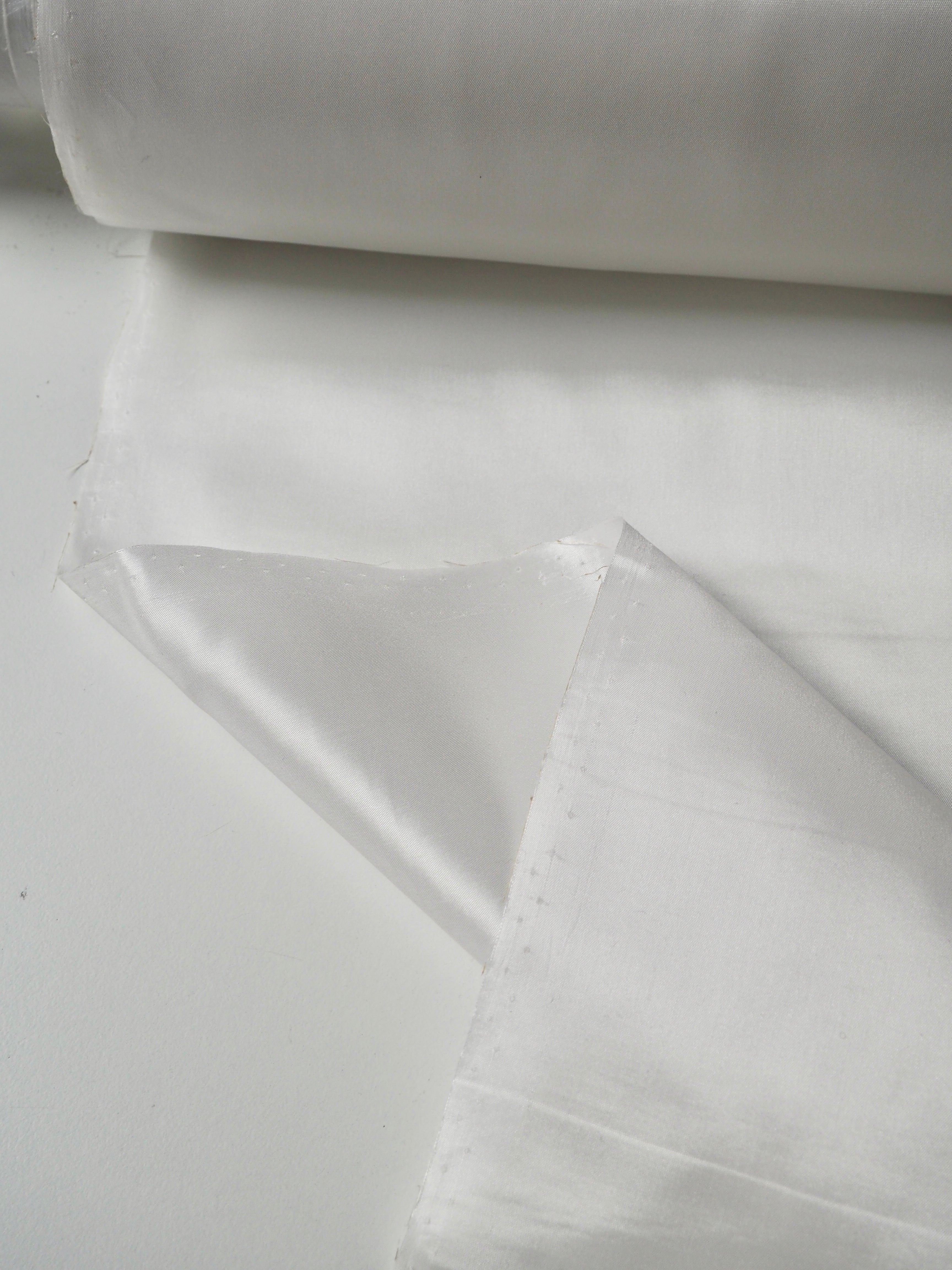 This ex-designer fabric is a lining. It has a plain weave in a soft acetate fibre. Has about 10% stretch, width-ways. Lightweight with a gentle structure and light satin finish. holds shape quite well, and is semi-opaque. Ideal for lining any garment, especially for bridal!