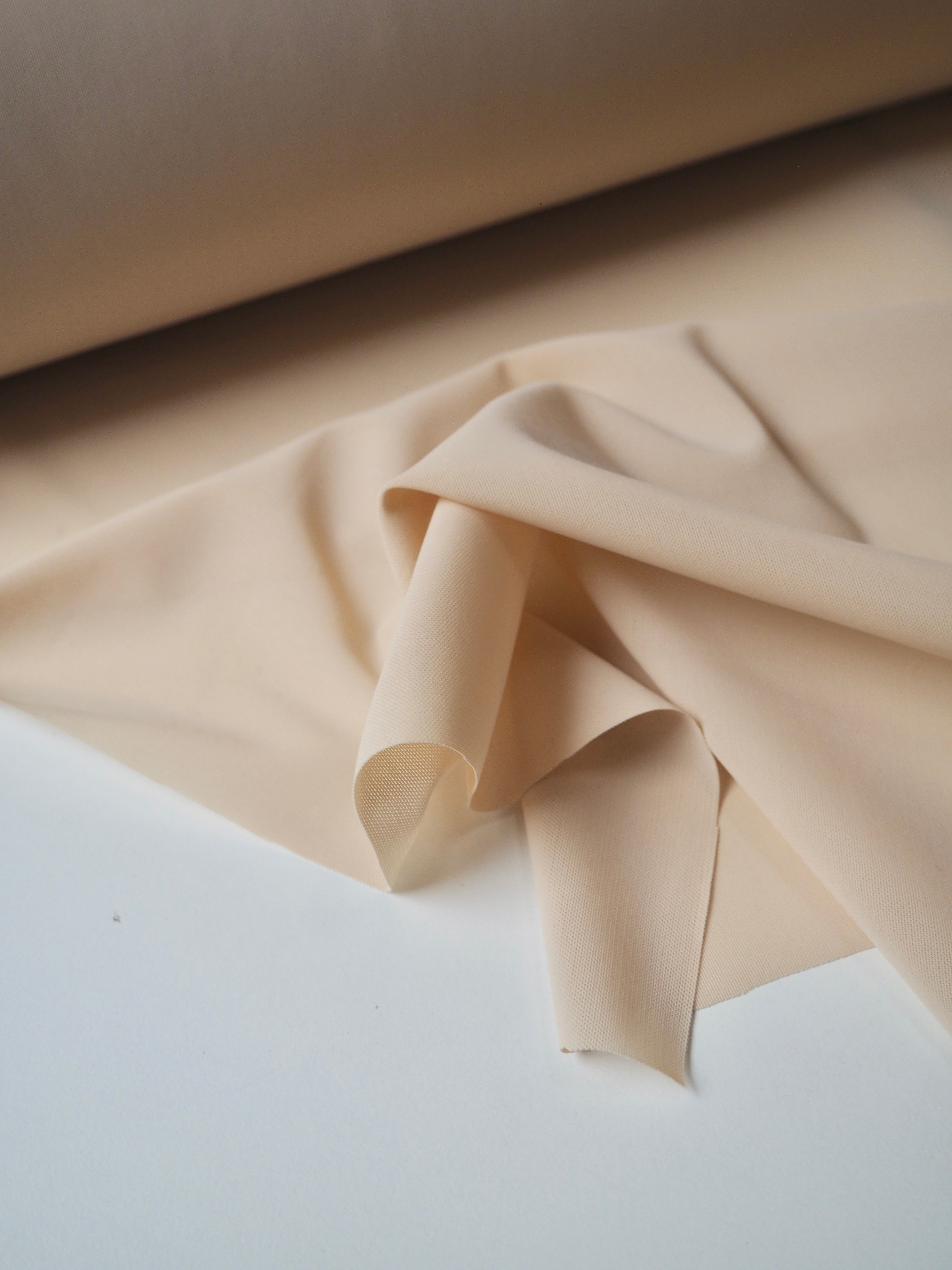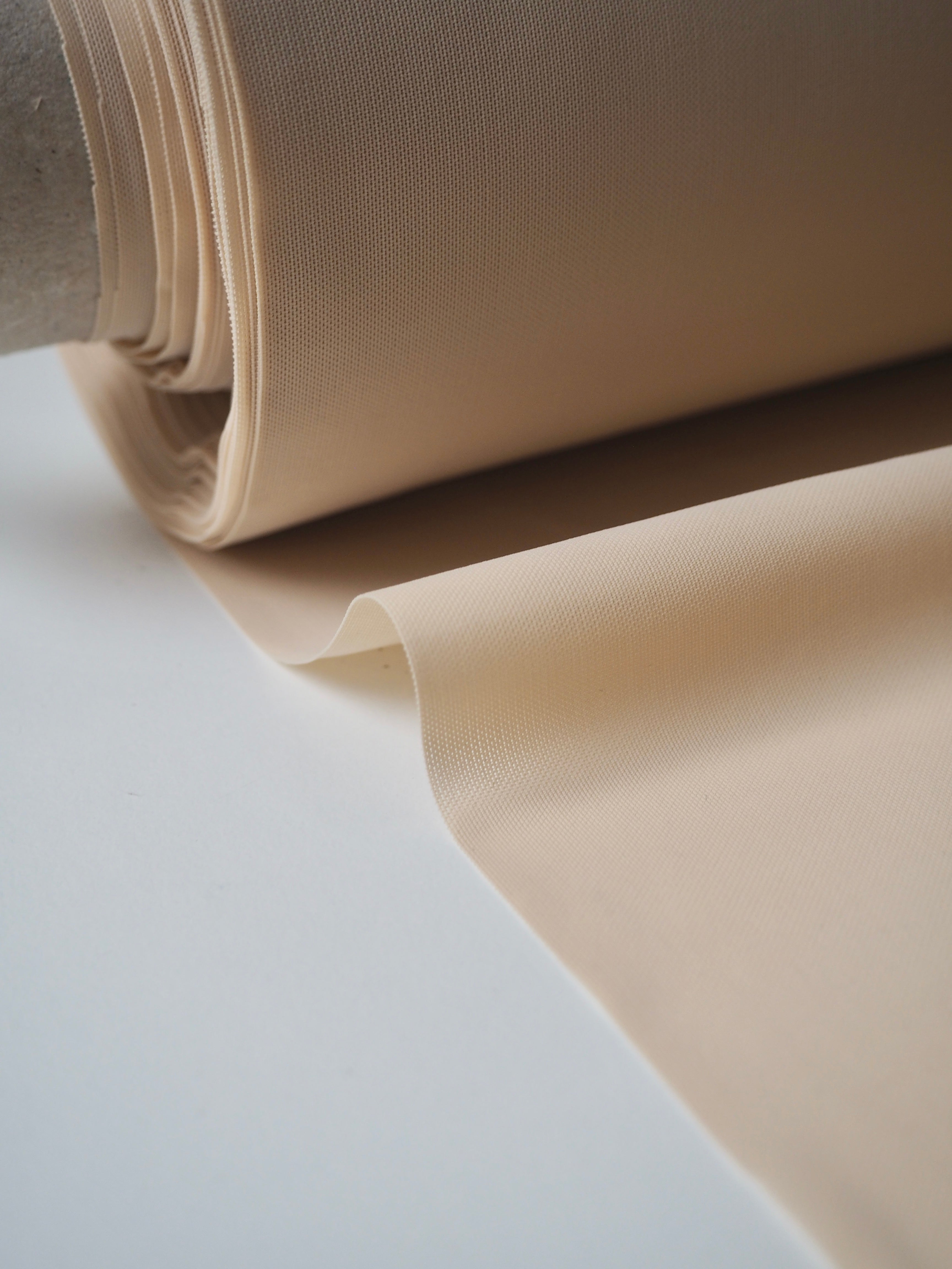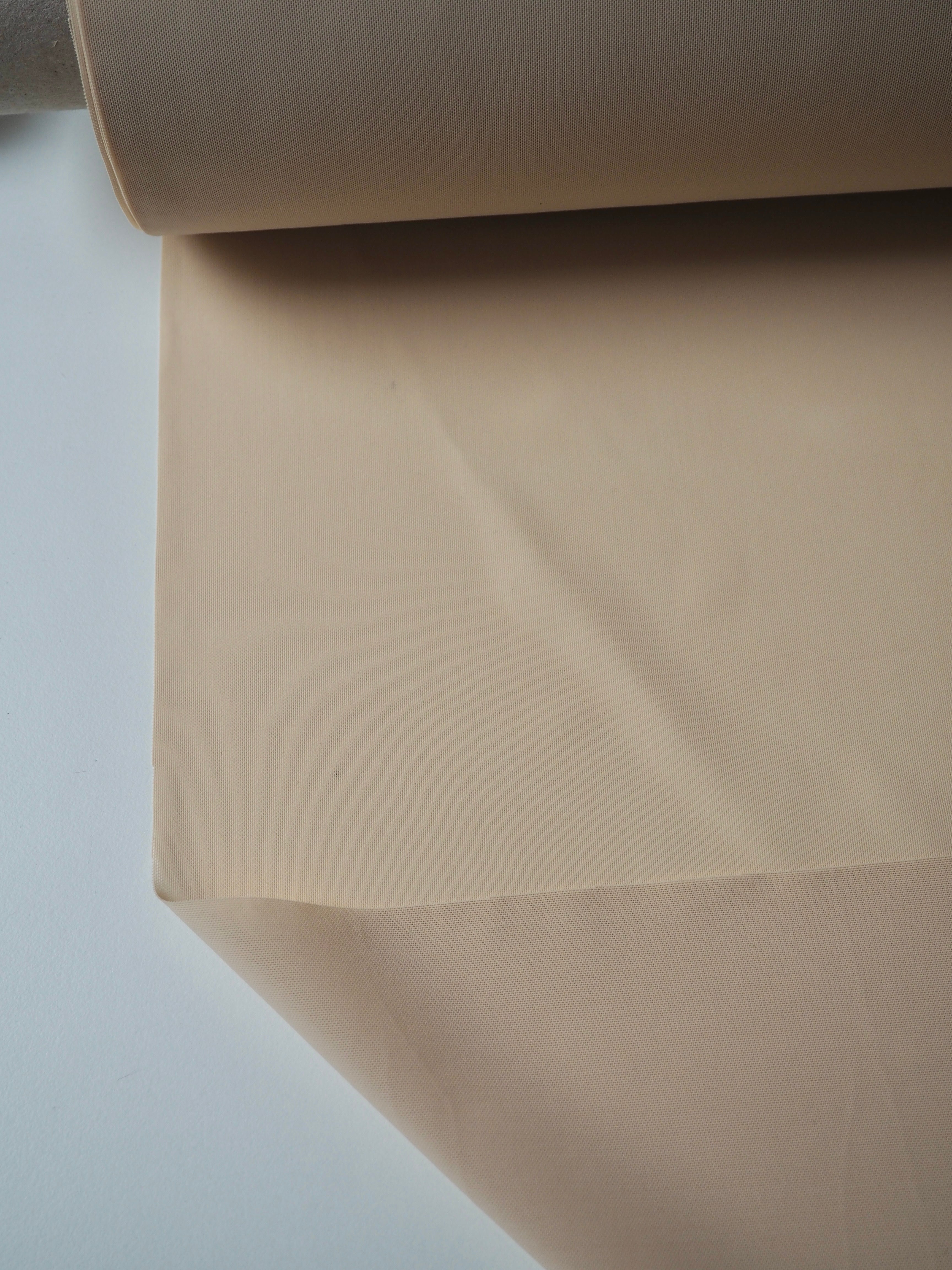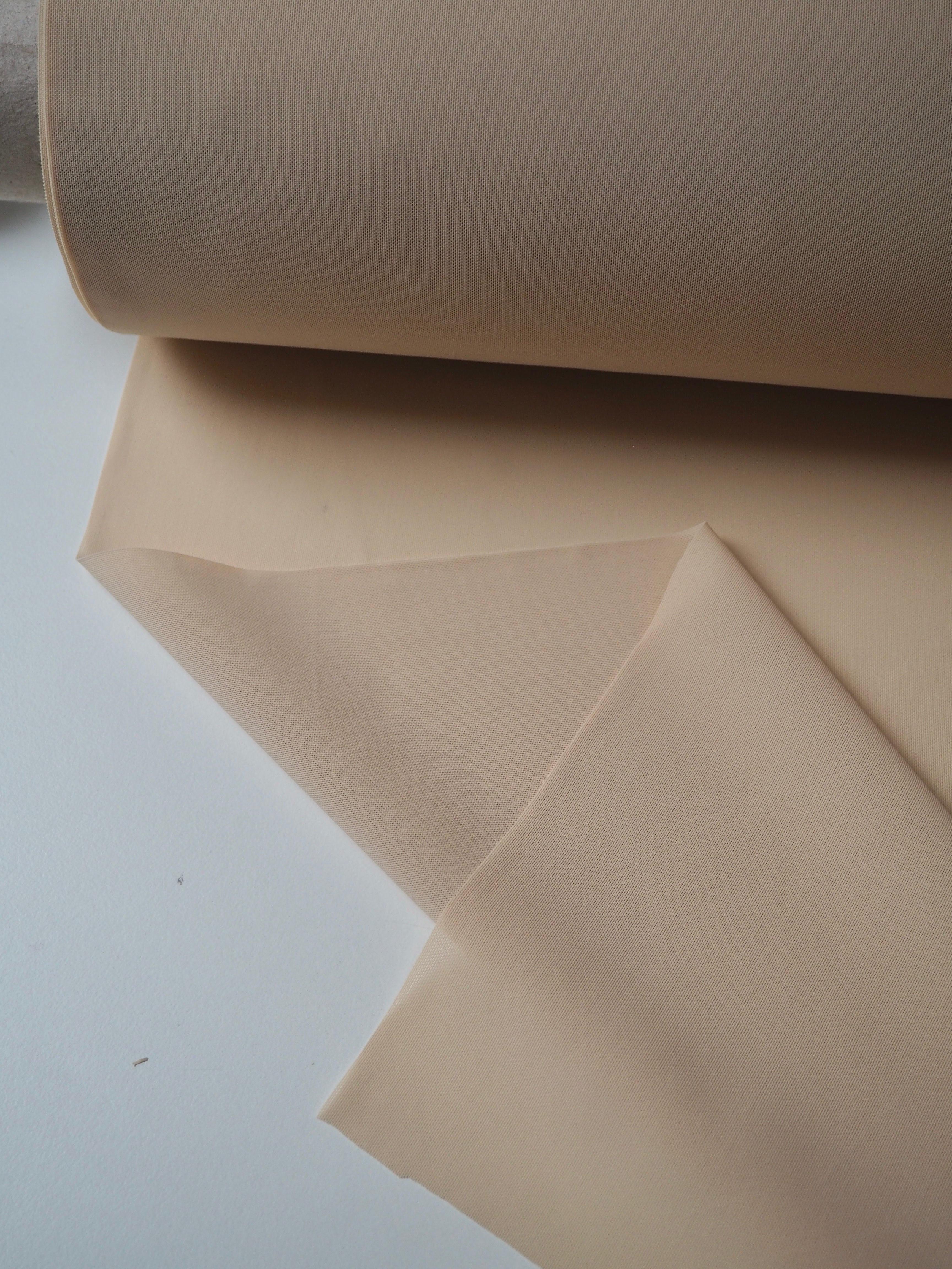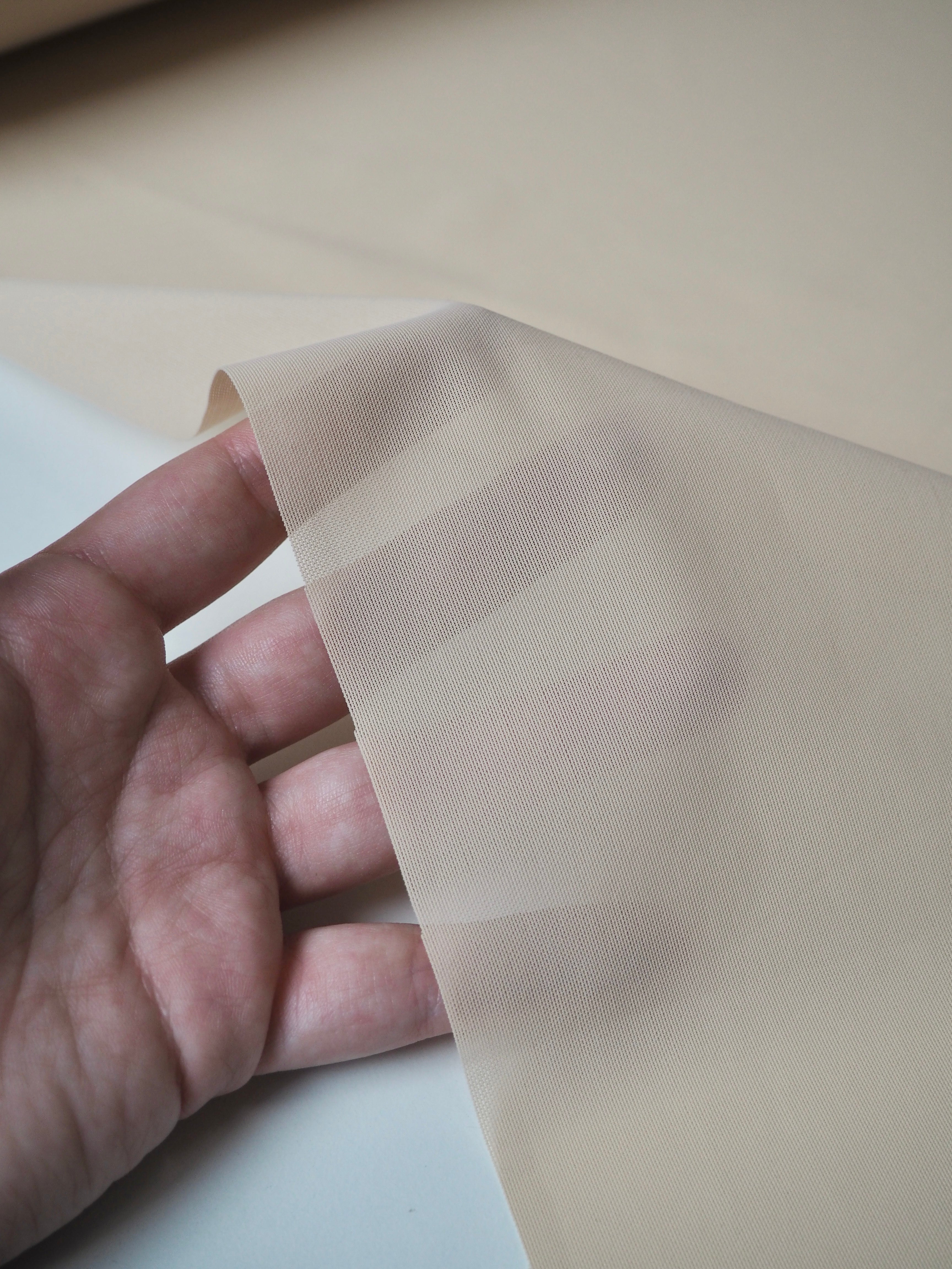 This ex-designer fabric is a stretch powernet. Powernet is a high-stretch fuller coverage mesh, with excellent recovery and great breathability. It's common for performance wear and undergarments. It's lightweight and has great support with its dense structure, but still slight sheerness when stretched. It's soft and comfy! Pairs so well with lingerie, swim, and activewear! Perfect for our lingerie patterns, and we even have bra finding kits!