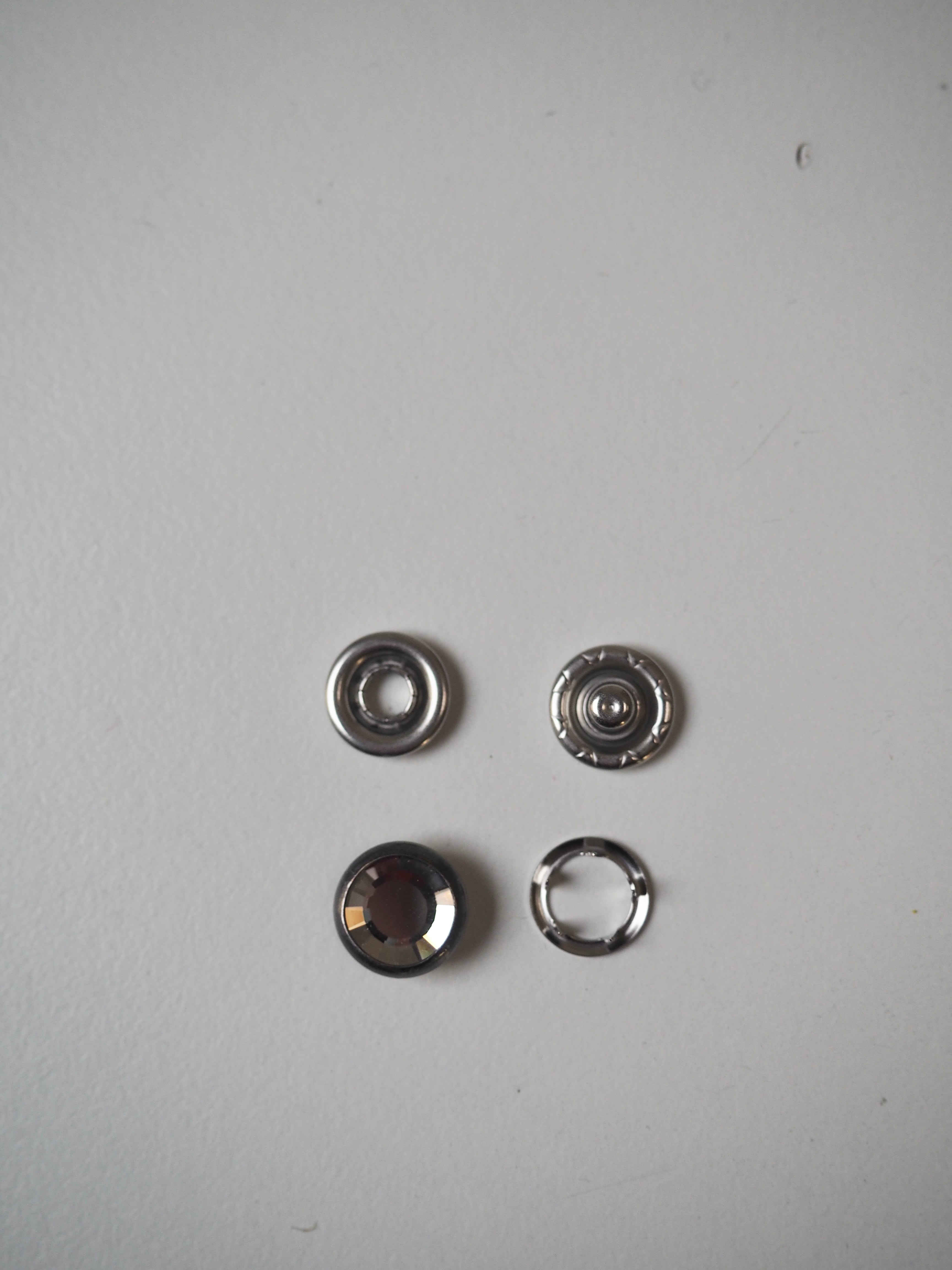 Really unusual, these are the most luxurious press studs we have ever seen! Brilliant Swarovski crystals set in a gunmetal casing for the front of the studs, with the rest of the components being a plain gunmetal finish. The crystals really sparkle when they catch the light and would elevate any project! All our trim is deadstock left over from when a designer has finished sampling their collection.