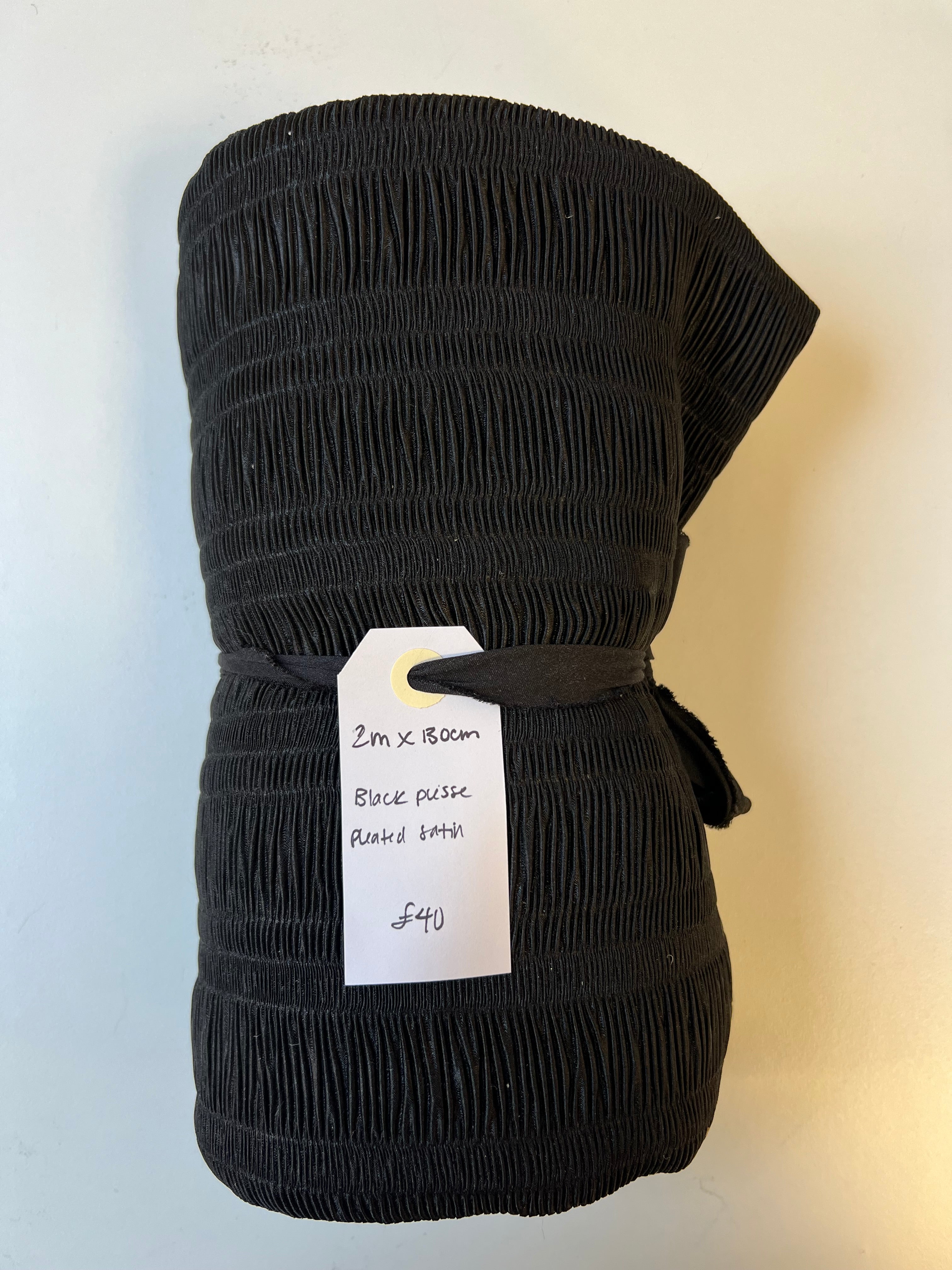 Black Plisse Pleated Satin Remnant