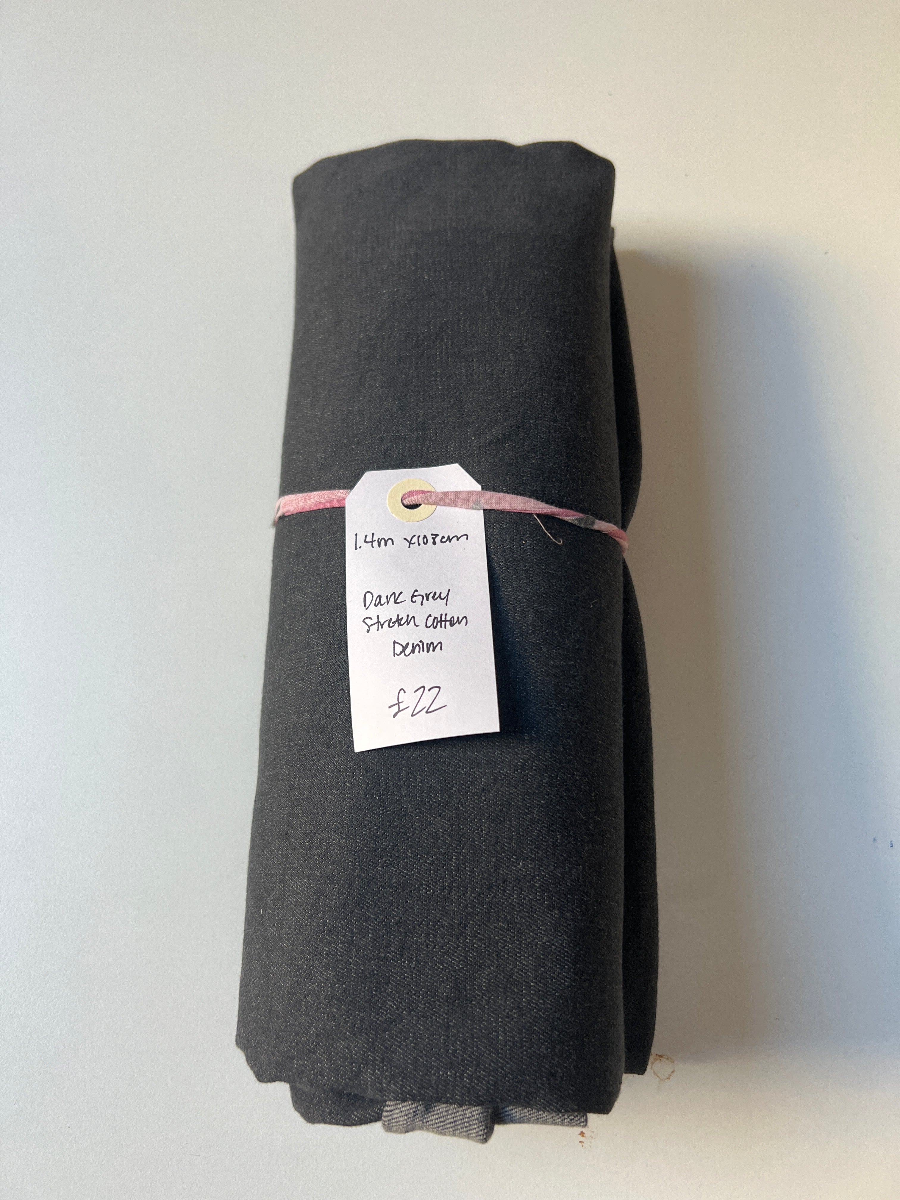 Dark Grey Stretch Cotton Denim Remnant