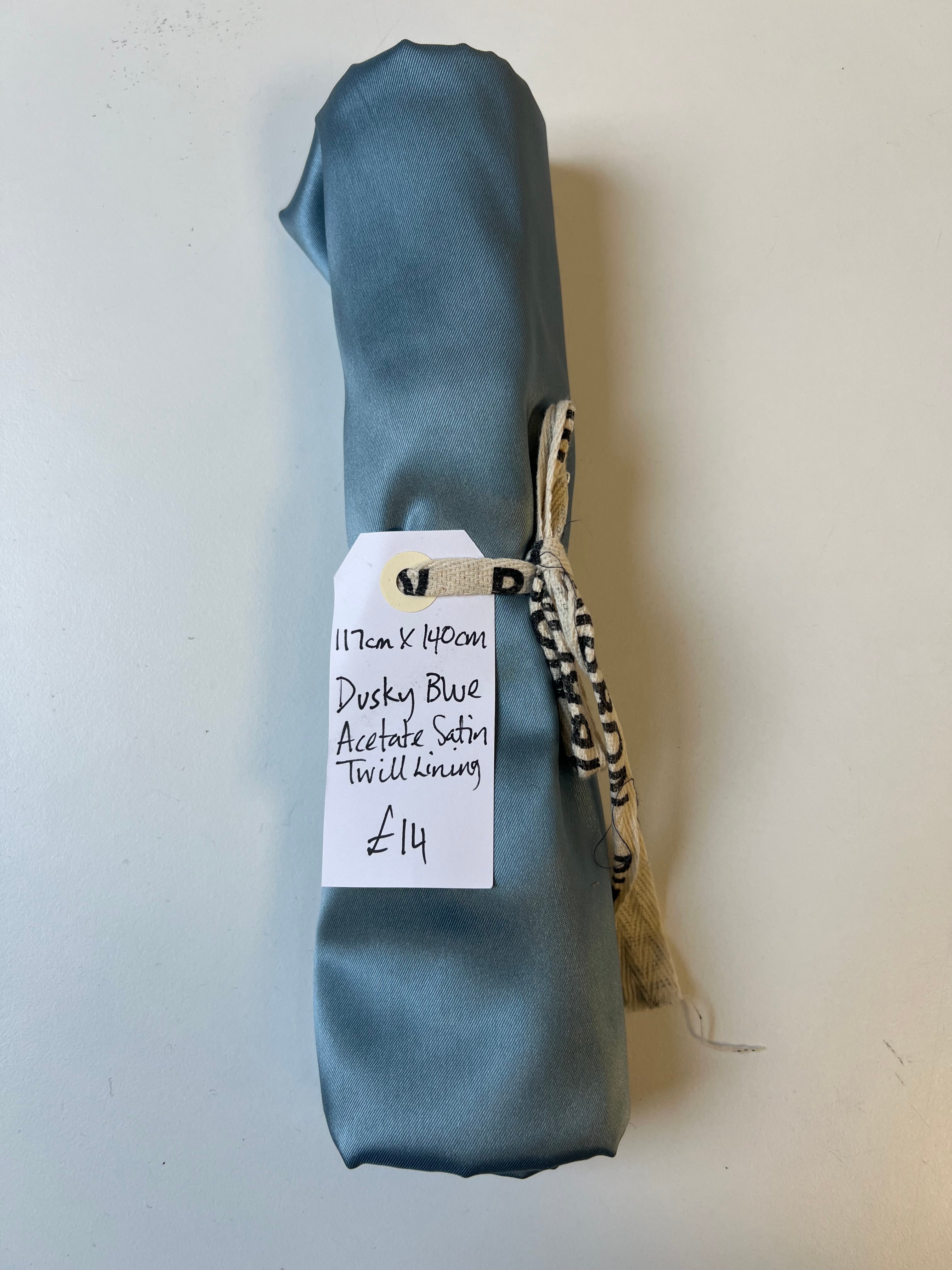 Dusky Blue Acetate Satin Twill Lining Remnant
