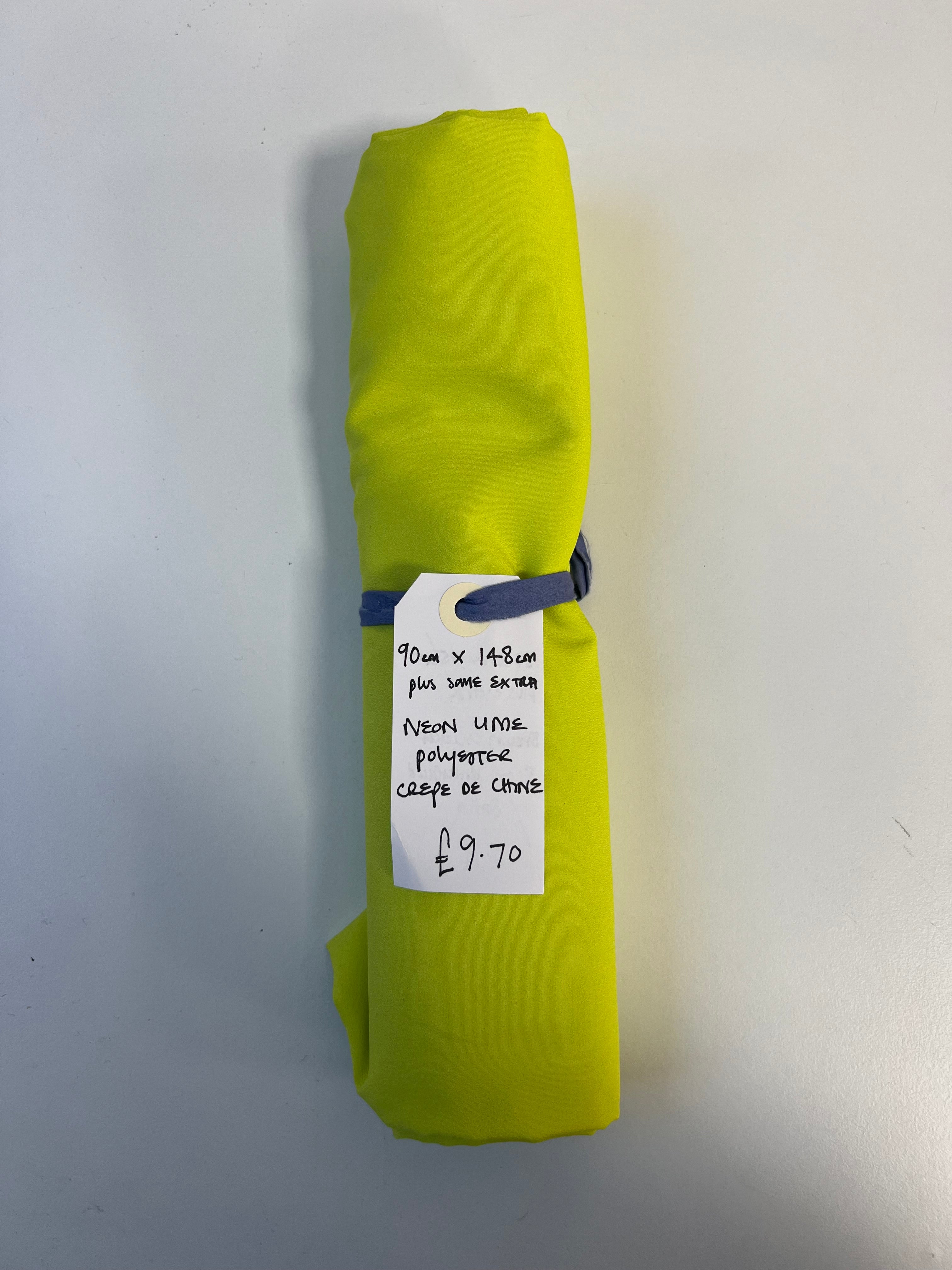 Neon Lime Polyester Crepe De Chine Remnant