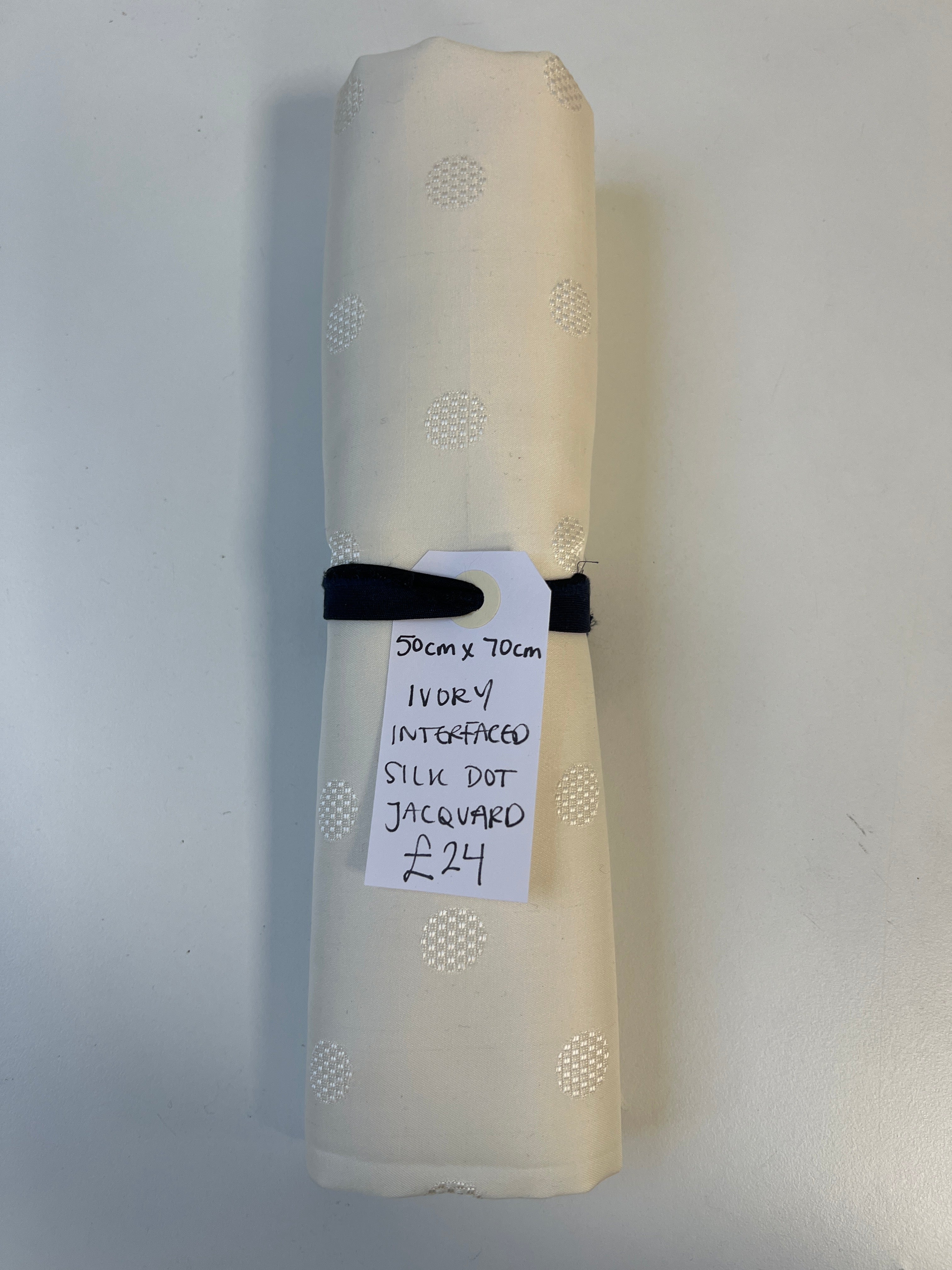 Ivory Interfaced Silk Dot Jacquard Remnant