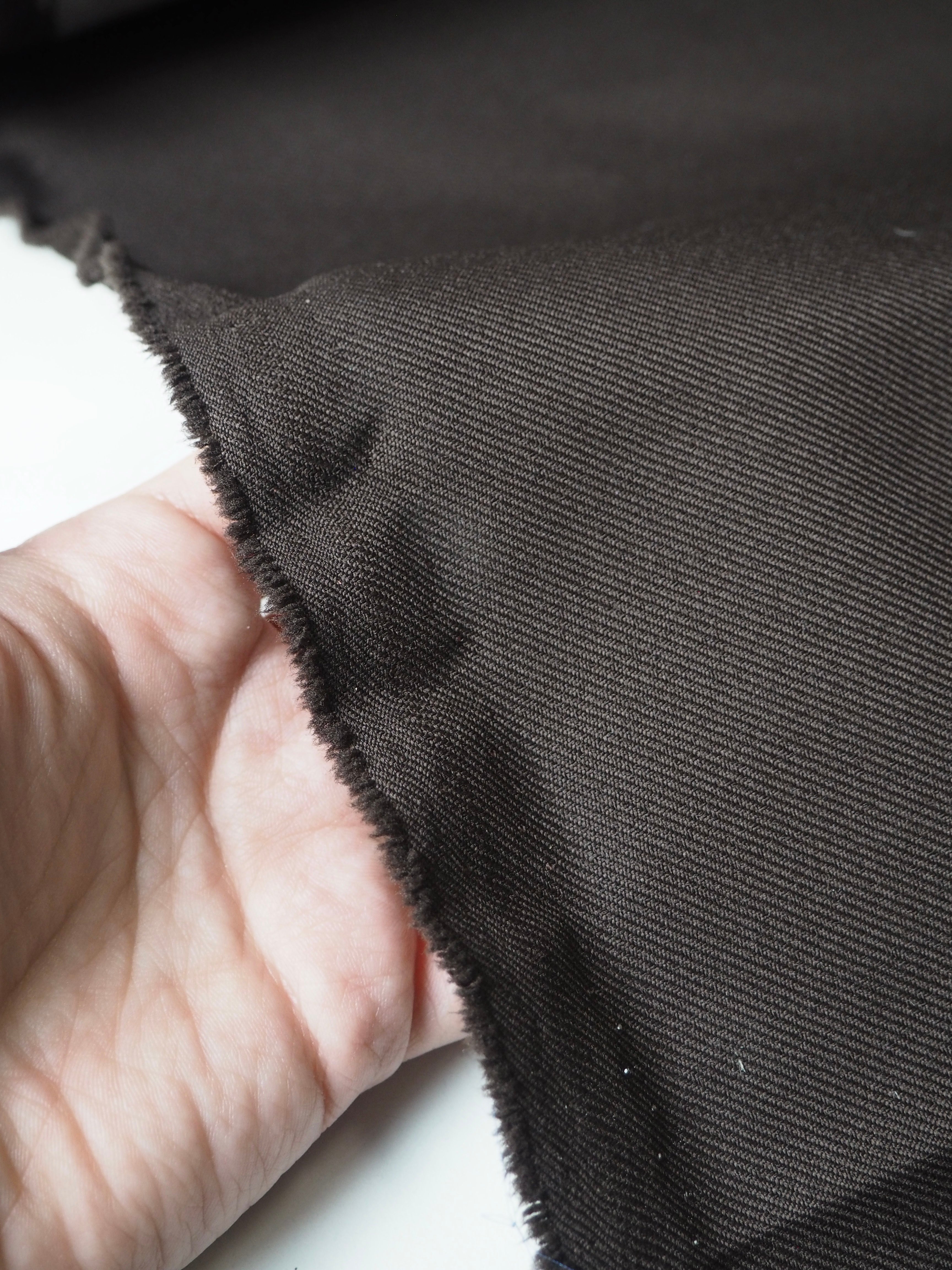 This ex-designer fabric is a twill. It's brown with a coated backing. Lightweight with a typical twill weave and sturdy handle. It's a very structured cloth made for furnishing projects, but can be used as you like!