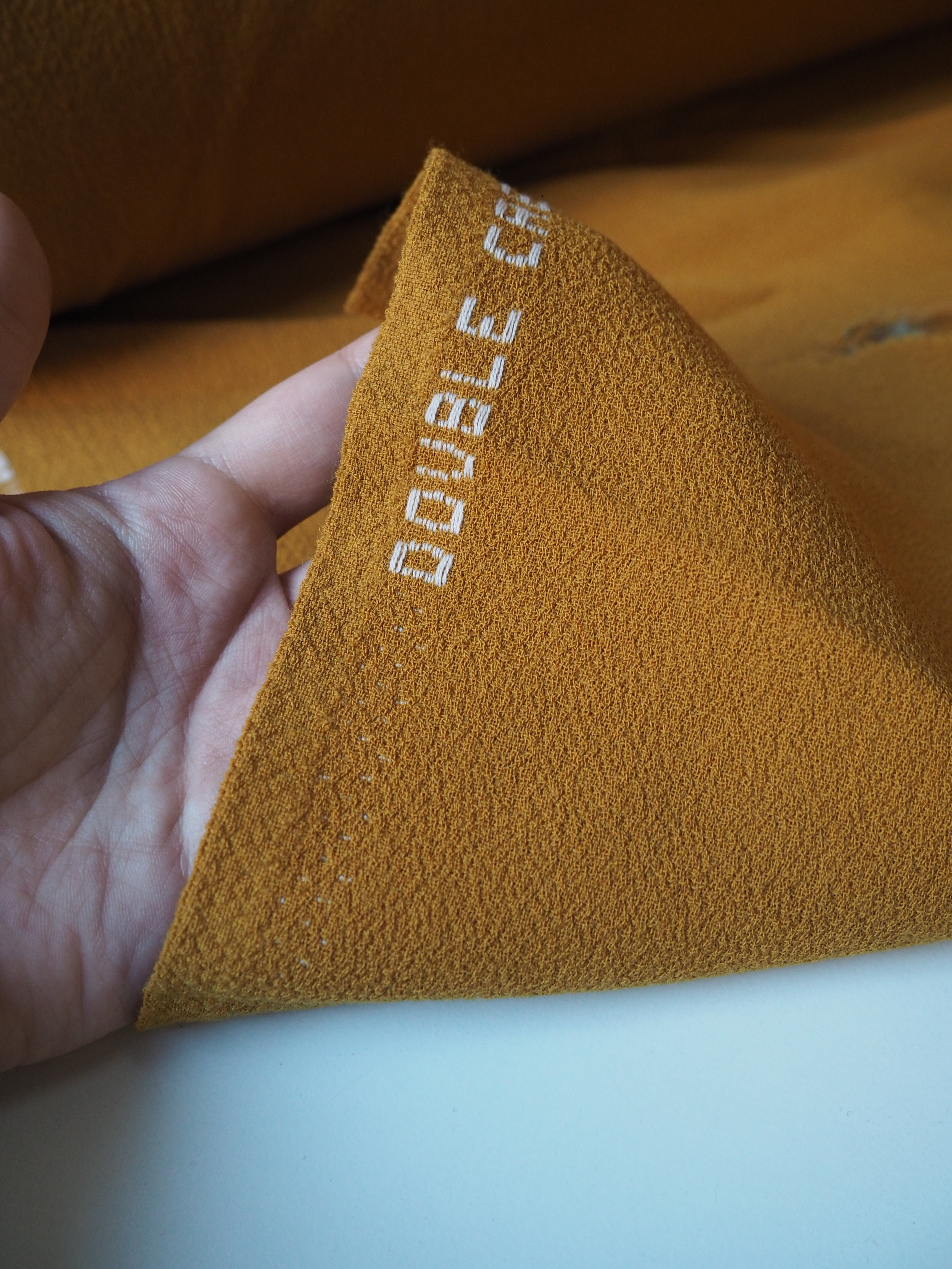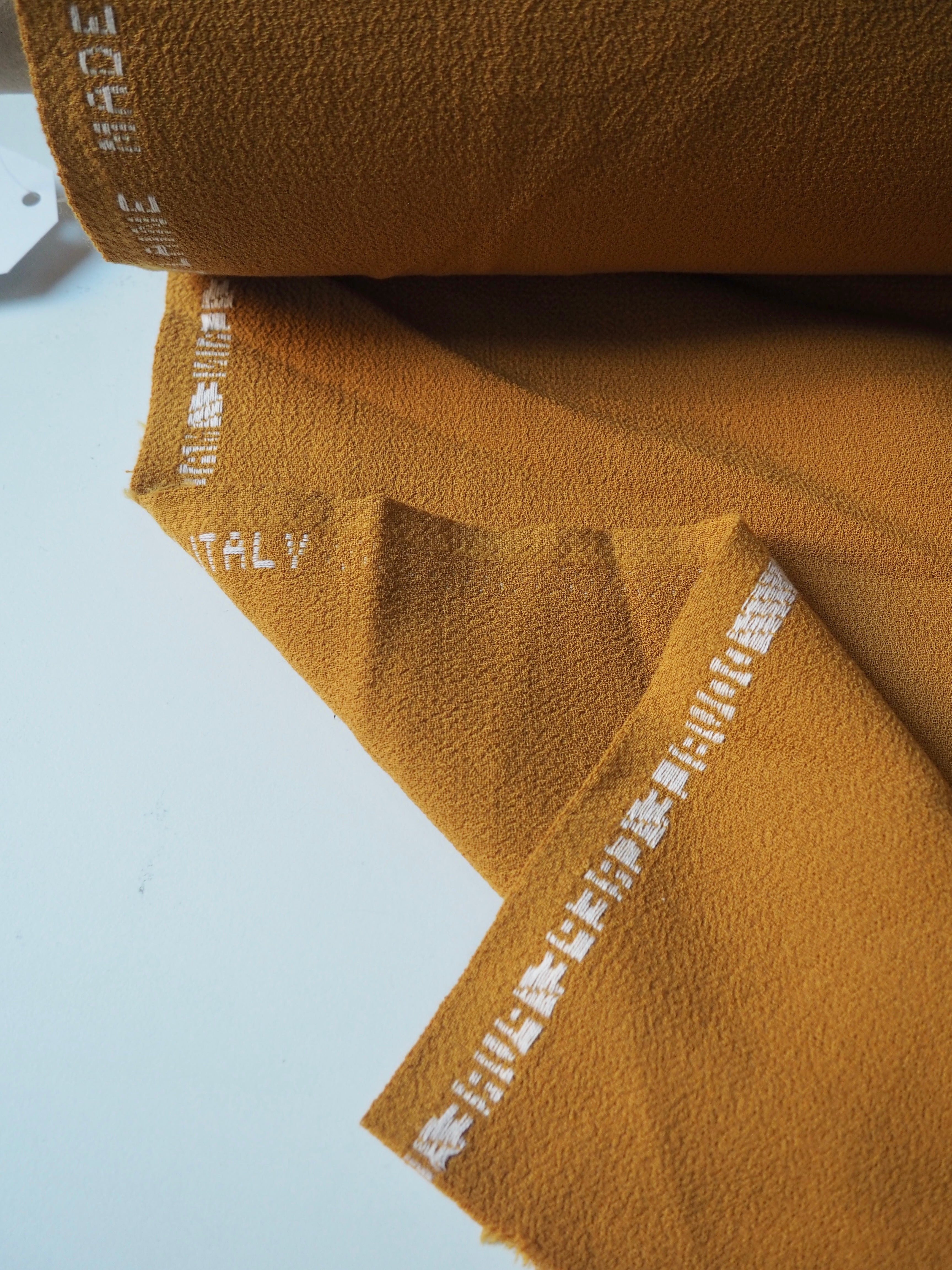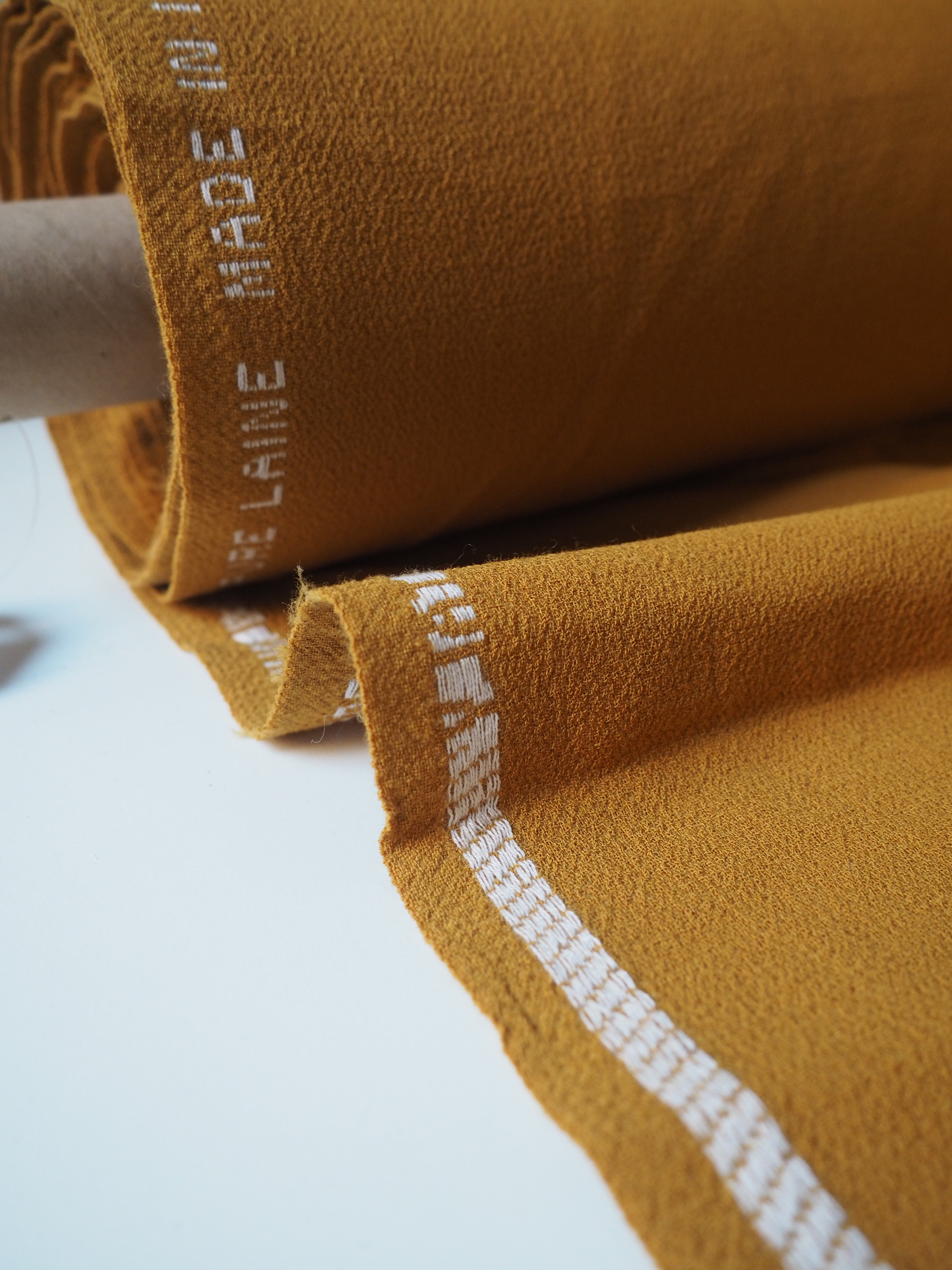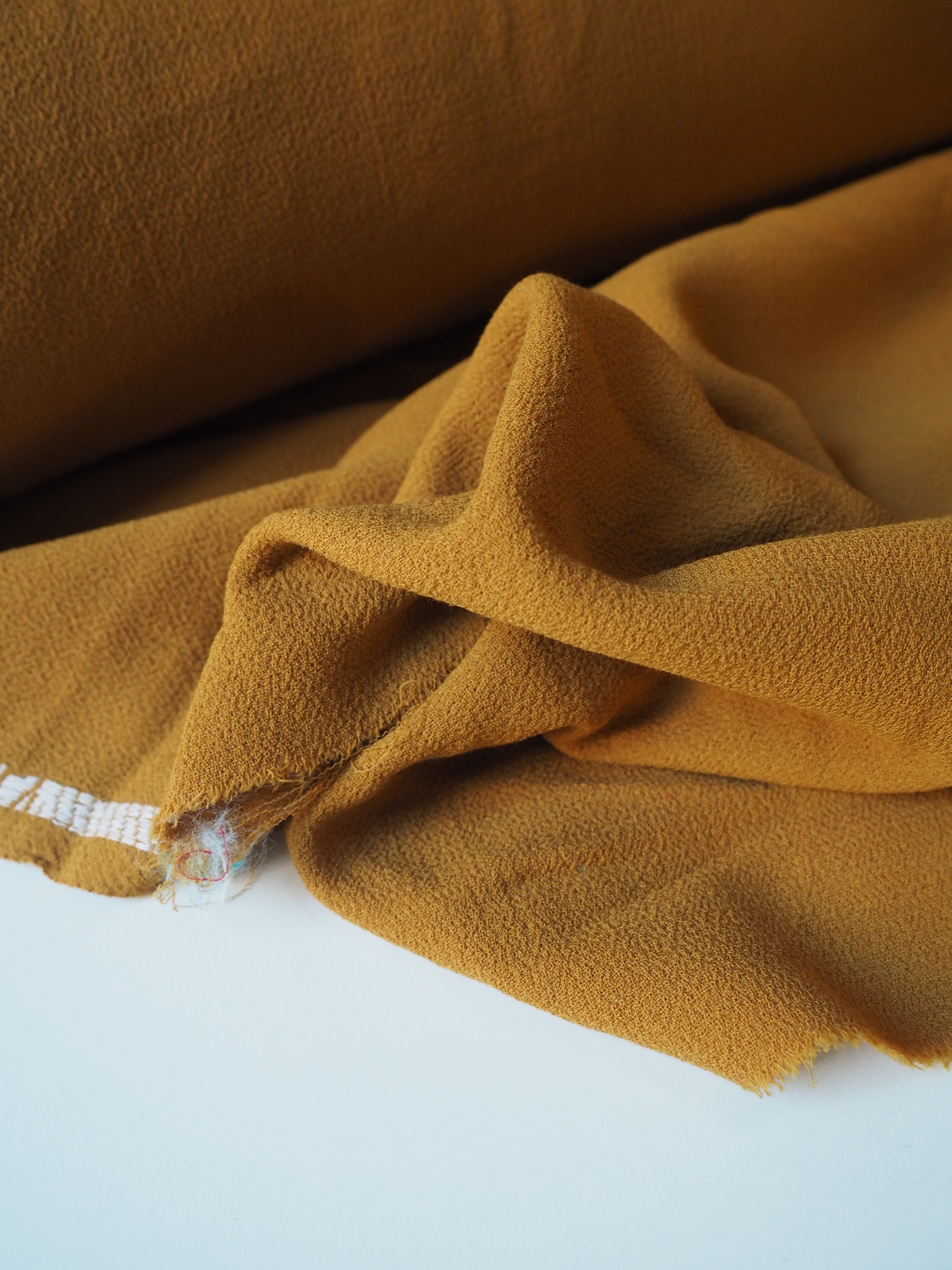 This ex-designer fabric is a wool crepe. It's a double-faced cloth with a sturdy but comfortable weave. It's made of pure wool and feels and looks so luxurious! It has a soft structure and really lovely soft, plush crepe handle. Medium weight, and perfect for tailoring projects. Flexible and has a wonderful drape that makes it so easy to work with! The perfect cloth for a lifetime blazer for all seasons, and wide leg trousers!