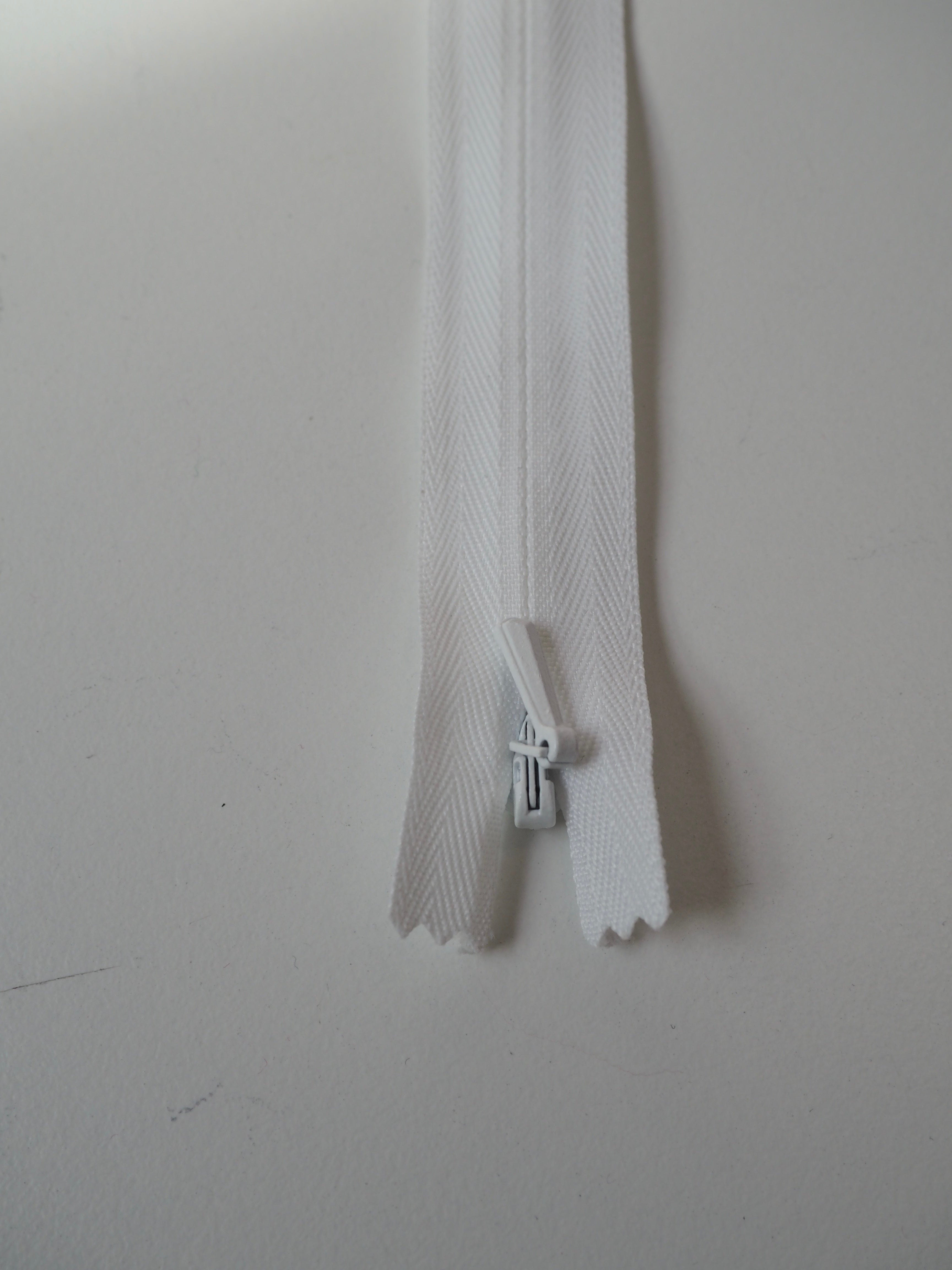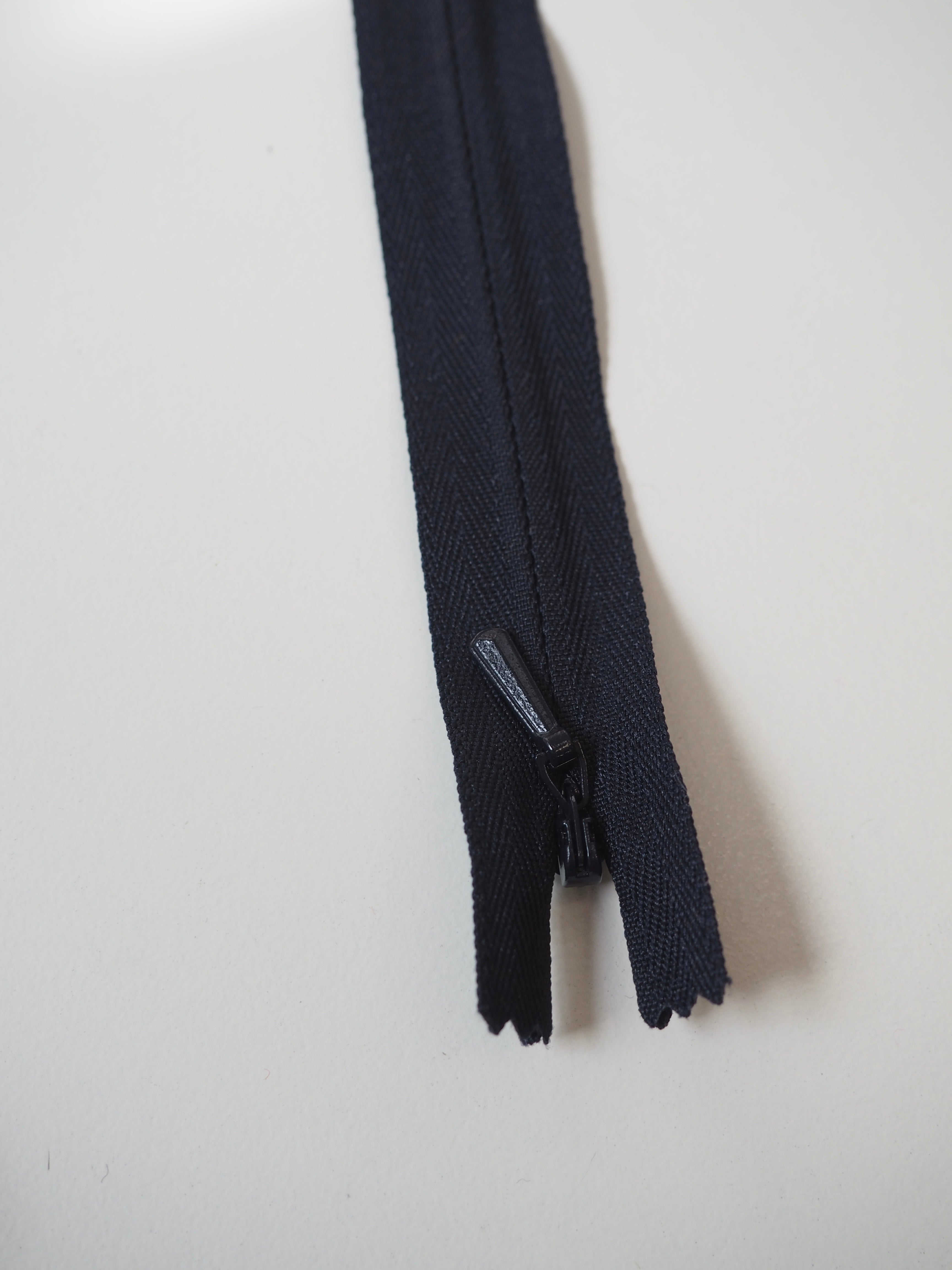 Closed end invisible zips. Plastic teeth and metal zipper pull. Perfect for using as a hidden closure.