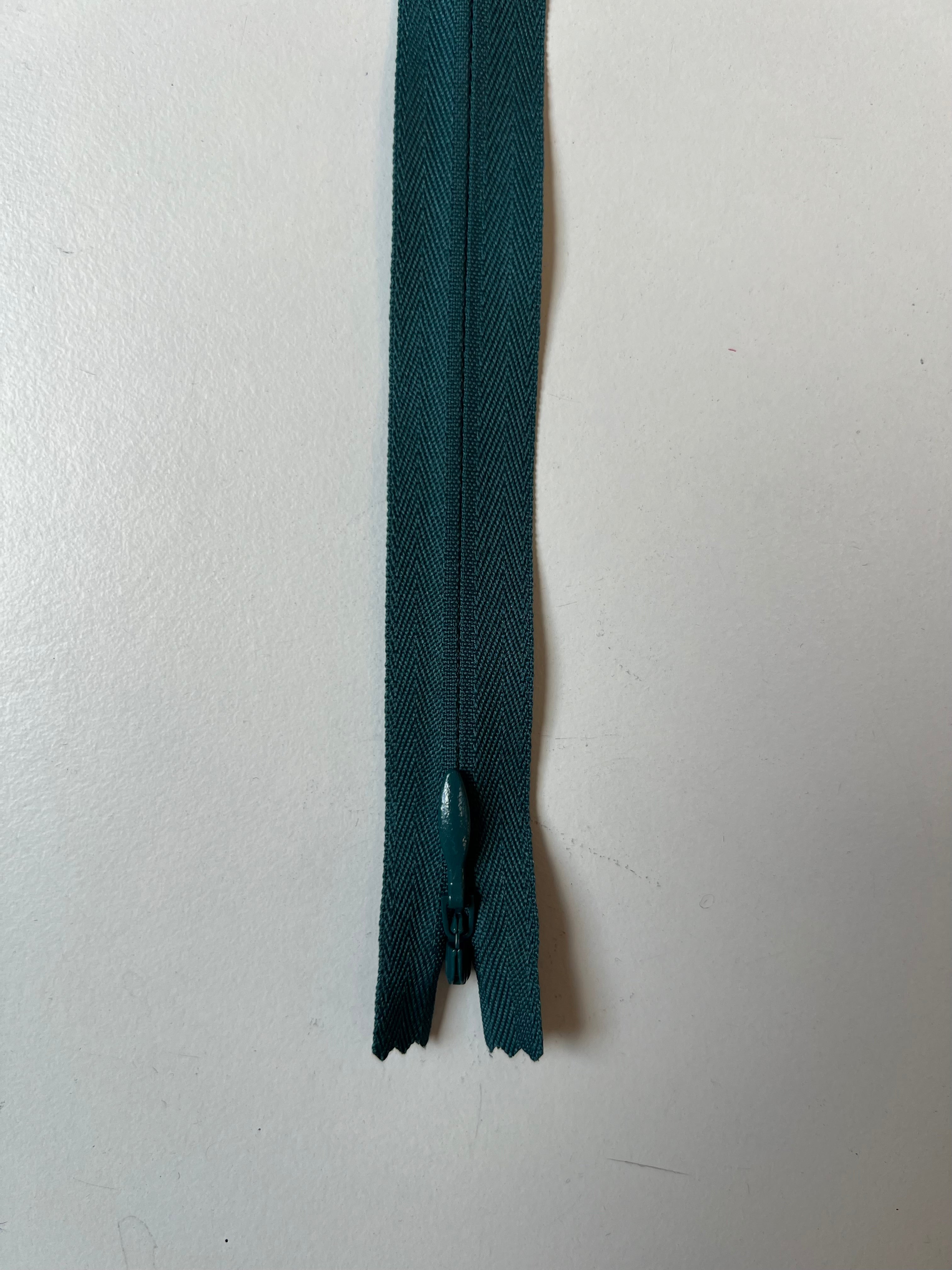 Closed end invisible zips. Available in various colours. Plastic teeth and metal zipper pull. Perfect for using as a hidden closure.