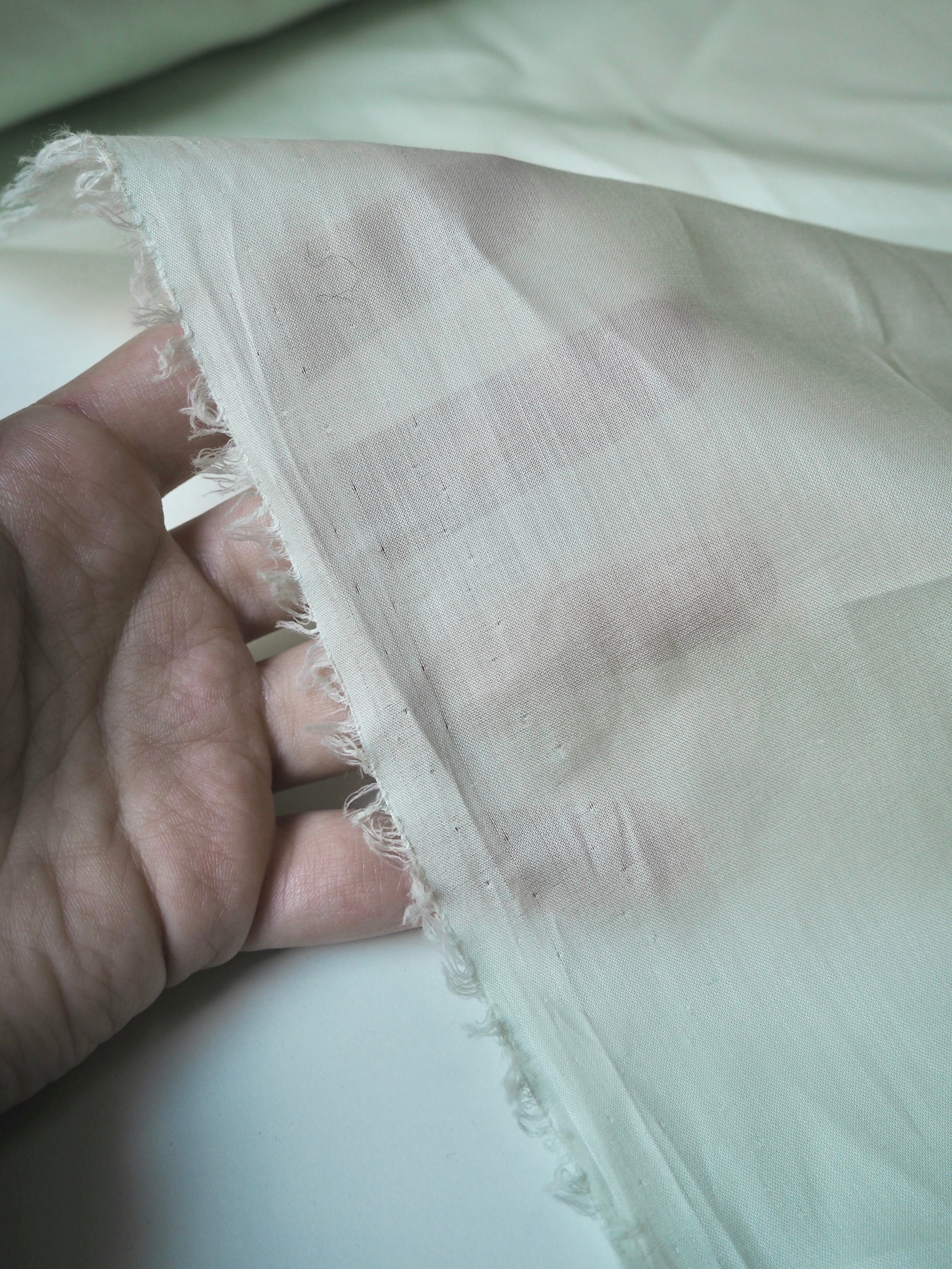 This ex-designer fabric is a voile. In a pastel matcha green colour. Has a super soft cotton handle, is semi-sheer, and drapes so beautifully. Very lightweight, with fantastic movement. Lovely in our Everyday Dress, as a lining, or for lingerie!